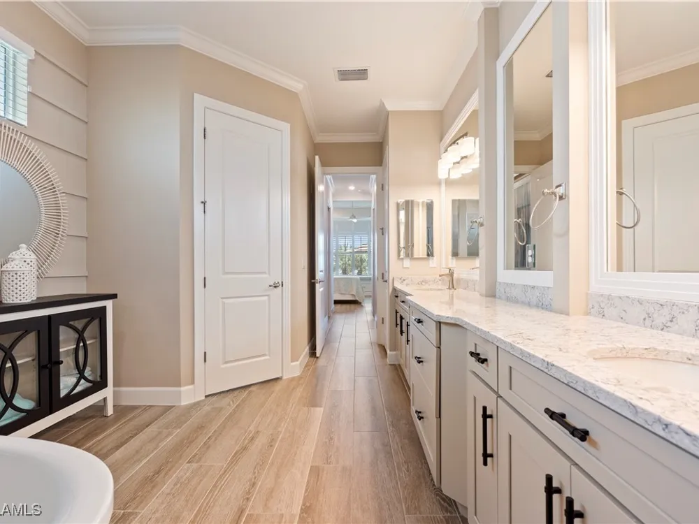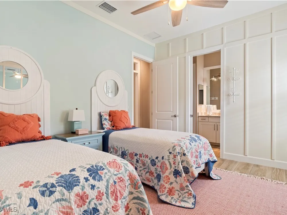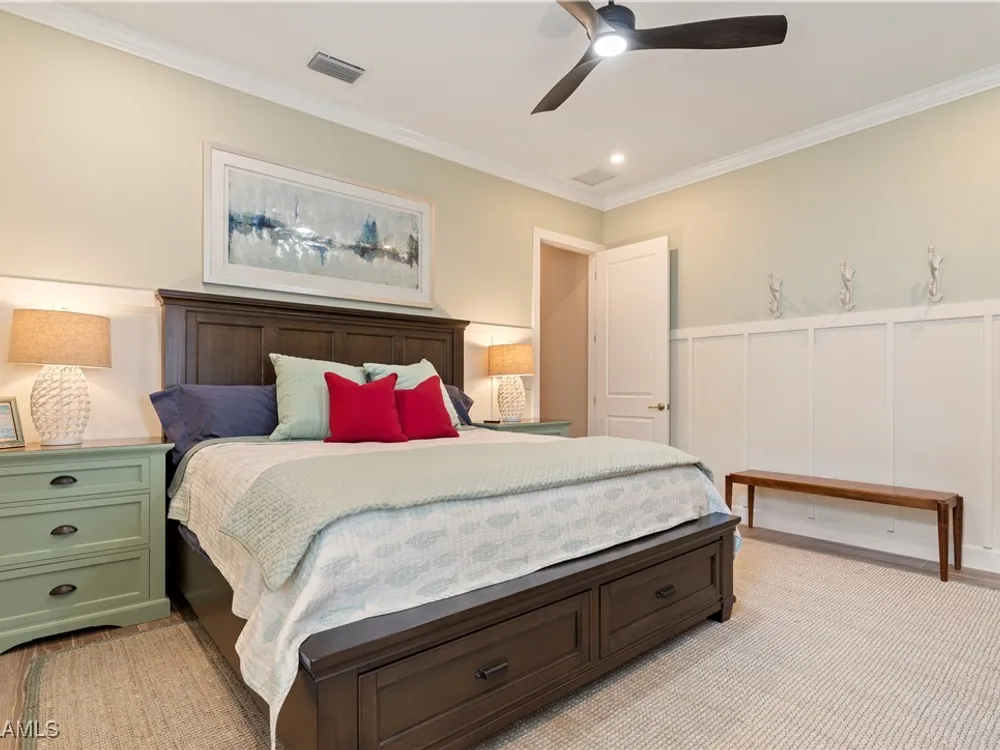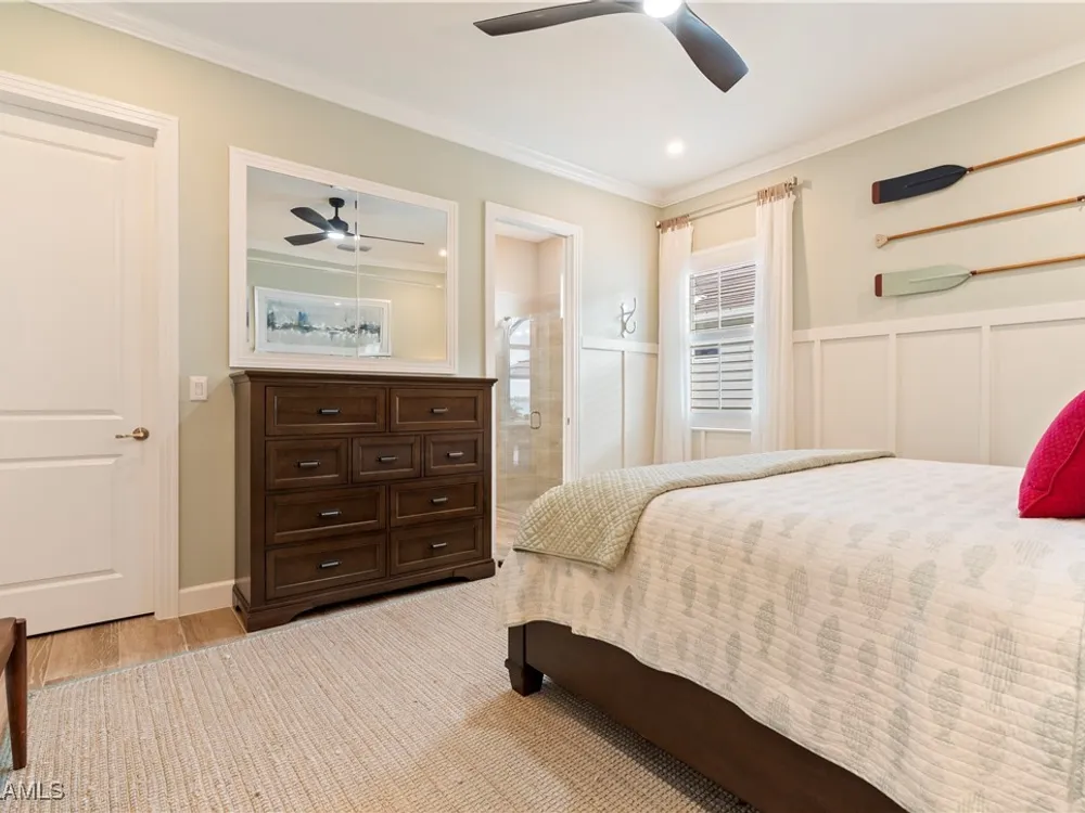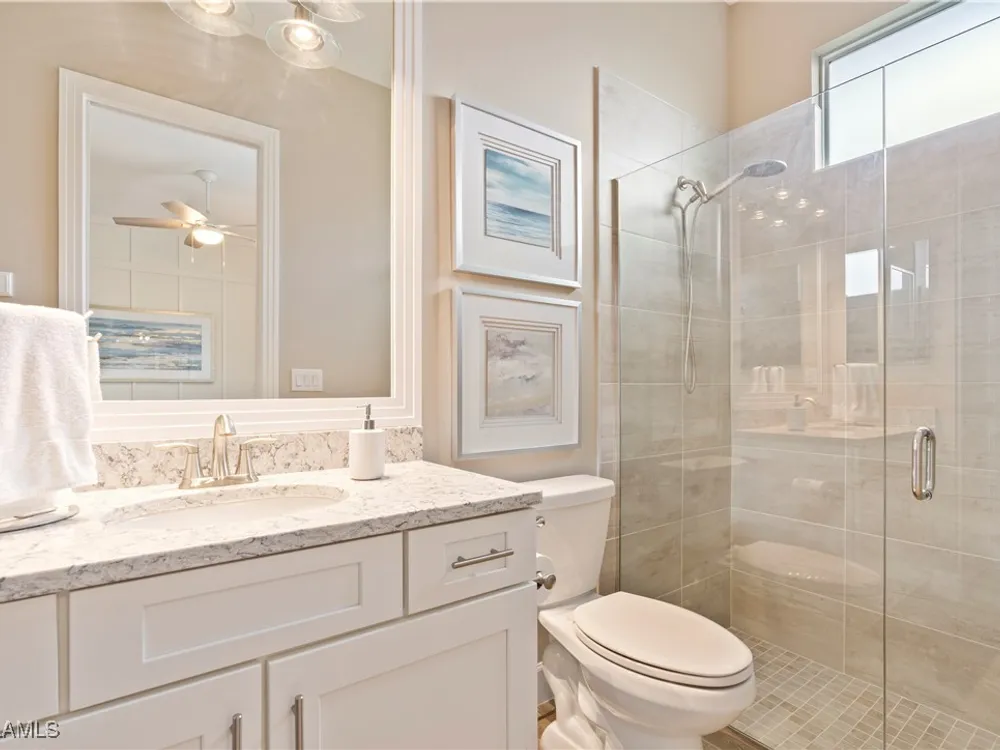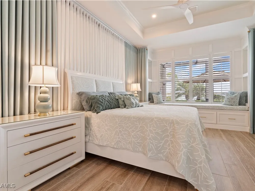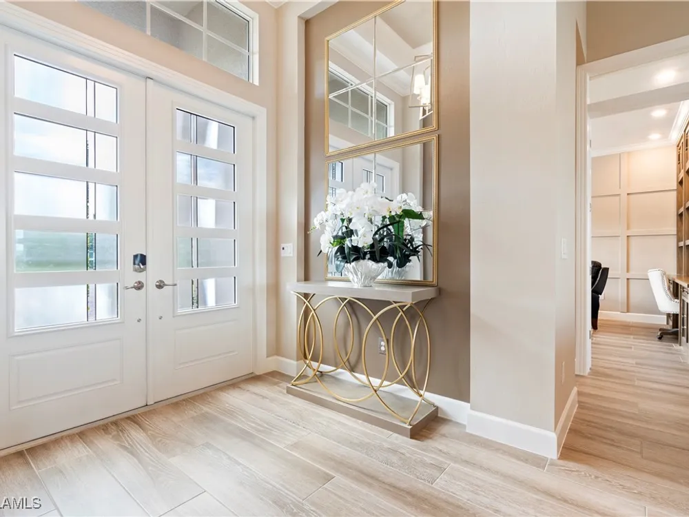 Welcome to this exceptional coveted Baneberry floor plan home, loaded with upgrades and located on the largest lake in the highly sought-after WildBlue community with a boat dock! Experience the ultimate Southwest Florida lifestyle with an expansive outdoor living space that offers the perfect setting for both relaxation and adventure. Enjoy multiple covered areas for dining, entertaining, and unwinding, including a full outdoor kitchen. Spend your days and nights soaking in the views, lounging on the sundeck, or taking a dip in the pool. For ultimate relaxation, unwind in the spa—all framed by breathtaking lake vistas through your picture-frame screen enclosure. Step outside to your private dock, where you can enjoy boating, waterskiing, or simply cruising on the lake just steps from your back door. This home offers nearly 3,200 square feet of beautifully appointed indoor living space with custom upgrades throughout. Upon entering, you are greeted by an elegant foyer, soaring ceilings, and the panoramic lake view that sets the tone for the entire home. The open-concept living, kitchen and dining areas create the perfect flow for entertaining family and friends. The gourmet kitchen is a chef's dream, featuring an oversized island, quartz countertops, built-in appliances, and beverage fridge. And yes, this is a natural gas community! The living area is designed for comfort and style, featuring a custom entertainment center, coffered ceilings, and an elegant fireplace. The thoughtfully designed split floor plan ensures privacy, with the primary suite offering dual walk-in closets, a custom reading nook, and a spa-like ensuite bathroom with a large walk-in shower, dual shower heads, a separate soaking tub, and dual vanities. Each guest bedroom is beautifully detailed with custom millwork and furniture, walk-in closets, and ensuite bathrooms. The fourth bedroom can also serve as a den or office, with a built-in desk, shelves, and closet. The oversized three-car garage provides ample space for vehicles, golf carts, toys, and more, including a dedicated Cadillac electric car charger. This home also offers impact windows and sliders, along with additional Storm Smart shutters on the lanai for peace of mind. WildBlue’s resort-style amenities await, just a short boat or bike ride away. The clubhouse features a lakeside beach, spa, a state-of-the-art fitness center with classes, indoor and outdoor dining options, a resort-style pool, a lap pool, and a racquets center with six Har-Tru tennis courts and eight pickleball courts with leagues and clinics. Other amenities include a basketball court, playground, bocce courts, and more. Conveniently located just minutes from premier shopping and dining destinations like Coconut Point, Gulf Coast Town Center, and Miromar Outlets, and with easy access to RSW airport, this home offers unparalleled convenience and lifestyle. Make this incredible home and lifestyle yours today!