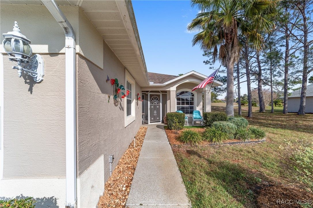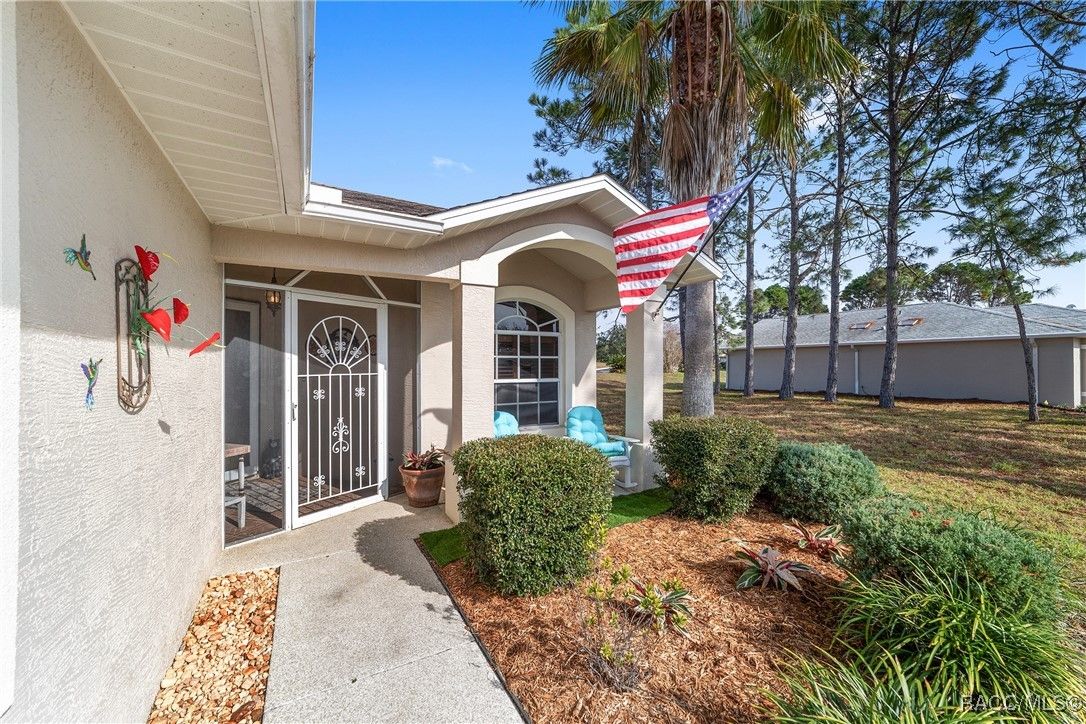 Welcome to this beautifully, updated, partially furnished, renovated 3 bedroom, 2 bath, 2 car garage home that features its own personal backyard pool and patio. Walk up to the well sculptured walkway that leads to a porch where you may enjoy your morning coffee. The screened foyer with an inner glass door together with the kitchen bay windows flood the main expansive living area with natural light. Plantation shutters offer beauty and privacy. Many upgrades have recently been incorporated, such as LVP flooring throughout, a wine cooler, surround sound speakers in the ceiling, new quartz countertops in the kitchen and bathrooms, a new granite kitchen sink with a commercial style stainless steel faucet, a new gas stove, a new dishwasher, and new bathroom vanities. There is a forced air, gas fireplace in the living room to warm the chilly winter nights and provide a comfortable atmosphere. The main living area has sliding glass doors that totally open up to the lanai, which also has the same style sliding doors allowing total access from the living area to the enclosed pool area, great for entertaining. The cement garage floor has been enhanced with durable copolymer, interlocking flooring tile, keeping the floor cooler and clean. With a greenway behind the pool area and another on one side, your pool is a quiet, relaxing area. The pool side is covered with teak tiles that are cool even during the hot Florida days. There is a small bridge across the pool that is not just decorative but functional. It can easily be removed if not desired. At night, the exterior lights make for a very comfortable setting for relaxing or entertaining. The pool area connects to an outdoor patio kitchen where you can BBQ while your guests relax on the patio rattan chairs. The large primary bedroom comes with a walk in closet and leads to the ensuite bath with a large shower and dual sinks. Your guests will be very comfortable in the second bedroom, and the third BR makes a great office space. There is a 2nd full bath between the 2nd and 3rd bedrooms, making it very nice for guests. Situated in the GATED Brentwood development, this home is just a short walk to the Brentwood pool, hot tub, fitness center, meeting room, dog park, and golf course. You will also have access to the new clubhouse, outdoor pool, pickle ball courts, and restaurant that is being constructed within walking distance. The HOA dues provide maintenance free living and includes fiber optic cable and internet with many free streaming channels. Also landscaping maintenance, irrigation, and exterior building maintenance. Roof was replaced in 2017, and you can select the exterior painting color as it is scheduled this year. Your social membership in Villages at Citrus Hills also includes several pools, the pool room, large fitness center, Tiki Bar, 4 golf courses, a spa, hot tubs, and a large assortment of activities weekly. CALL TODAY FOR MORE INFORMATION OR A SHOWING.