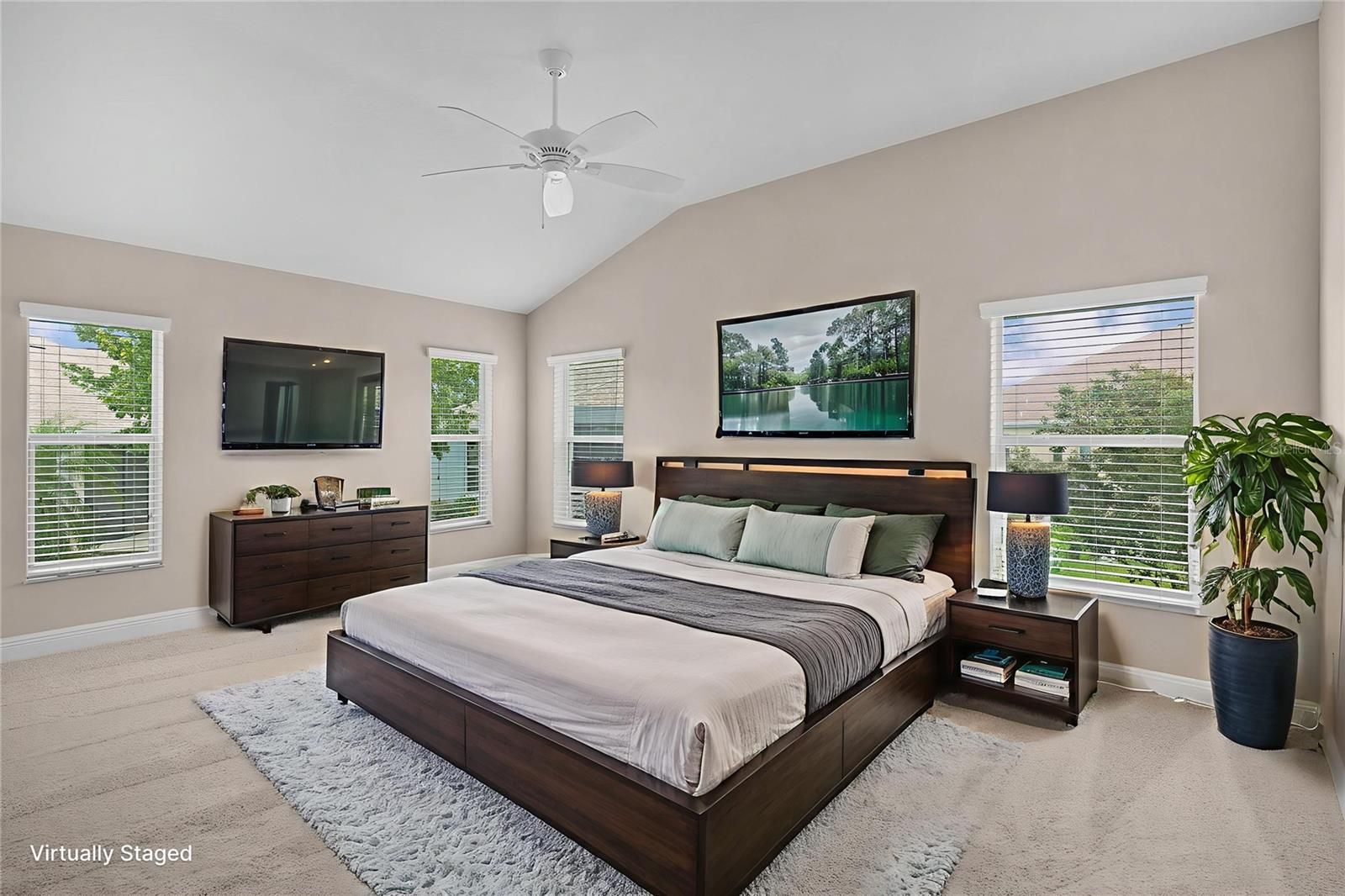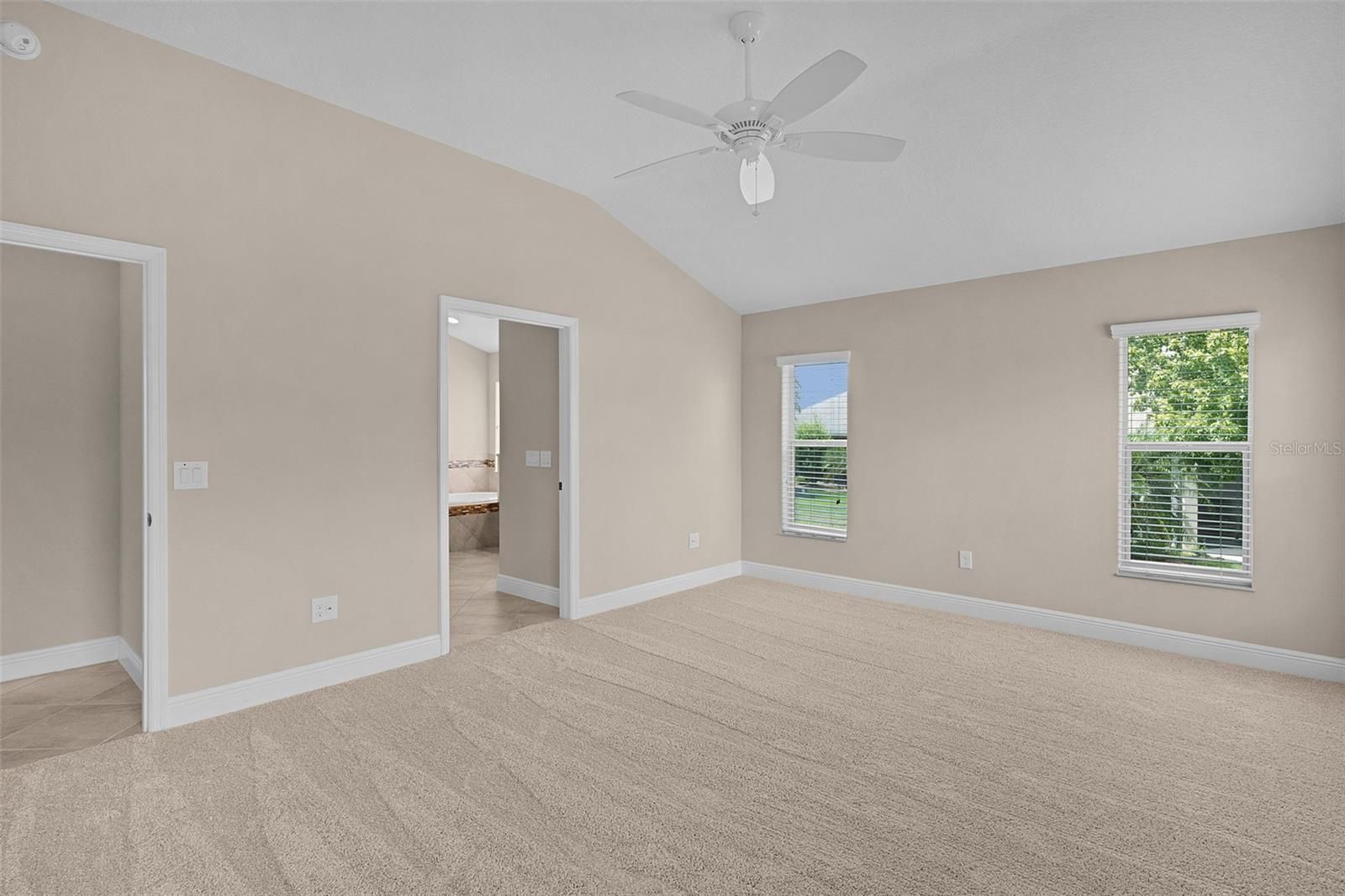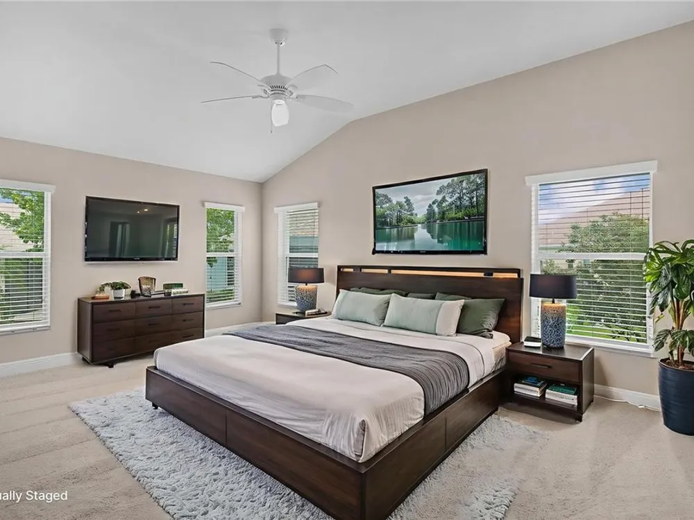 - Ceiling Fan(s), High Ceilings, Living/Dining Room, Open Floorplan, Solid Surface Counters, Solid-Wood Cabinets, Tray Ceiling(s), Vaulted Ceiling(s), Walk-In Closet(s)