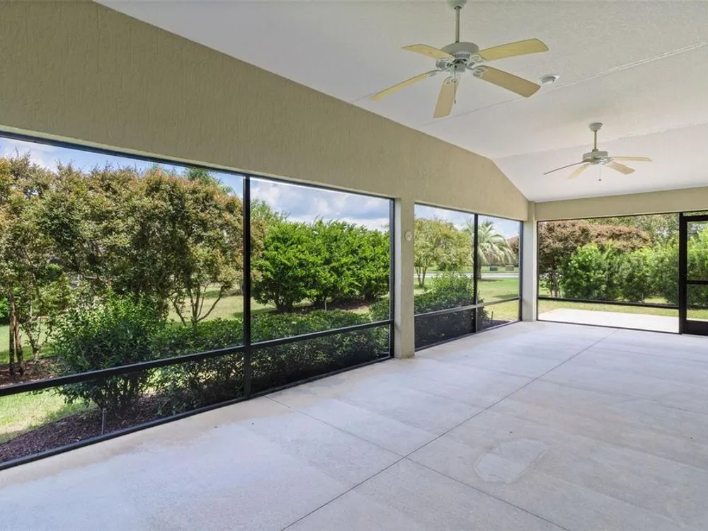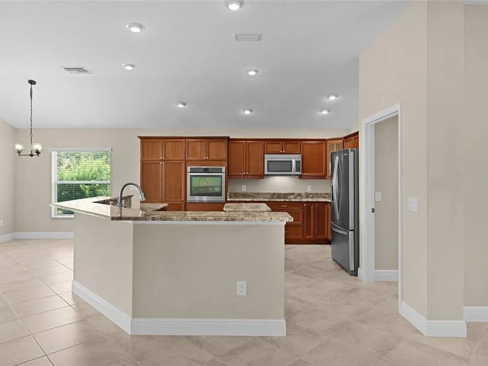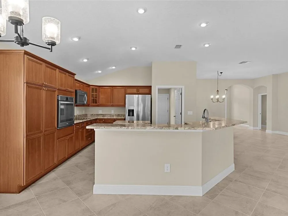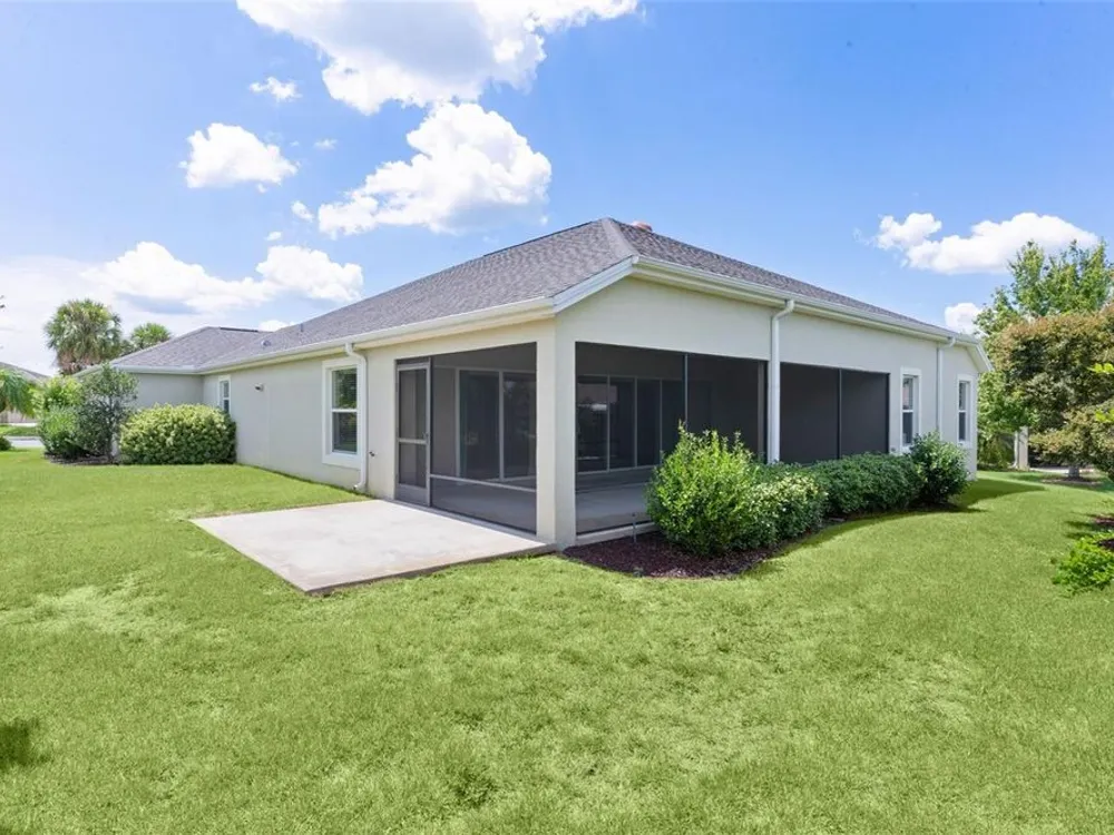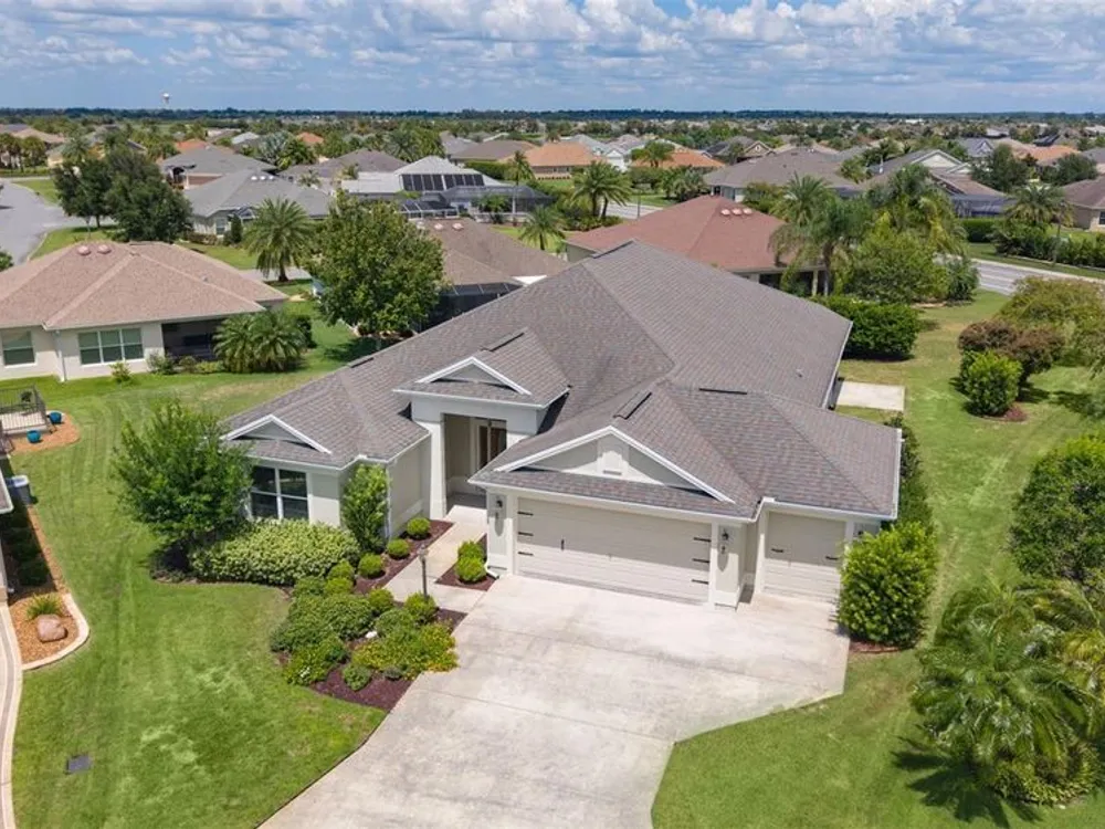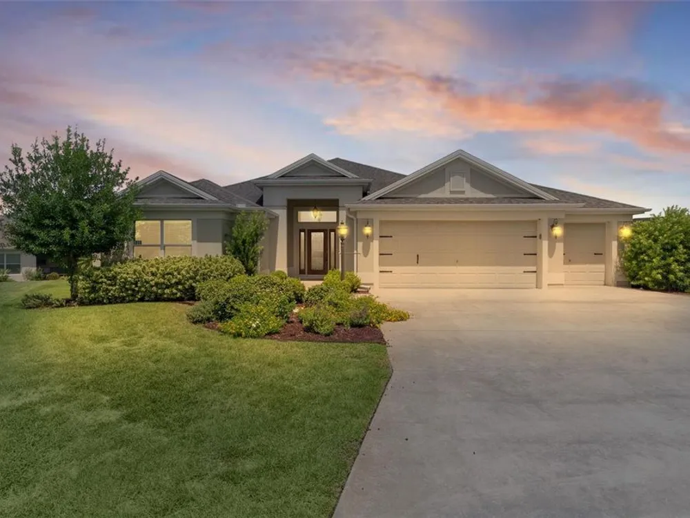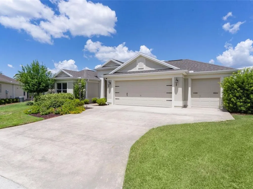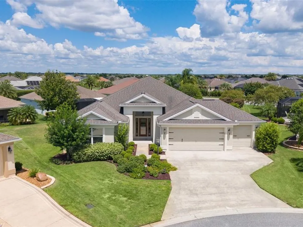 One or more photo(s) has been virtually staged. Welcome to this stunning Ivy model located in the desirable Village of Lake Deaton, nestled on a quiet cul-de-sac. From the moment you arrive, the home impresses with its inviting entryway and elegant leaded glass front door. Step inside to discover a spacious layout featuring 4 bedrooms and 2 bathrooms, designed for both comfort and style. Notice the rounded corners throughout the home; a lovely high-end feature sure to impress. The heart of the home is the kitchen, showcasing granite countertops, stainless steel appliances, a separate island, built-in oven, and electric stove—a perfect setup for any home chef. A large breakfast nook and formal dining room provide plenty of space for casual meals or entertaining guests. Throughout the living areas, you’ll find ceramic tile flooring, while the bedrooms feature fresh, new carpet for added warmth and comfort. The master suite is a true retreat, highlighted by a rare garden tub, granite dual vanities, and a thoughtfully designed bath area—an uncommon luxury in The Villages. Relax and unwind in the expansive screened-in lanai, with ample room to add a pool if desired. Additional features include an extended 2-car garage PLUS a golf cart garage, offering plenty of storage and convenience. Lake Deaton is one of The Villages’ most sought-after locations, situated just north of Highway 44 and close to Brownwood Paddock Square, where you’ll enjoy shopping, dining, and nightly entertainment. This home combines elegance, space, and location—an exceptional opportunity to enjoy The Villages lifestyle to the fullest.