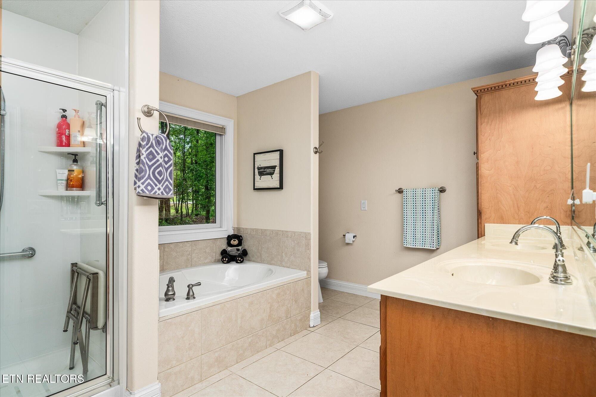 Perfectly situated in the desirable Fairfield Glade retirement community, this spacious home offers a blend of comfort, style, and functionality, all nestled on two generous lots totaling approximately 0.57 acres and 1 HOA fee. This property welcomes the much-awaited Spring season! Property Highlights: **Spacious & Elegant Interior** The open floor plan features a harmonious combination of hardwood, carpet, and tile flooring. The main living area is distinguished by a soaring 12.5-foot cathedral ceiling and a cozy natural gas fireplace, creating a warm and inviting atmosphere. Throughout the tile flooring, air vents are strategically aimed at the floor, providing efficient warmth on cooler days. -Gourmet Kitchen & Living Space The large, open-concept kitchen boasts stainless steel appliances, ample counter space, and cabinetry, seamlessly flowing into the adjoining dining and living areas. Ideal for entertaining guests or enjoying family gatherings. -Luxurious Master Suite The spacious master bedroom features a tray ceiling and a large walk-in closet. Sliding glass doors lead to one of the two upper decks (12x24), perfect for morning coffee or evening relaxation. The master bath has been recently updated with a new walk-in shower, also featuring double vanity, and a jetted tub for added comfort. - Additional Bedrooms & Bathrooms The main level includes two guest bedrooms—one with direct access to a 12x24 private deck. A full bathroom for guest convenience. The split bedroom layout ensures privacy and comfort for family and visitors. **Outdoor Living & Landscaping** A welcoming front covered porch provides a charming entrance while you sit viewing your many perennial flowers and trees with a beautifully landscaped yard. Just some of the many plants and trees are: Dogwood, Maple, Rose Sharon, Magnolia and a beautiful snowball tree accented with azaleas and hydrangea bushes.