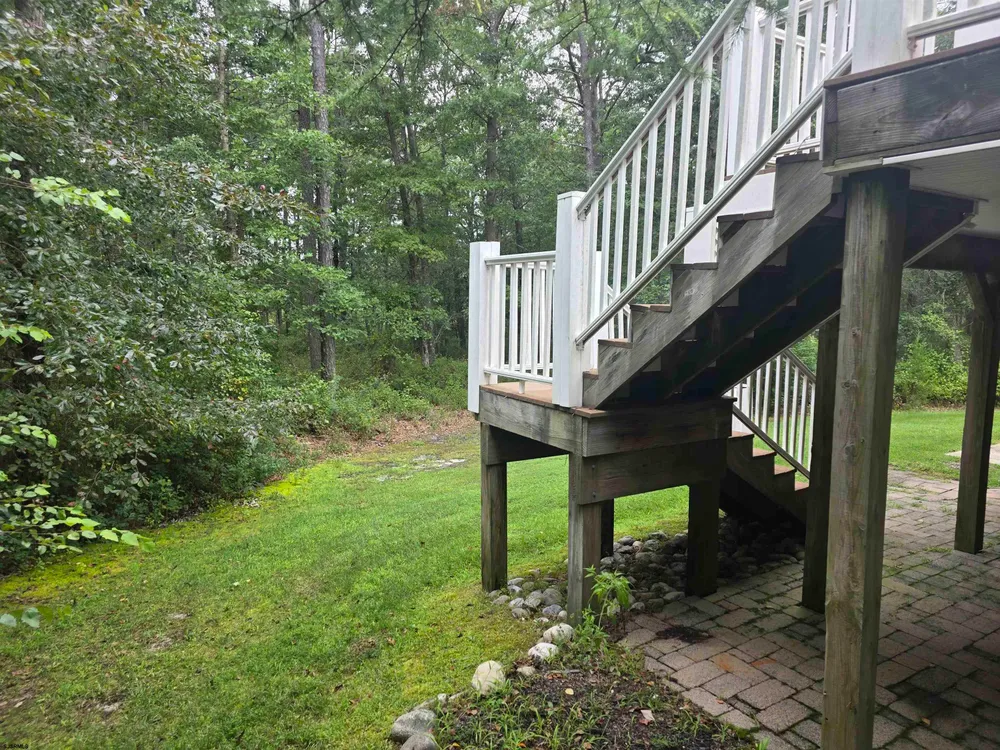 Welcome to 182 Giordano Mews in the desirable 55+ Tavistock Community of Mays Landing! This spacious 3-bedroom, 3-bath home is tucked away at the end of a private cul-de-sac, backing up to woods for peace and privacy. The main level features 2 bedrooms, including one with an en suite, plus a bonus room off the kitchen, and access to the deck, patio, and porch — perfect for indoor-outdoor living. Upstairs offers an additional private bedroom with en suite. Enjoy central air with multi-zone control, a garage, and a full unfinished basement with natural egress to the patio. Being sold as-is. Buyer responsible for CO. Don’t miss this wonderful opportunity in Tavistock!