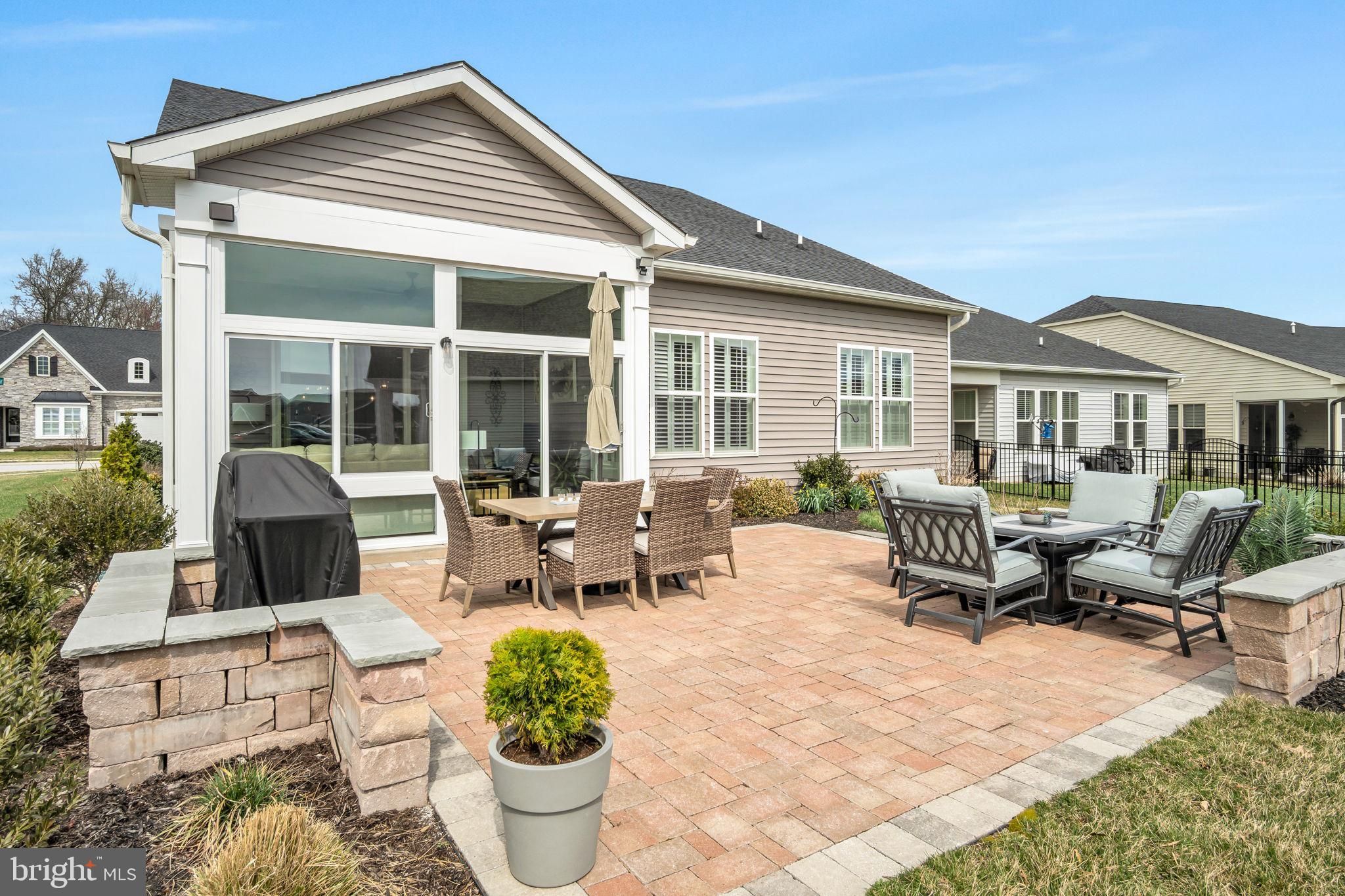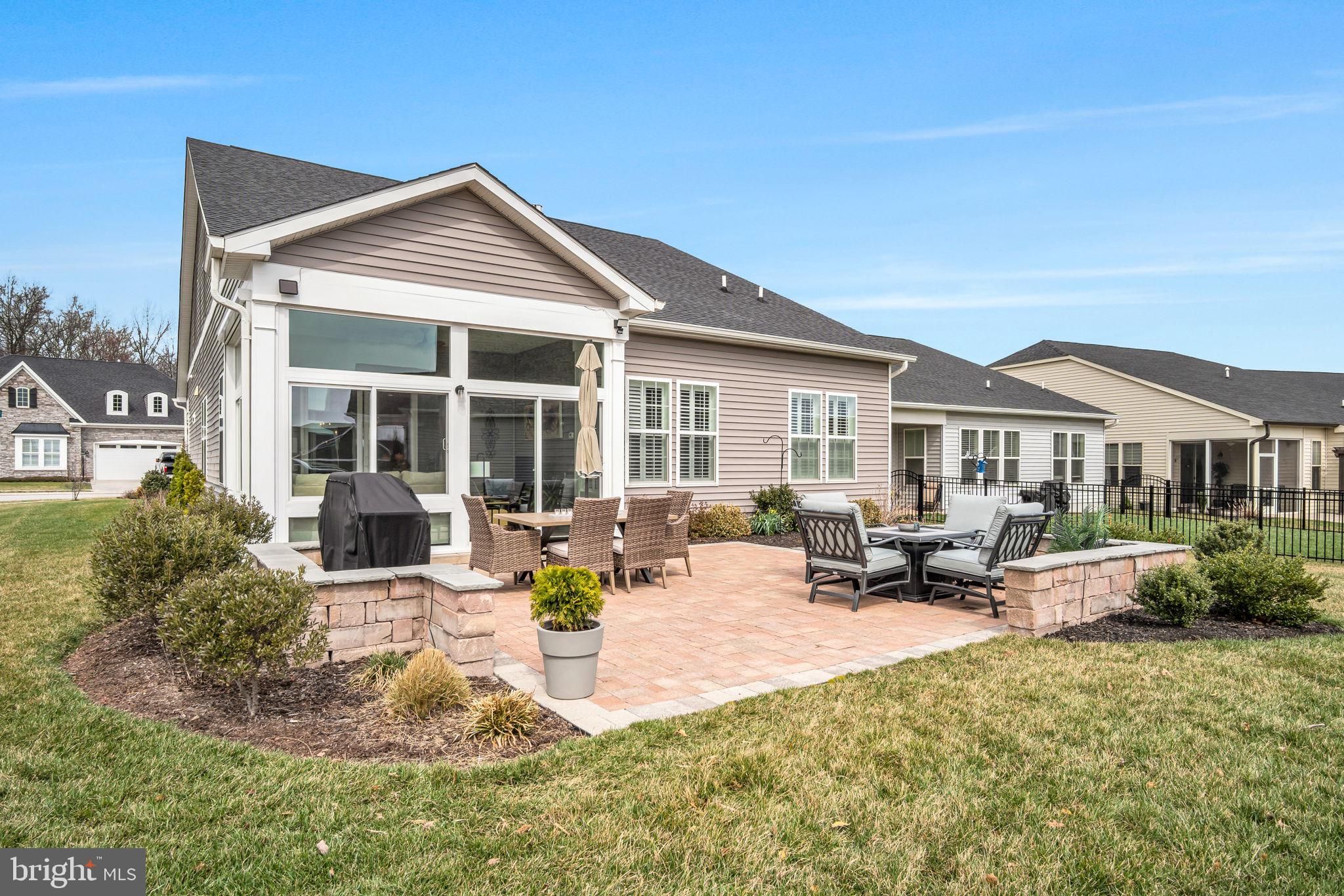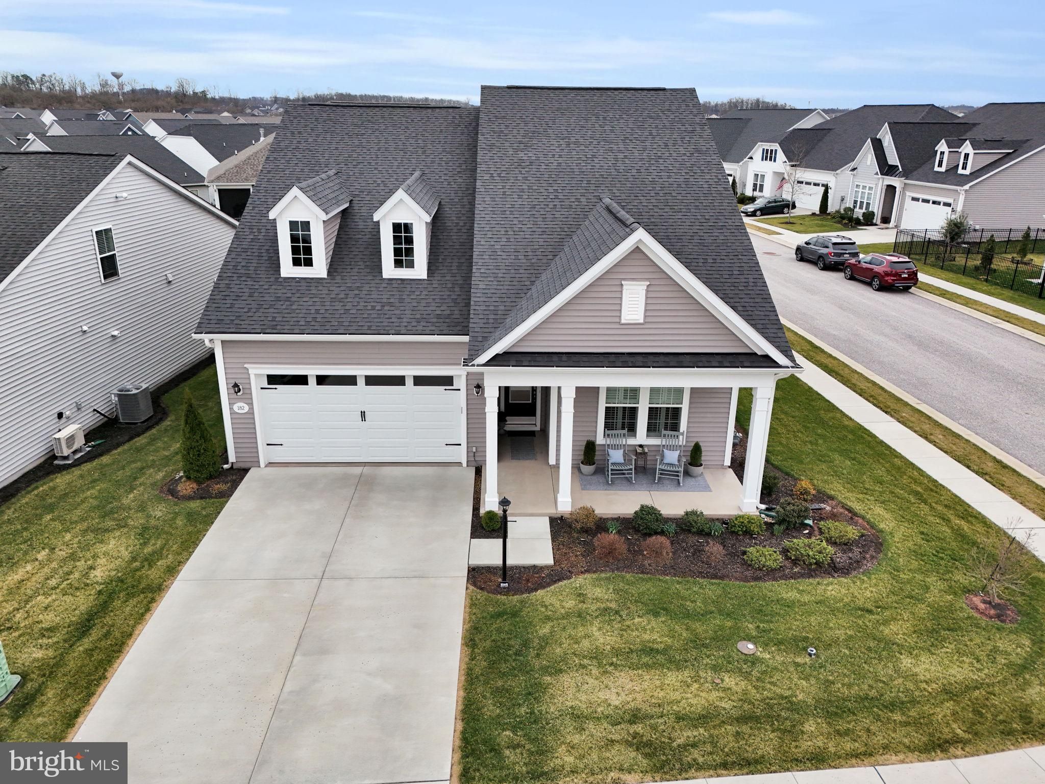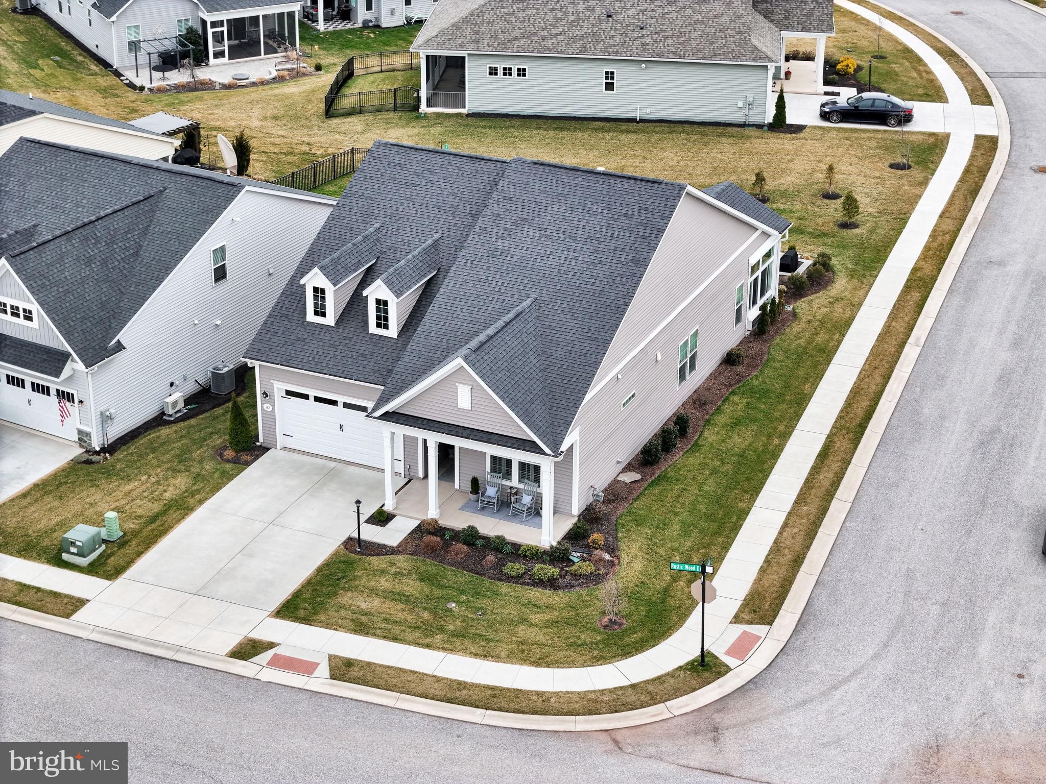 Welcome to 182 Rustic Wood Drive in the Amblebrook community in Gettysburg! Perfectly positioned on a premium corner lot in Amblebrook Gettysburg, this beautifully upgraded and meticulously maintained home offers luxury finishes, thoughtful enhancements, and exceptional indoor-outdoor living. Step inside to discover a beautiful interior featuring soaring 10-foot ceilings, a premium trim package with elegant crown molding, upgraded tile, and a stunning gourmet kitchen with upgraded cabinetry, quartz island countertop, composite quartz sink, under-cabinet lighting, and high-end appliances including a new Bosch refrigerator and cooktop. The kitchen flows seamlessly into the living space highlighted by a cozy gas fireplace and stylish dimmable lighting fixtures. A versatile flex room with elegant French doors provides additional living space and could easily serve as a home office, den, or potential third bedroom, offering flexibility to suit a variety of needs. Enjoy year-round relaxation in the four-season sunroom with its own PTAC unit and retractable solar shade, or step outside to the paver patio with built-in lighting and electric outlets, perfect for entertaining. The home also features an extended porch and extended garage, a tankless water heater, irrigation system, and soft-closing cabinetry throughout. Additional upgrades and after-market improvements include plantation shutters, motorized blinds for the patio door, organized master closet, four ceiling fans, fresh interior paint, additional landscaping, updated bathroom fixtures, quartz guest bath countertops, modern tile in the master shower, and pre-treated glass shower doors. The attic is easily accessible with the added convenience of a garage-to-attic lift system, making it simple to move storage items without carrying them up the stairs. Efficiency and comfort were also enhanced with additional attic insulation and an upgraded HVAC filtration system designed for cleaner air and minimal maintenance. The heated garage and mudroom built-in storage add even more convenience and functionality to this thoughtfully designed home. Living in Amblebrook Gettysburg means access to incredible resort-style amenities including a beautiful clubhouse, indoor and outdoor pools, fitness center, walking and biking trails, sports courts, community events, and countless clubs and activities, all designed to create a vibrant and active lifestyle. This meticulously cared-for home with extensive upgrades offers the perfect combination of luxury, comfort, and community living.