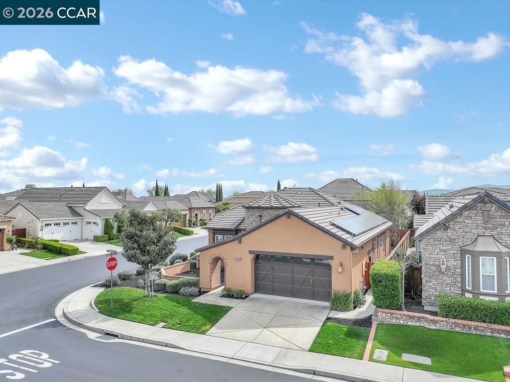 Welcome to Trilogy at the Vineyards, the East Bay's premier gated 55+ resort community. This pristine Ravello model in Bordeaux Village sits on a corner homesite and features a rare builder option: soaring ceilings with clerestory windows that flood the great room with natural light — an elevation discontinued early in the village's build-out and seldom found on resale. The open great room flows to a chef's kitchen with granite counters, stainless appliances, double oven, gas cooktop, and large island. The primary suite offers French doors to the patio, dual vanities, stall shower, and walk-in closet. Flexible den, spacious guest bed and bath. The backyard is a true retreat: expansive pergola-covered paver patio with lush landscaping. Pre-paid 20-yr solar lease, tankless water heater, water softener, 2-car garage. Club Los Meganos amenities include pools, spa, pickleball, tennis, fitness, restaurant, wine events, and more. Resort living at its finest.