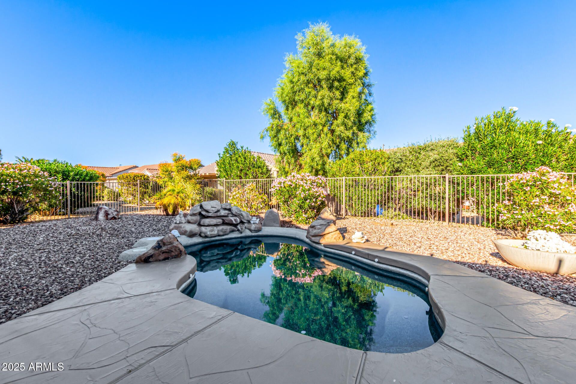 Beautiful Madera Model in highly sought-after The Grand*Corner lot with North/south exposure* lovely Curb appeal abounds with easy-care front yard and backyard featuring a relaxing spool (small pool) , perfect for cooling off or enjoying a soak. 2-car garage , Washer , dryer, Refrigerator, Stove, Dishwasher, reverse osmosis*Peninsula in kitchen with eating bar*Bay window in Master Bedroom*Carpet in Bedrooms & den*All Furniture stays* Active Adult Community has 5 swimming pools, premier golf courses, fitness center, tennis and pickleball courts, walking indoor track, an abundance of clubs*Talk about the perfect retirement home!