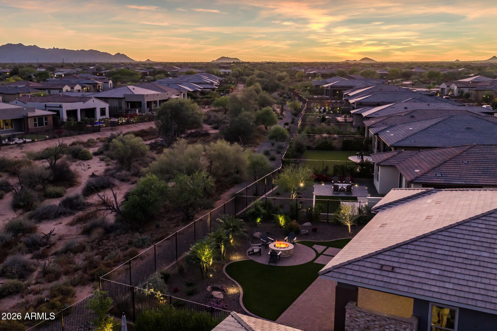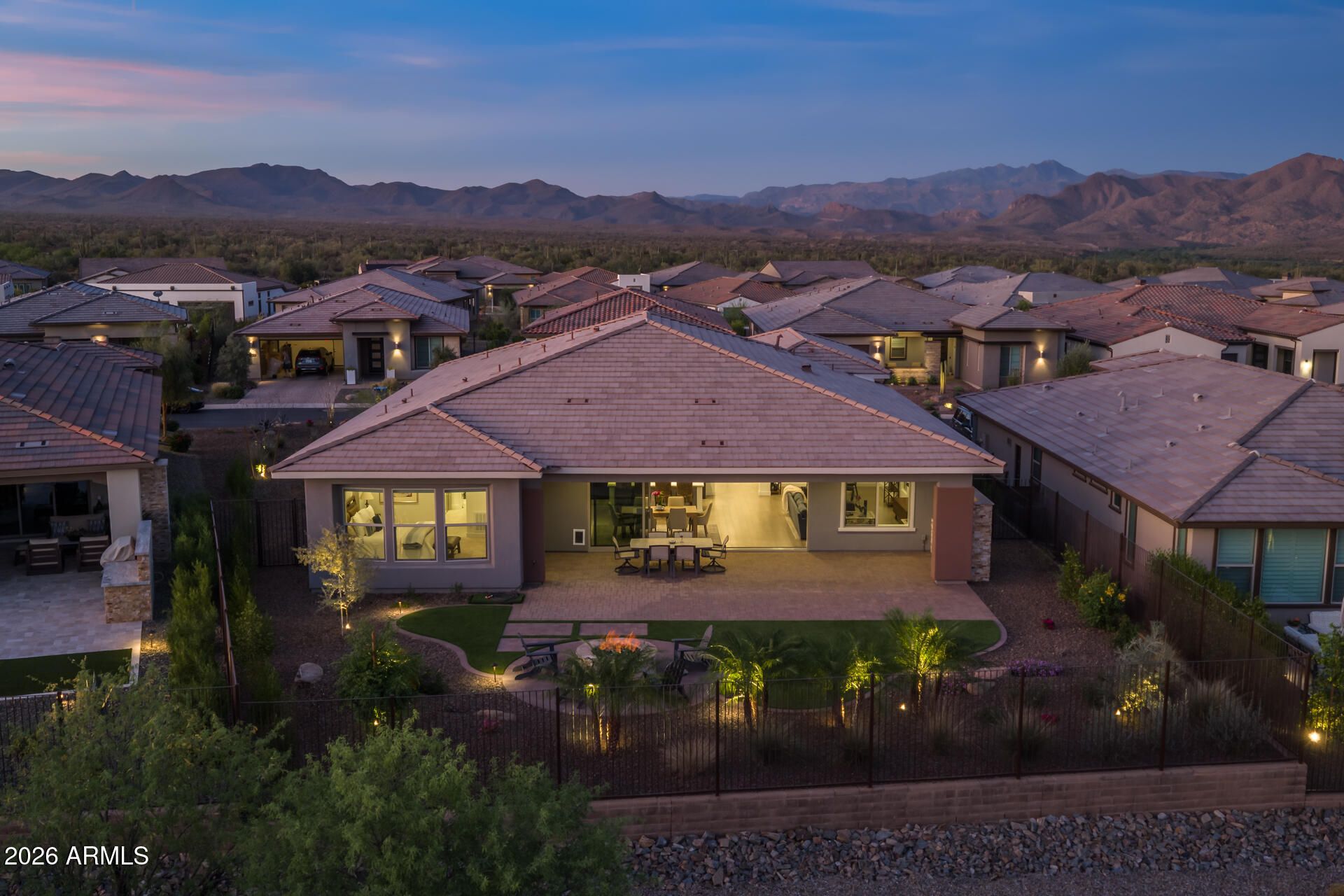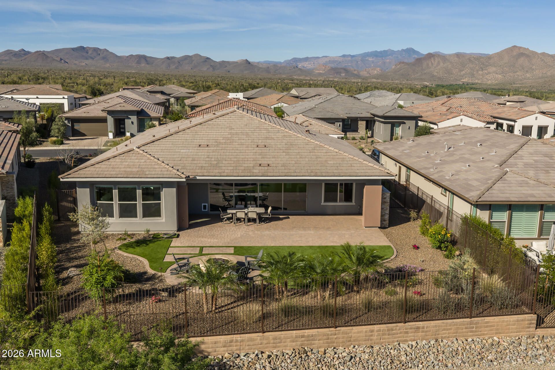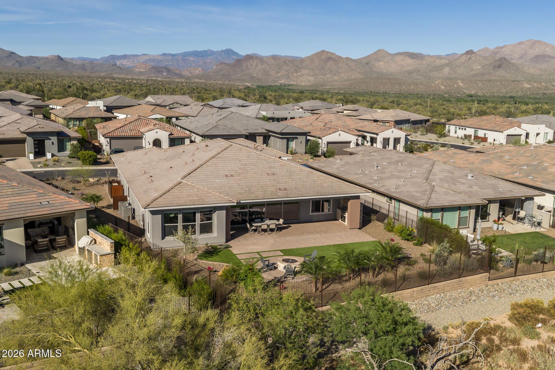 Discover easy desert living in this Cordoba layout in Trilogy at Verde River. Set on an oversized lot with incredible views of Four Peaks, this 2,881 sq ft, 3-bedroom, 3-bath home also features a den and a private casita. The gourmet kitchen is beautiful with built-in stainless steel appliances, opening to a bright great room with a multi-panel slider leading to a large covered patio. Whether you're hosting or relaxing, you'll enjoy the built-in bar with beverage fridges and wine storage, plus an upgraded AV sound system throughout. The primary suite offers a peaceful escape with a soaking tub, dual sinks, and a beautifully tiled shower. A 4-foot extended garage adds extra flexibility and storage. Step outside to enjoy the extended patio, stacked stone built-in BBQ, and a thoughtfully designed backyard featuring Sonoran desert landscaping, artificial grass, ambient lighting, and a fire pit. This home truly has it all. The amenities at Verde River are World Class with Tom Lehman inspired eighteen-hole Golf course, tennis courts, pickleball courts, and bocce ball, heated lap pool and Resort style swimming pool, hot tub, Afterburn fitness center, Helen's demonstration Kitchen for cooking classes and a 7.5 acre dog park. The community center has casual poolside dining at Eddy's Diner and gourmet dining at award-winning Needle Rock Kitchen and Tap, Alvea Spa with full-service Salon and Spa amenities, Art Loft and events center. Trilogy at Verde River is adjacent to the Tonto National Forest and is situated in the middle of miles and miles of hiking and biking trails.