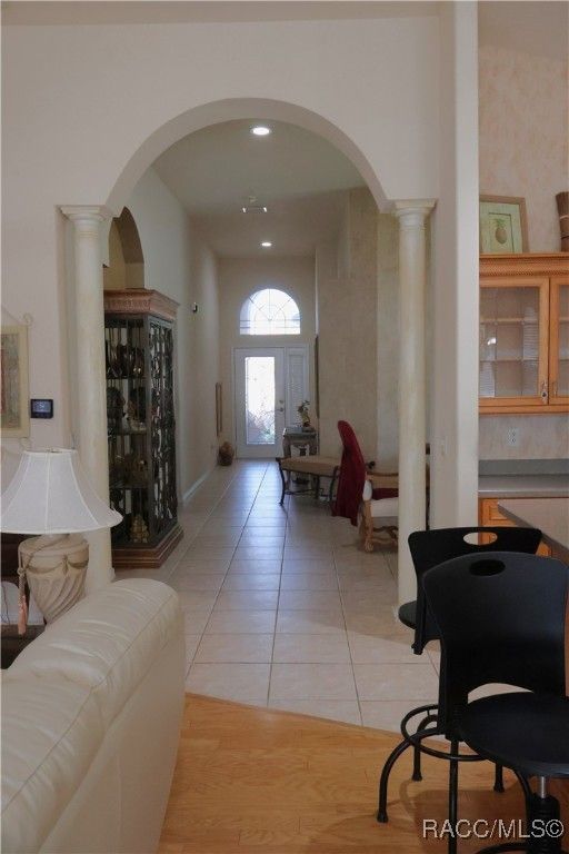 This Elegant, Spacious Home Awaits You! Discover refined living in this beautifully designed home featuring an open, airy floor plan, perfect for both family gatherings and entertaining guests. Step through the impressive foyer, adorned with elegant archways and pillars, into a bright and welcoming space showcasing high ceilings and abundant natural light. The spacious living room offers comfort and luxury, with hardwood floors and tasteful built-ins for your entertainment needs. The adjacent kitchen is every chef’s delight, featuring ample wood cabinetry, a convenient island with breakfast bar seating, modern appliances, and plenty of countertop space to unleash your culinary creativity. Enjoy memorable meals in the sophisticated formal dining room, accented with beautiful lighting and large windows that fill the space with warmth. This home features a luxurious primary suite, complete with two large closets for ample storage. The en-suite bath is designed as a personal sanctuary and spa, offering a relaxing garden tub, a spacious walk-in shower, and a private water closet. Two additional comfortable guest rooms provide versatility and comfort, and an office/den with elegant built-in shelving. Step outside into your own private oasis with a stunning screened-in pool and enclosed patio area, perfect for relaxing afternoons and weekend entertaining. The patio provides ample space for outdoor dining and lounging, overlooking beautifully landscaped gardens, loaded with fruit trees and beautiful foliage that adds a peaceful backdrop to your relaxation. Electric run for outdoor kitchen. An expansive two-car garage provides ample space for vehicles and additional storage needs, ready to suit your lifestyle. This gorgeous property is thoughtfully designed, blending comfort and elegance in every detail. Don’t miss the opportunity to make this exceptional house your home. Schedule a viewing today! ,