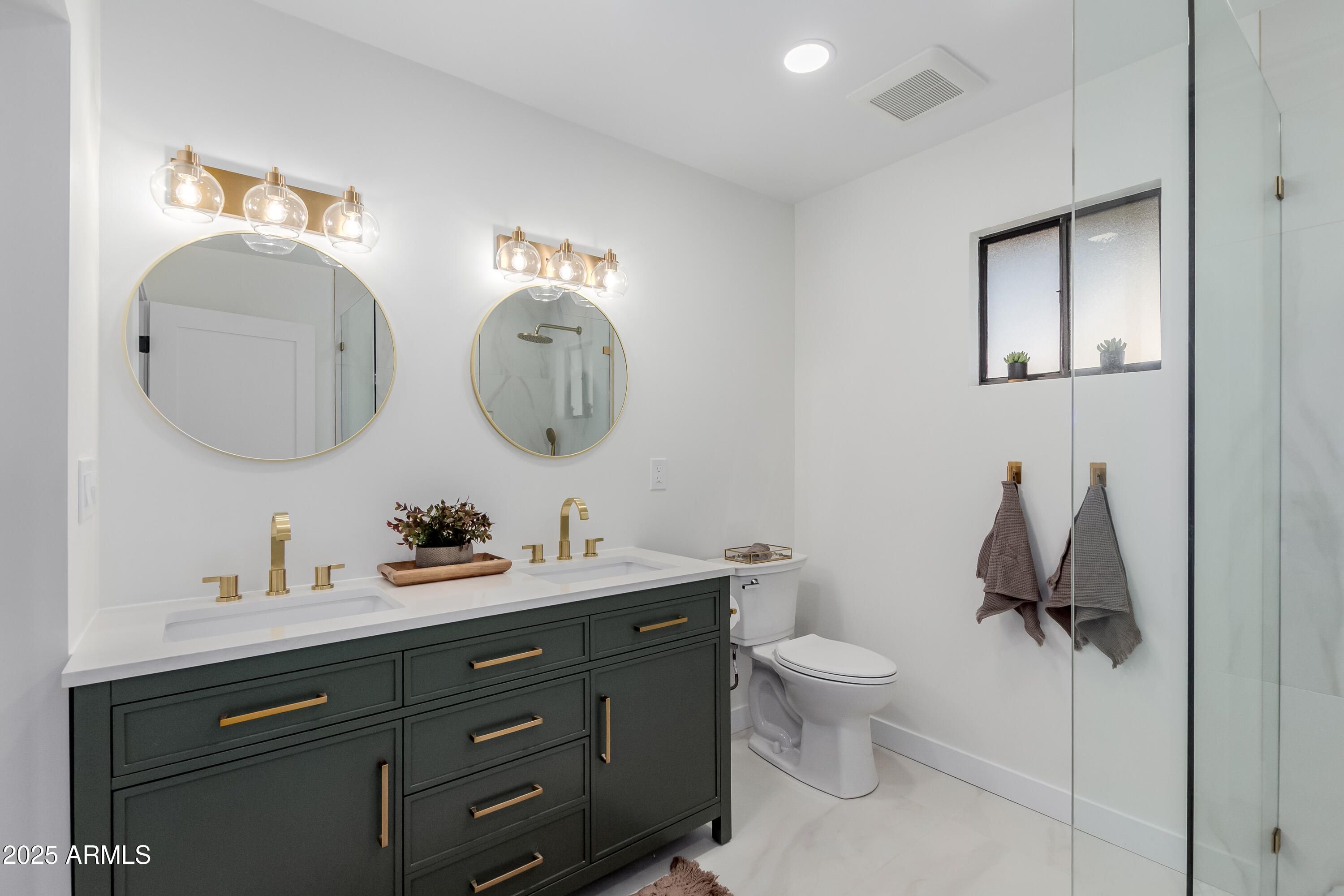 E X Q U I S I T E Golf Course, Waterview Residence. Inside, you'll find a perfectly flowing layout showcasing clean lines in favor of a sleek & modern design. Soothing palette, recessed lighting t/o, & 9'' wide plank wood flooring are features you'll love! The stunning New kitchen boasts quartz counters, shaker cabinets with custom accents, SS appliances, pendant lighting, under cabinet lighting, under cabinet plugs & large custom island. End your busy day in one of three primary luxurious master suites. Lavish spa-like bathrooms, custom vanities, expansive custom showers with large rain shower heads, custom niche with lighting. Large custom closets in each room. Spending relaxing afternoons in the stunning backyard patio with endless golf views, while enjoying the stunning... Arizona sunsets, it will be your favorite spot for relaxing, casual dining, or hosting. Discover everything the community offers, such as the pool, golf courses, pickleball courts, media room & more! You don't want to miss it! **New Roof 2025, New Windows and Sliding Doors, Newer Water Heater, New interior smooth texture, New interior doors, trims and baseboards, New door hardware. All New lighting, New plumbing fixtures, New Interior 9" Wood flooring, 36" Kitchen Stove, New Appliances, New Electric Fireplace, New Epoxy, Custom accents, New paver patio, . AC Units 2025 and 2022. Paid Tesla Solar Lease. New interior and exterior paint and much more. This home is a 10!!!