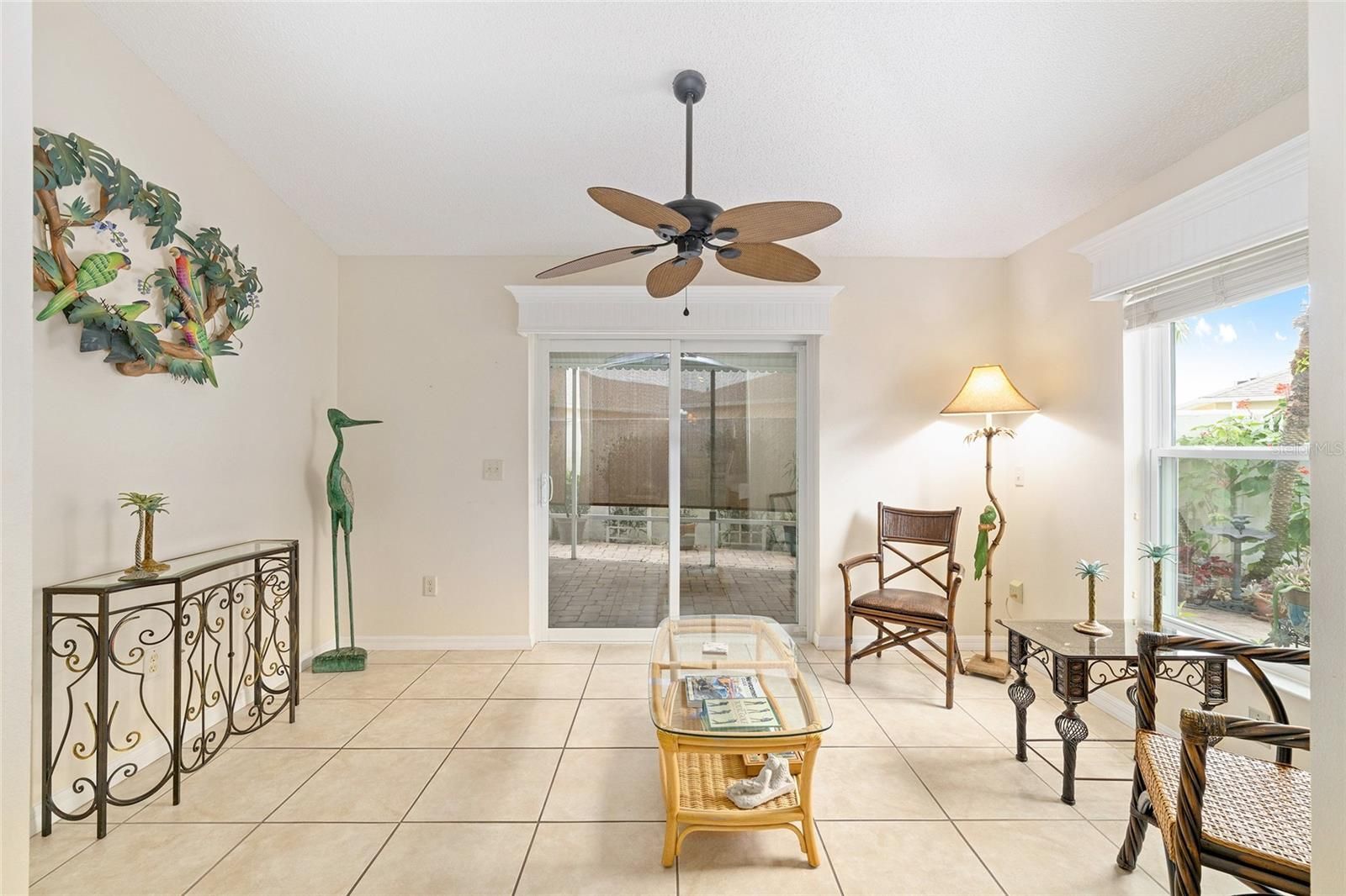 NO BOND! This charming 2 Bedroom, 2 Bath BEAUREGARD MODEL BLOCK & STUCCO Courtyard Villa is located in the desirable Village of Belle Aire, in the Villas of St. Simon. Step inside to find TILE FLOORING THROUGHOUT, HIGH CEILINGS, and tasteful updates that make this home MOVE-IN READY. The KITCHEN has been beautifully enhanced with ADDED CABINETRY, PANTRY CLOSET, GRANITE COUNTERTOPS, NEW REFRIGERATOR, and LOTS OF PULL-OUTS. The GUEST BEDROOM lives like a private suite with an EXTRA DOOR FOR ADDED PRIVACY, perfect for visiting family or friends. Enjoy peace of mind with ALL NEW WINDOWS AND SLIDING GLASS DOORS and appreciate the CUSTOM WOOD CORNICES ABOVE EACH WINDOW. The PRIMARY BATH features a TILED WALK-IN SHOWER, WALK-IN CLOSET, and LINEN CLOSET for added storage. Outdoor living is ideal with STUNNING PAVERS THAT WRAP ALL THE WAY AROUND THE COURTYARD and a CANOPY BIRDCAGE, providing comfort and shade year-round. The GARAGE offers PLENTY OF ROOM FOR A CAR AND GOLF CART, PULL-DOWN ATTIC STAIRS, and CABINETS FOR EXTRA STORAGE. ROOF 2019 – WINDOWS 2012 – A/C 2017 – BLOCK AND STUCCO CONSTRUCTION – NO BOND Located between Spanish Springs and Lake Sumter Landing, you’ll love the convenience of nearby SHOPPING, DINING, GOLF, AND RECREATION. Close to GLENVIEW & NANCY LOPEZ COUNTRY CLUBS, SADDLEBROOK RECREATION CENTER, PICKLEBALL AND TENNIS COURTS, and several COMMUNITY POOLS, this location offers the best of THE VILLAGES LIFESTYLE — all just a SHORT GOLF CART RIDE AWAY! MOST OF THE FURNITURE IS AVAILABLE. The 2 SEATER GAS GOLF CART IS AVAILABLE SEPERATELY, making this an excellent starter OPPORTUNITY!