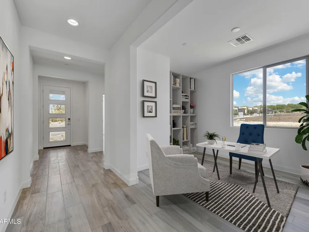 Welcome to this beautiful home in the Resort Collection at Trilogy at Verde River. The Valletta offers a well thought-out layout with 2 bedrooms, 2 bathrooms, and an office. Enjoy upgraded flooring in main areas, upgraded landscape package with pavers and an upgraded outdoor pergola. The kitchen is stunning with White Arctic Shaker Painted Cabinets, Upgraded Rollout and Soft- Close Drawers in the Kitchen, and a spacious kitchen island with a breakfast bar. The great room boasts a 12 foot multi-slide door that open to the covered patio. The primary suite has a lavish ensuite with a huge tiled shower and walk-in closet. Do not miss out on this home The amenities at Verde River are World Class with Tom Lehman inspired eighteen-hole Golf course, tennis courts, pickleball courts, and bocce ball, heated lap pool and Resort style swimming pool, hot tub, Afterburn fitness center, Helen's demonstration Kitchen for cooking classes and a 7.5 acre dog park. The community center has casual poolside dining at Eddy's Diner and gourmet dining at award-winning Needle Rock Kitchen and Tap, Alvea Spa with full-service Salon and Spa amenities, Art Loft and events center. Trilogy at Verde River is adjacent to the Tonto National Forest and is situated in the middle of miles and miles of hiking and biking trails.