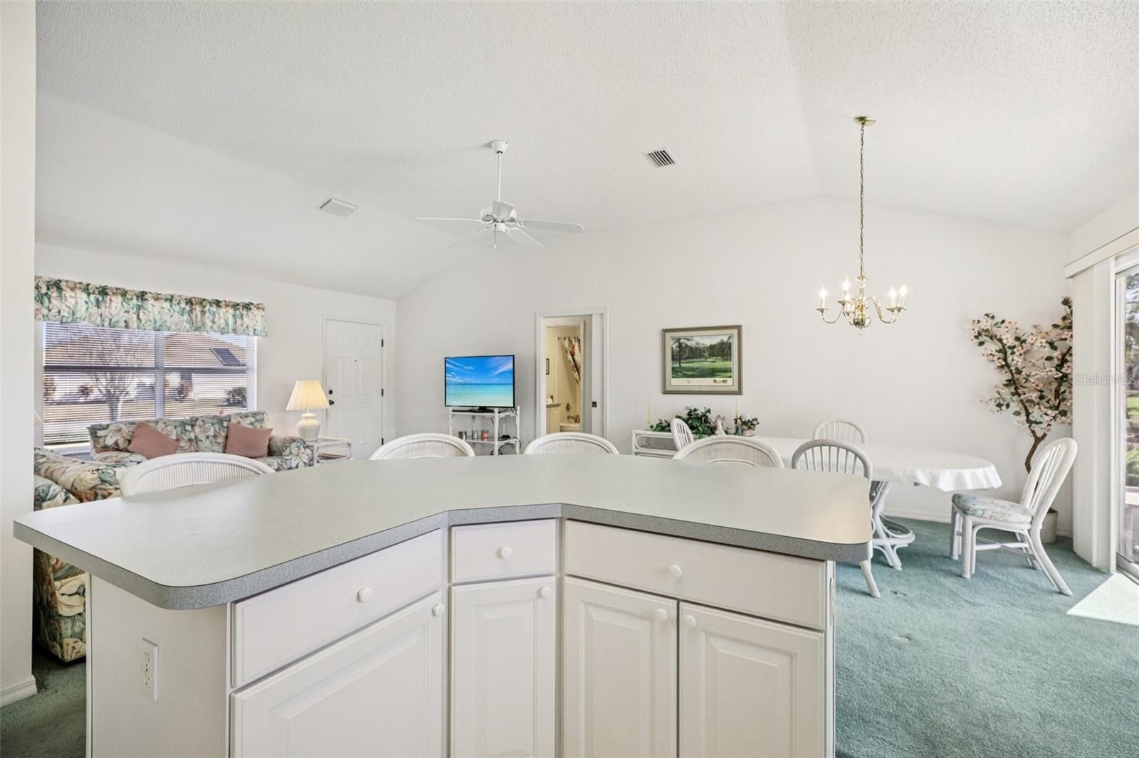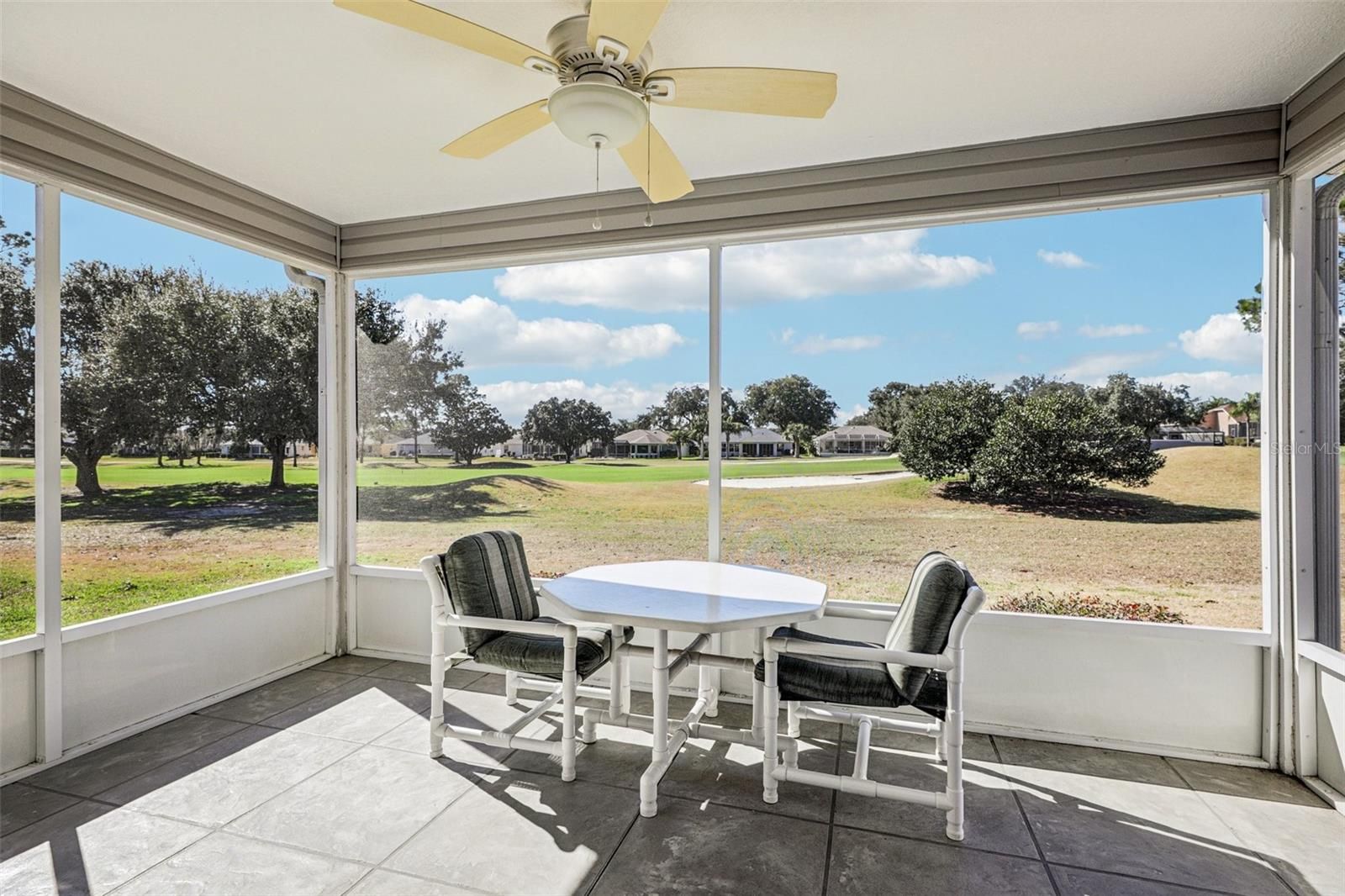 Attention golf lovers…here is your chance to own a spacious Lady Lake 3-bedroom, 2-bathroom home perfectly positioned on the 18th hole of the Tierra Del Sol golf course, one of the most challenging and beautiful courses in The Villages. You are within easy walking distance of a chipping and putting green, pro shop, tennis courts, restaurant, live music and playhouse theatre. Designed with a highly desirable and functional split-bedroom layout, the home features a light-filled open floorplan with vaulted ceilings and an eat-in kitchen with central island. The primary bedroom has a walk-in closet, private ensuite bathroom and slider doors that open up to a patio overlooking the golf course. The second and third bedrooms are in the guest wing off the family room that has a full bathroom and pocket door for privacy from the rest of the home. The living space extends seamlessly outdoors to a generously-sized screened lanai. A two-car garage and large interior laundry/utility room provides ample storage and completes this relaxing retreat. The property offers a fantastic opportunity to apply your personal touches to a classic design. Tour today and see the possibilities for yourself!
