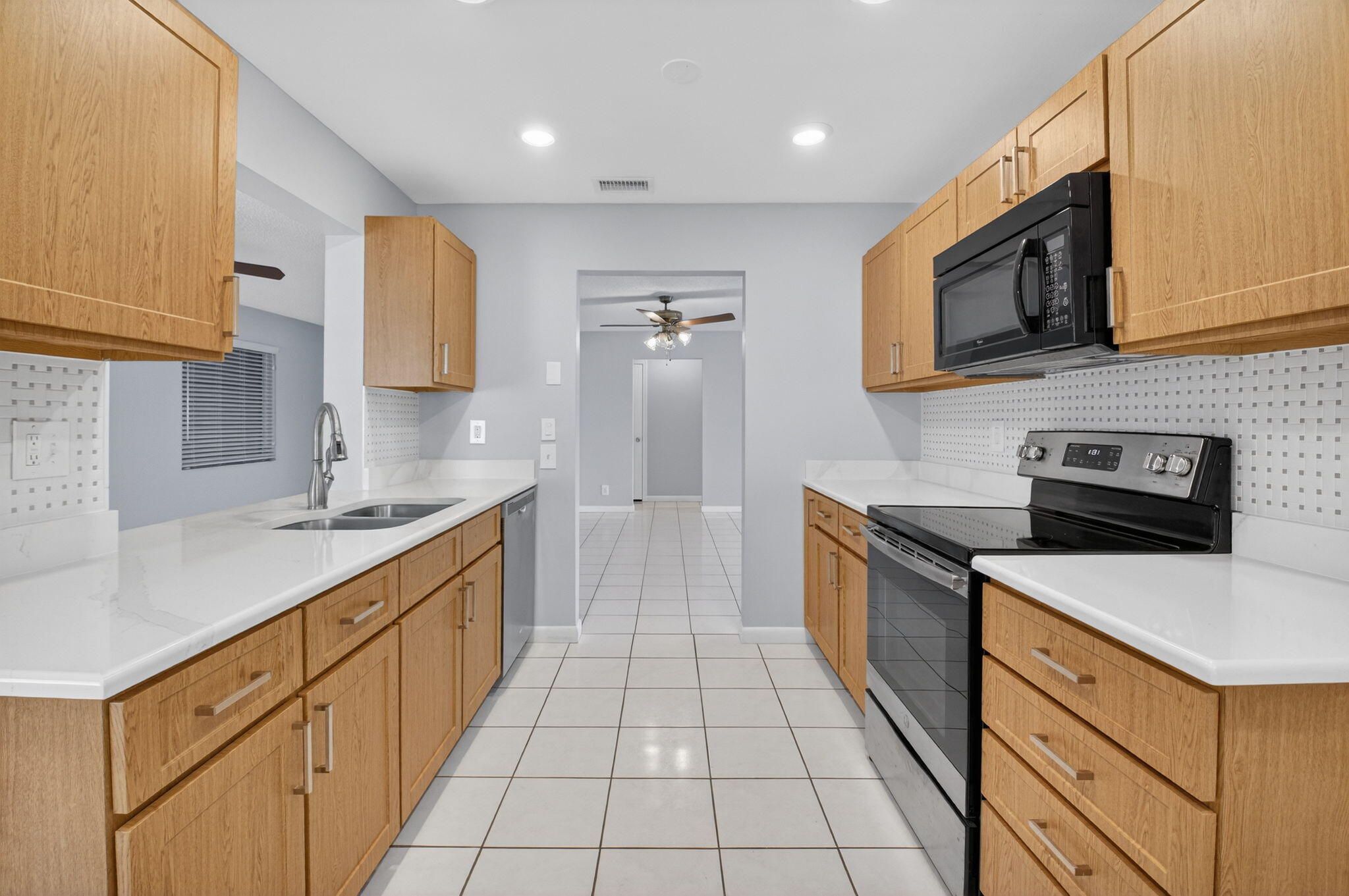 Welcome home to this beautifully maintained 2-bedroom, 2-bath residence situated on a desirable corner lot in a sought-after neighborhood. This light-filled home features abundant natural lighting throughout, creating a warm and inviting atmosphere. The remodeled kitchen shines with recessed lighting and stainless steel appliances—perfect for everyday living and entertaining—while both bathrooms have been thoughtfully updated with modern finishes. The interior has been freshly painted, offering a clean, move-in-ready feel. Major upgrades include a new roof, A/C, and water heater (all 2024). The home also comes equipped with an impact-rated garage door and front door for added peace of mind. With its prime location, extensive updates, and functional layout, this property is ideal for homeowners or investors alike. Don't miss this opportunity to own in a highly desirable area!