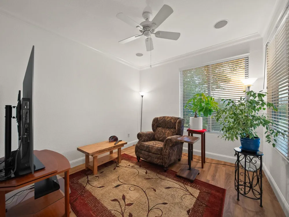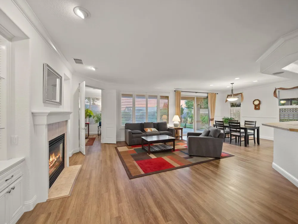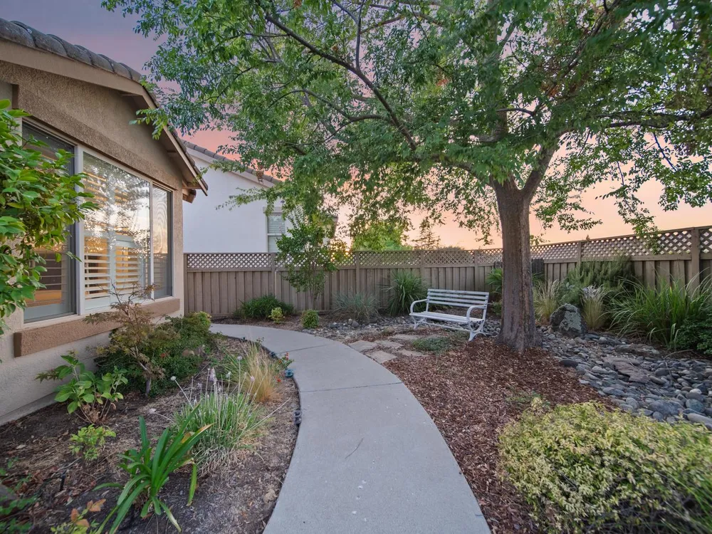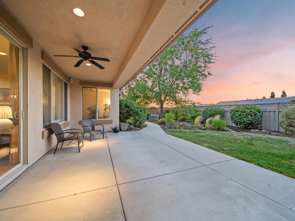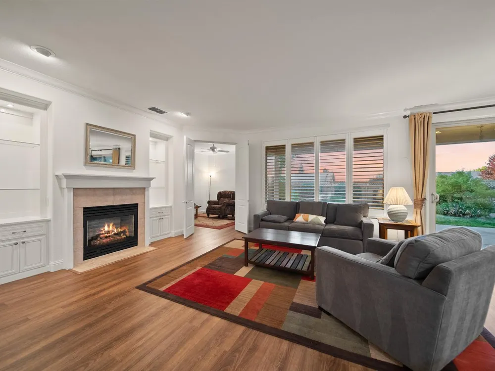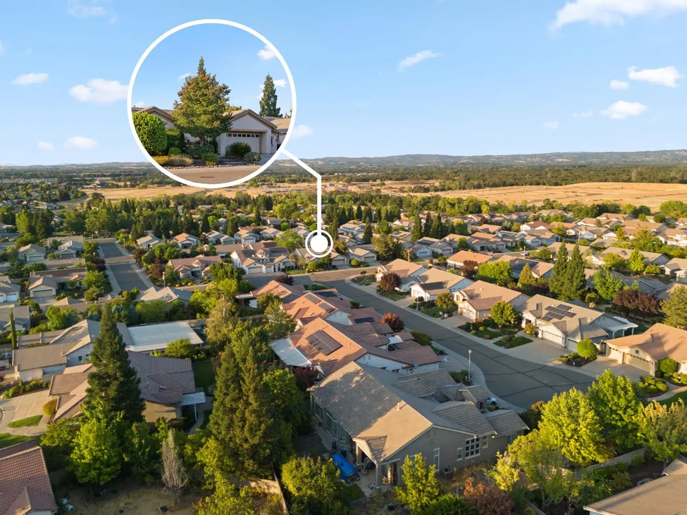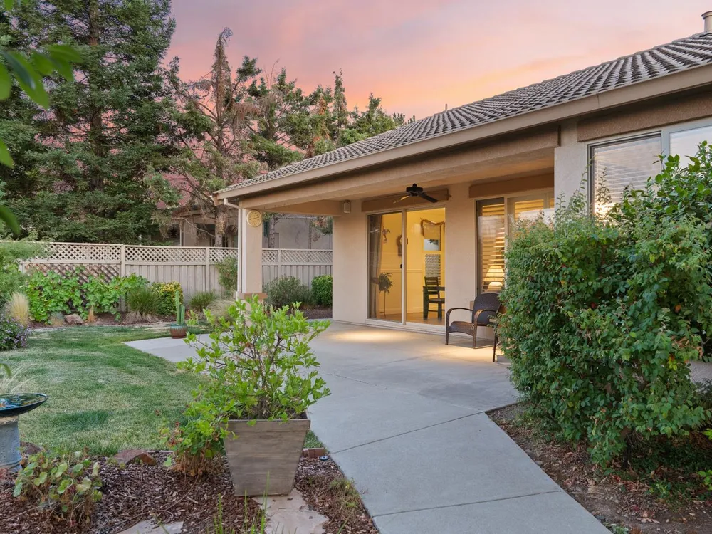 Beautifully enhanced Tahoe model with detached casita in Sun City Lincoln Hills! This 3 bed, 3 bath home offers a private front courtyard with French doors leading to a full casitaideal for guests, office, or creative space. Enter through a custom wrought iron security door with opening glass panel into a freshly painted (Sept 2025) interior featuring crown molding, tall baseboards, and plantation shutters. The open-concept living area shines with natural light, stained glass accents, a cozy gas fireplace, and built-in speakers in the kitchen and primary bedroom. The kitchen boasts maple cabinets with pull-out shelves, while the spacious primary suite includes a bump-out sitting area, newer granite counters, dual vanities, and a walk-in closet. Outside, enjoy a covered patio perfect for relaxing or entertaining. Added highlights: whole house fan, 2.5-car garage with cabinets, workbench & overhead rack, Kitec plumbing replaced (2018), HVAC replaced (2018). Prime location near golf, clubhouse, pools, trails & more!