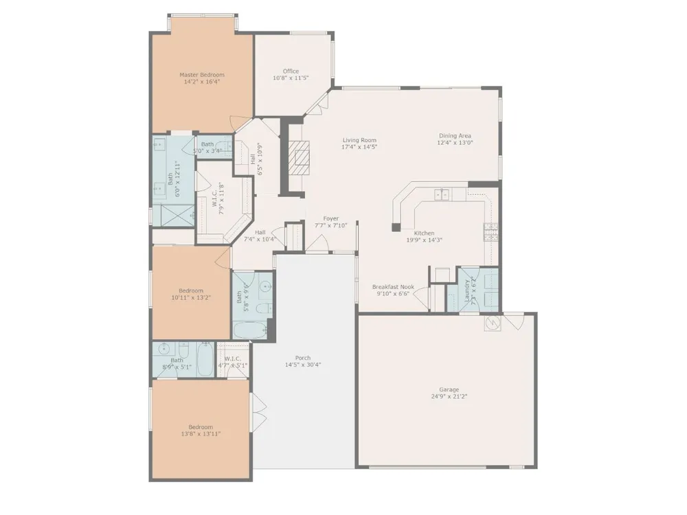 - Bedroom on Main Level, Living Room, Dining Room, Family Room Lower Level, Primary Bedroom, Full Bathroom, Half Bathroom, Kitchen