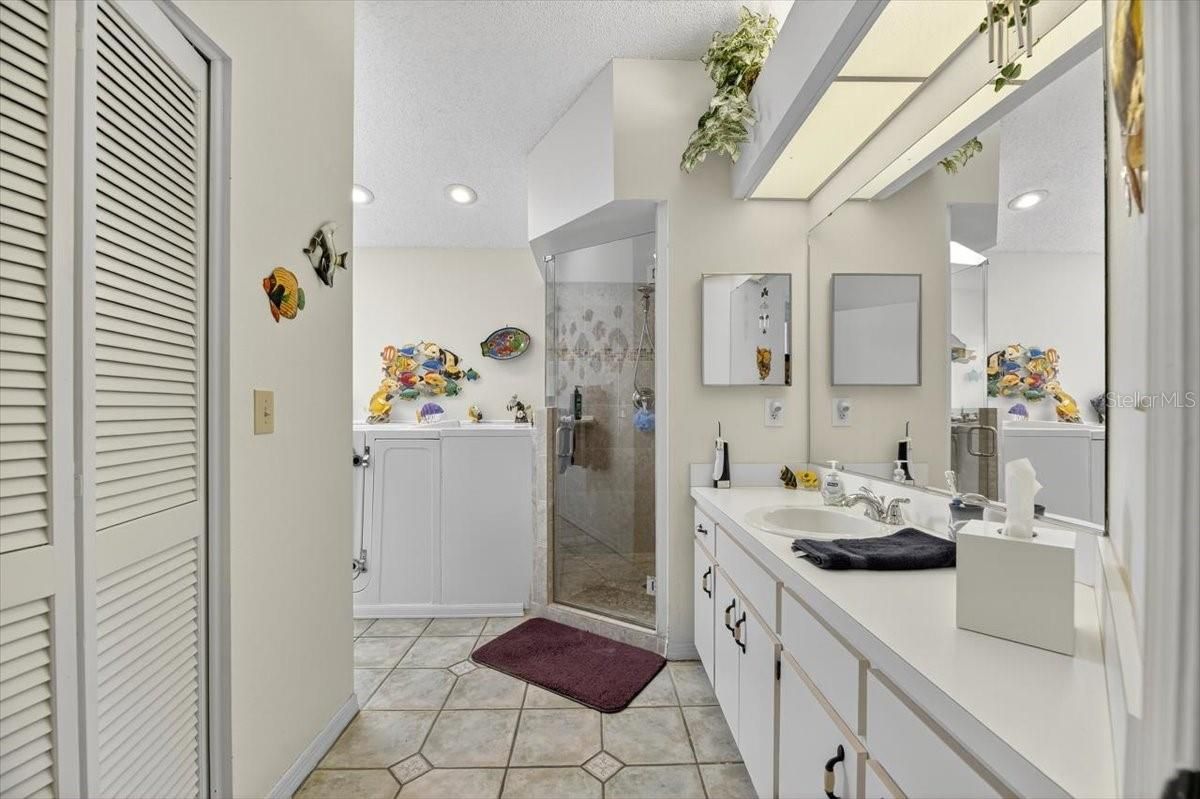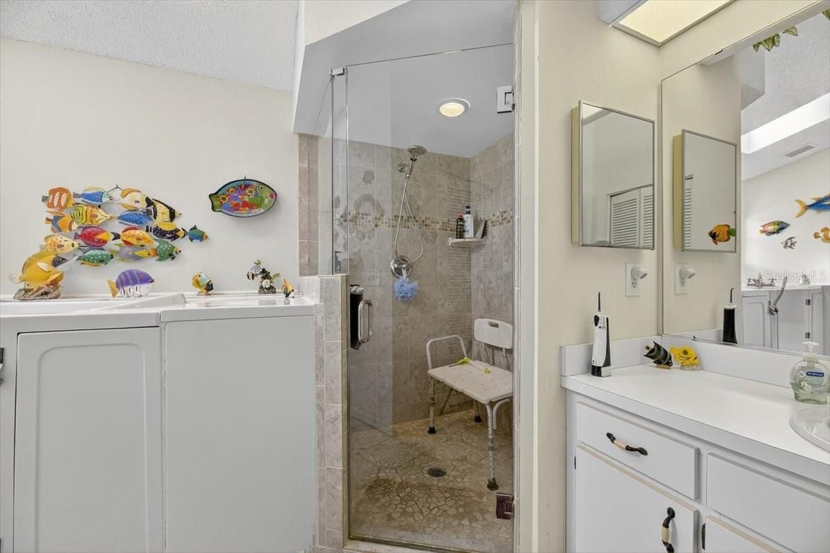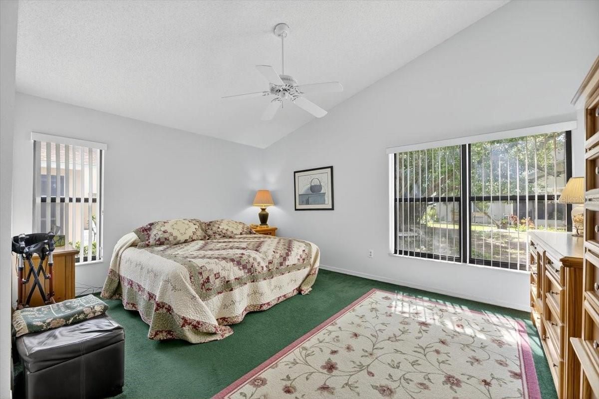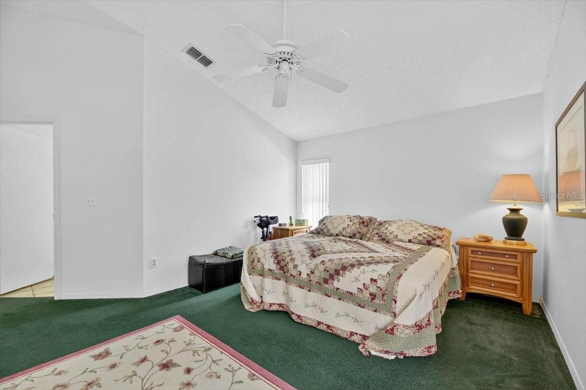 - Cathedral Ceiling(s), Eat-in Kitchen, Main Level Primary, Solid Surface Counters, Solid-Wood Cabinets, Stone Counters, Thermostat