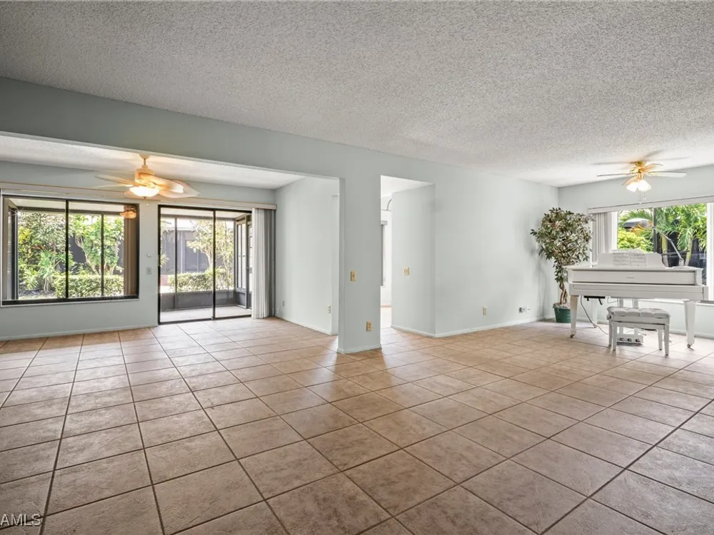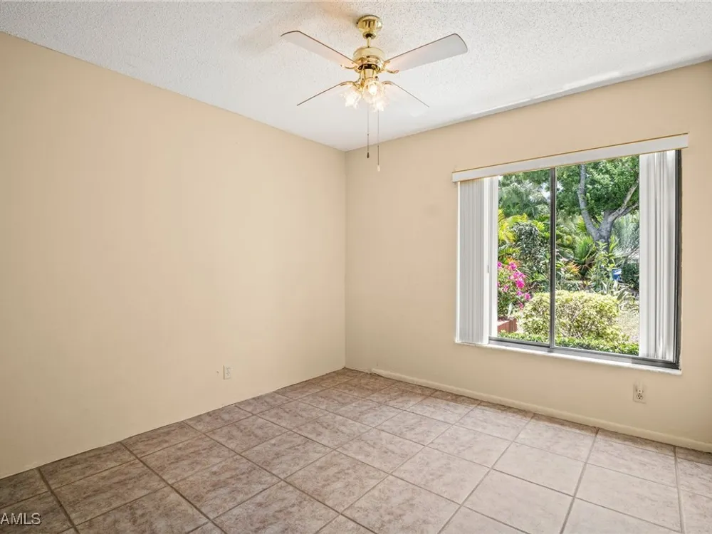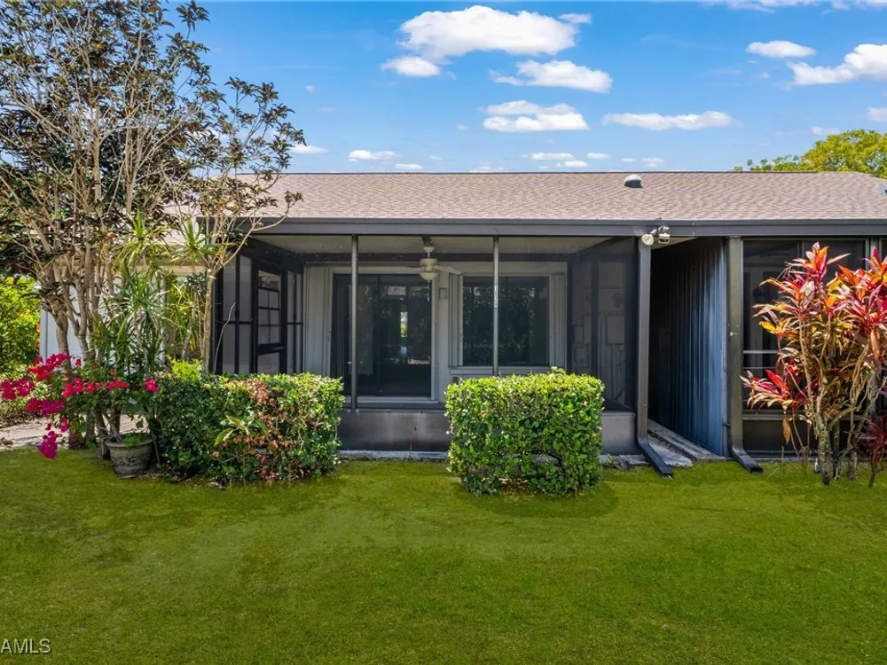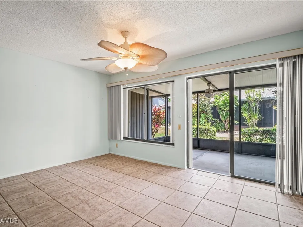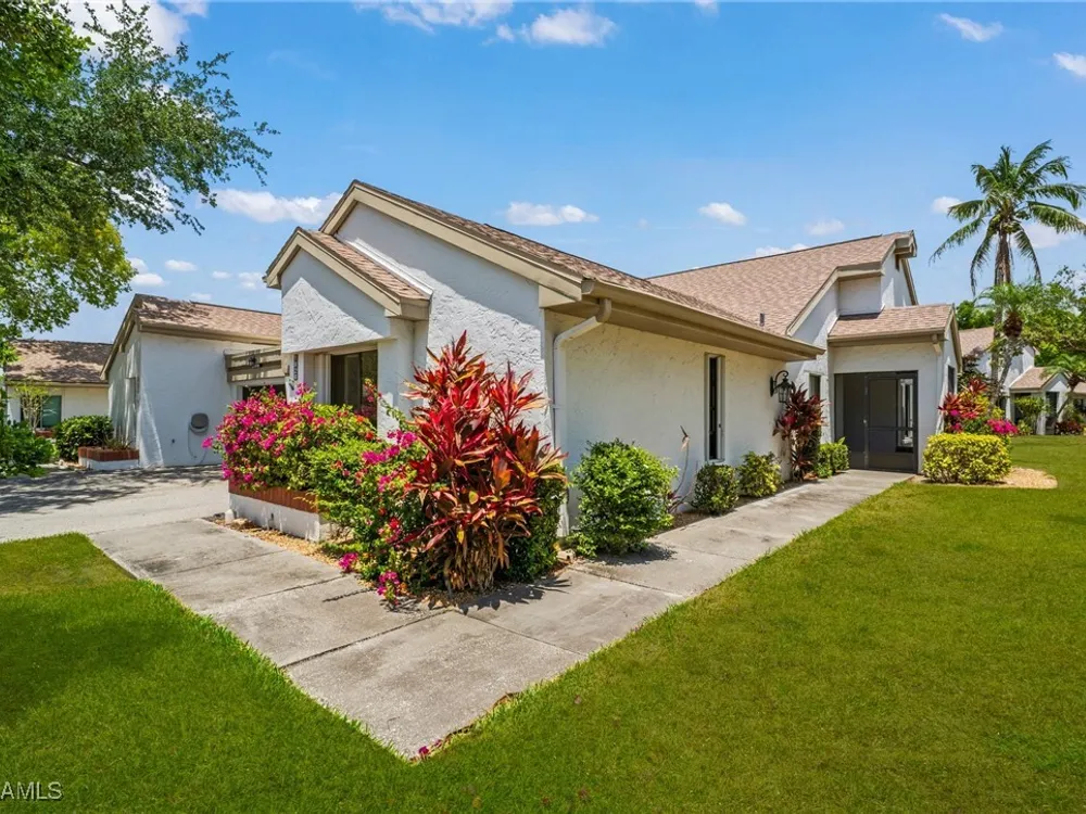 Now is the time! This Single Level Garden Villa is Available for New Ownership at a great price. Private 1 car garage, 2 Patios, Large Living room tile throughout. New Gorgeous guest bath just being finished up. Room for full size washer / dryer inside the unit. The Florida lifestyle is affordable again, and now truly is the time to buy! The community is adored and enjoyed by many with Golfing for 2 included, Pickleball, Tennis, 6 Pools amongst the nearly 200 acres of manicured grounds. Guard Gates, Restaurant and Bar with outdoor space, Exercise rooms, Meeting rooms, a stunning library, a lapidary with classes, woodshop fully stocked, arts, pottery and crafts rooms all with classes for learning. Poker and billards rooms, a full time lifestyle director organizes events galore for the benefit of the residents. Yoga, Water aerobices, sound baths! Bus trips for the daily needs as well as outings to local and exciting sites like animal habitats, markets, beaches and sooo much more! Maintenance fees encompass the water/sewer, cable/wifi, gate/grounds, golf for two, Pools, dog park, putting green, driving range, managment and on site condo association, The location is minutes to fantastic beaches, RSW airport, Shoppping, medical, over 50 restaurants, BB Mann arts hall for plays, music and more. Choose SEVEN LAKES!