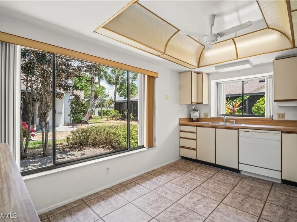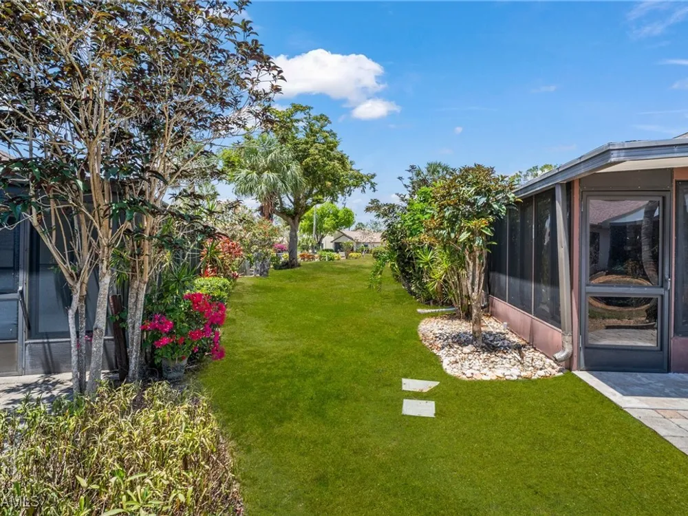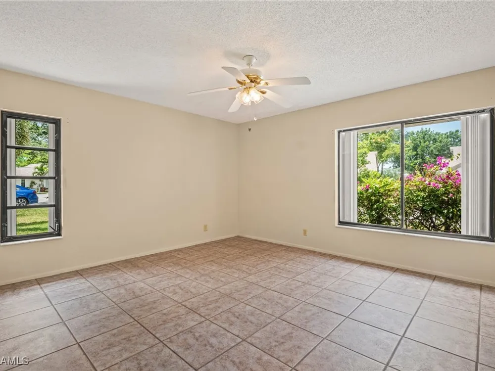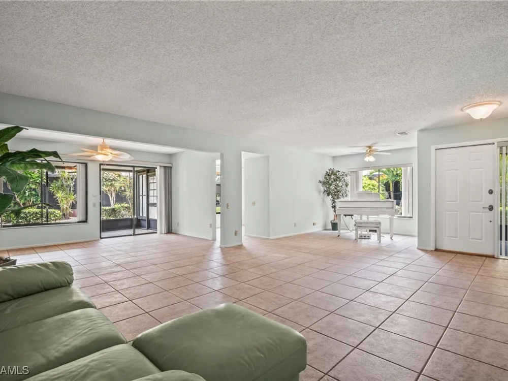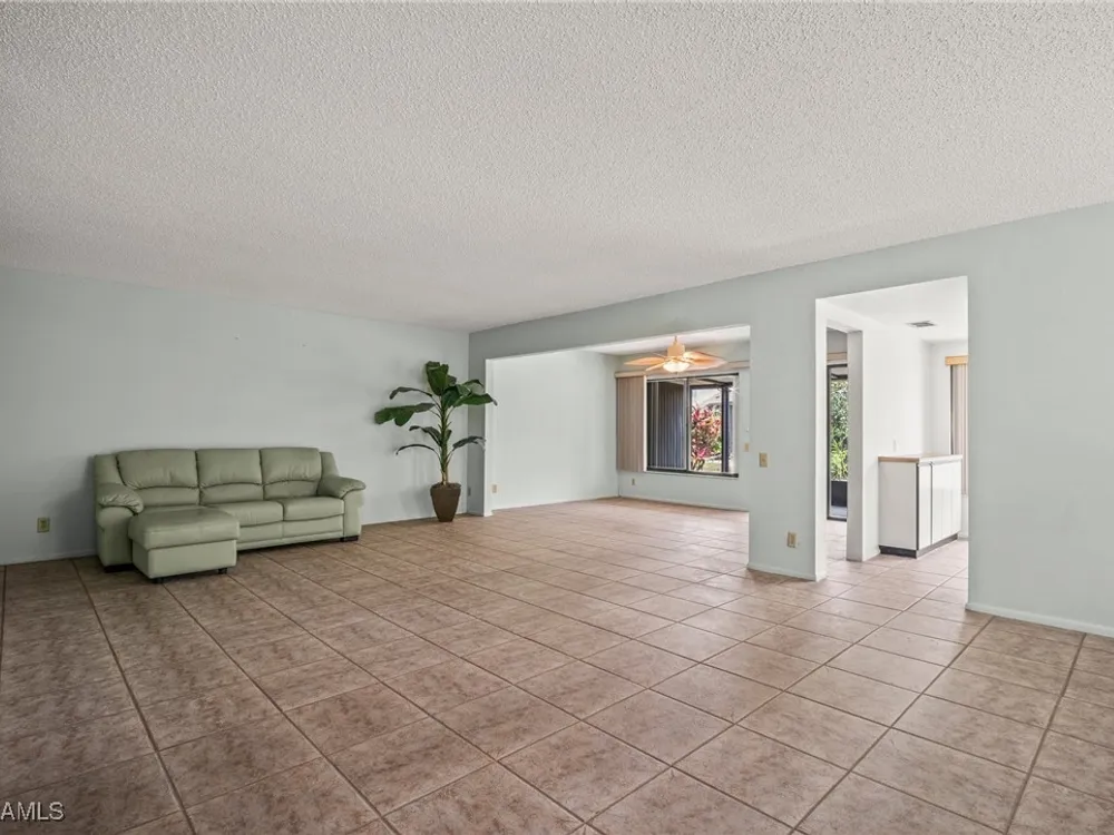 Now is the time! This Single Level Garden Villa is Available for New Ownership at a great price. Private 1 car garage, 2 Patios, Large Living room tile throughout. New Gorgeous guest bath just being finished up. Room for full size washer / dryer inside the unit. The Florida lifestyle is affordable again, and now truly is the time to buy! The community is adored and enjoyed by many with Golfing for 2 included, Pickleball, Tennis, 6 Pools amongst the nearly 200 acres of manicured grounds. Guard Gates, Restaurant and Bar with outdoor space, Exercise rooms, Meeting rooms, a stunning library, a lapidary with classes, woodshop fully stocked, arts, pottery and crafts rooms all with classes for learning. Poker and billards rooms, a full time lifestyle director organizes events galore for the benefit of the residents. Yoga, Water aerobices, sound baths! Bus trips for the daily needs as well as outings to local and exciting sites like animal habitats, markets, beaches and sooo much more! Maintenance fees encompass the water/sewer, cable/wifi, gate/grounds, golf for two, Pools, dog park, putting green, driving range, managment and on site condo association, The location is minutes to fantastic beaches, RSW airport, Shoppping, medical, over 50 restaurants, BB Mann arts hall for plays, music and more. Choose SEVEN LAKES!