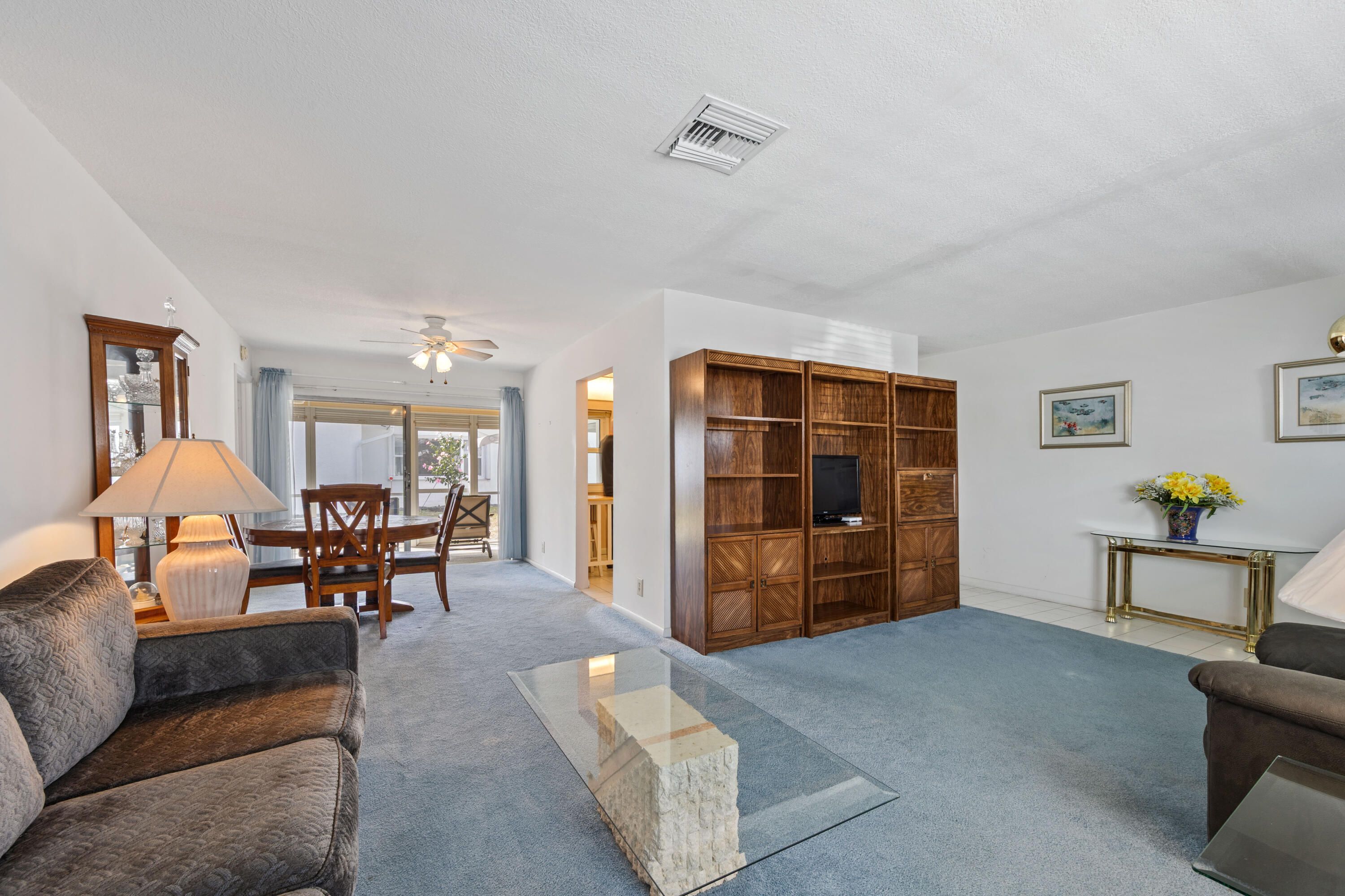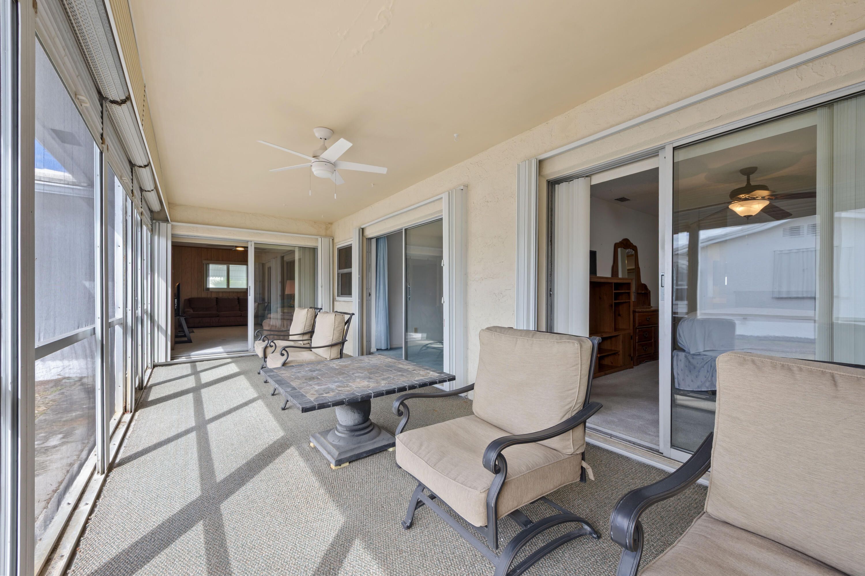 Challenger Model ready for new owners to make it their own! Carpet & tile flooring throughout. Great split floor plan w/primary bedroom separate from guest room. Hurricane Impact Windows plus accordion shutters on the sliders. Large screened in covered patio perfect for enjoying the Florida breeze. Tile roof replaced in 2006, flat deck replaced in 2018, HVAC 2020, GE panel. Property has easy access to clubhouse, just a short stroll. Boynton Beach Leisureville offers a low HOA of $245/mo which covers the grass cutting, outside pest control, Hotwire Cable & Internet and recreational facilities.
