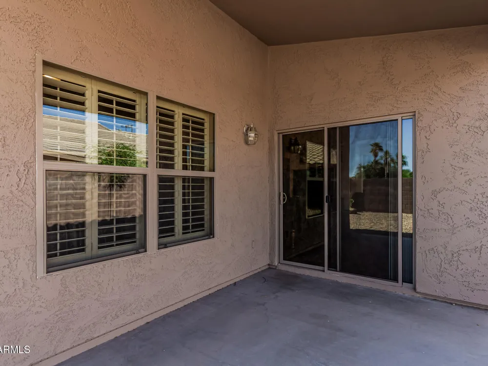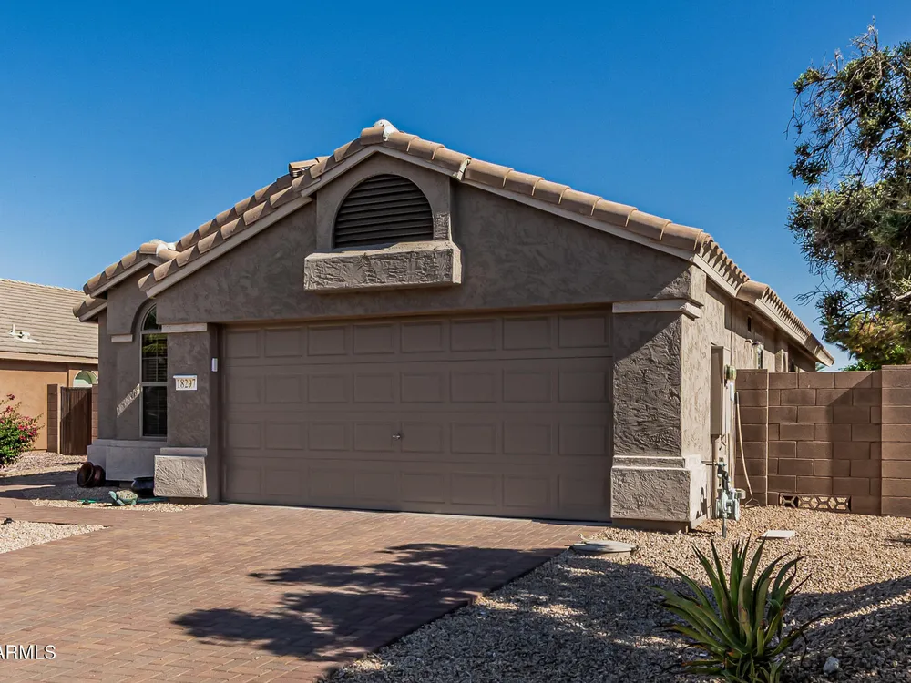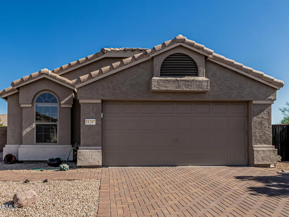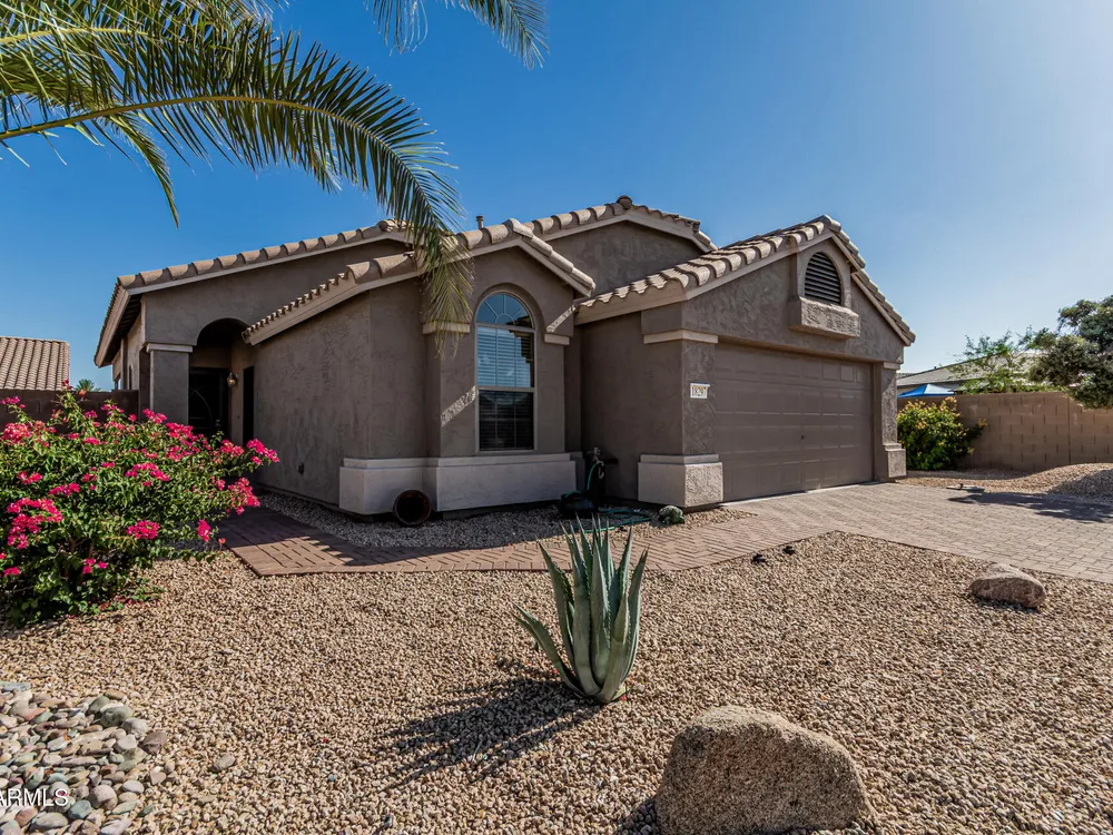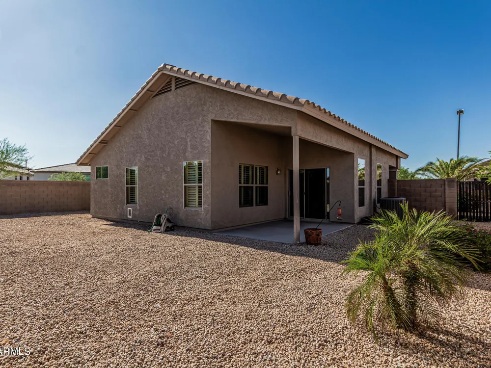 Home, sweet home! This gorgeous 2 bed, 2 bath property in Arizona Traditions is now for sale! Featuring great curb appeal, a low-care landscape, 2 car garage, and paver driveway. Inside you will find spacious dining & living areas w/vaulted ceilings, a warm fireplace, plantation shutters, and custom palette throughout. The kitchen is comprised of wood cabinetry w/crown moulding, ample counter space, built-in appliances, and a peninsula w/a breakfast bar. Double doors open up to the primary bedroom, showcasing a private ensuite w/dual sinks and a walk-in closet for all your belongings. Don't forget about the cozy den, ideal for an office or reading nook. Also including an expansive backyard w/a covered patio, this home is a true gem! Don't miss out!