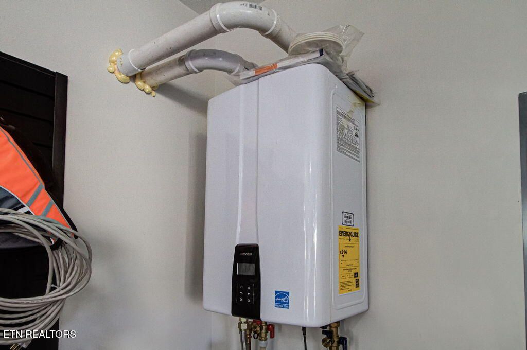 - Tankless Water Heater, Gas Range, Gas Cooktop, Dishwasher, Disposal, Microwave, Refrigerator, Self Cleaning Oven
