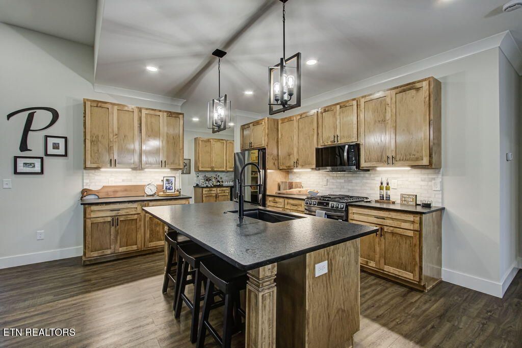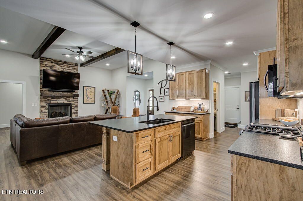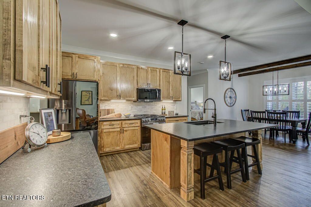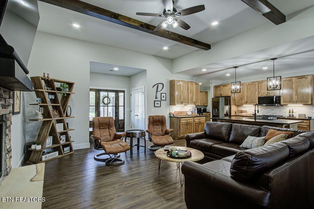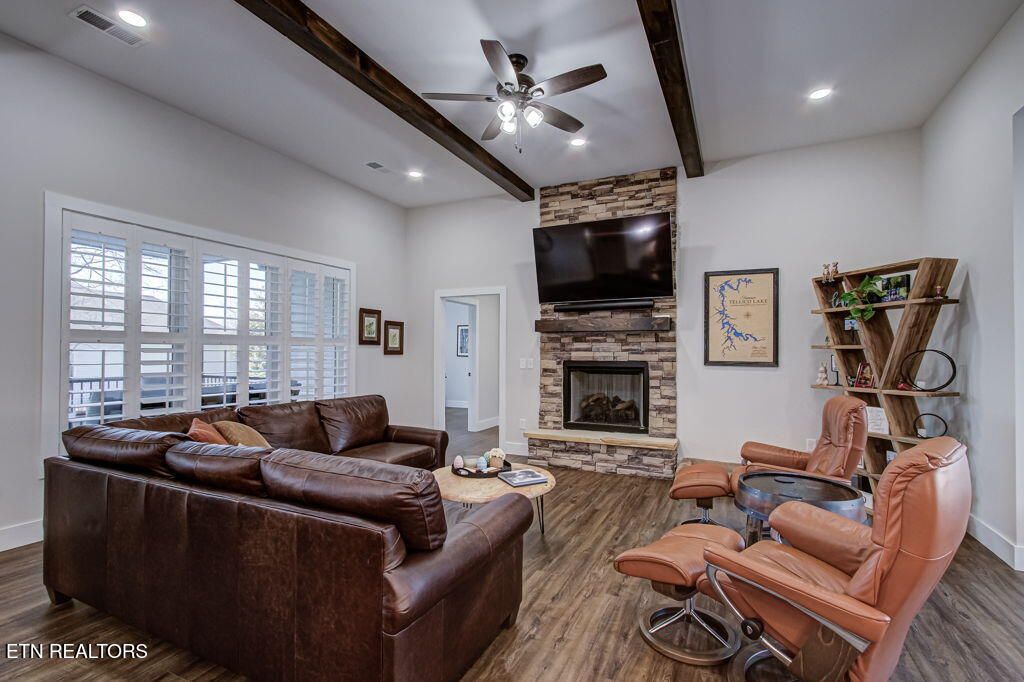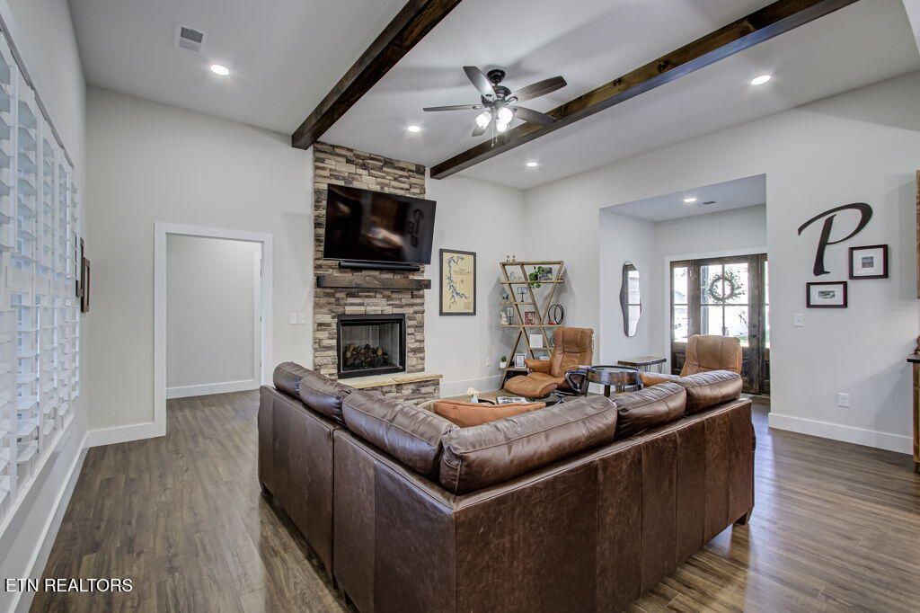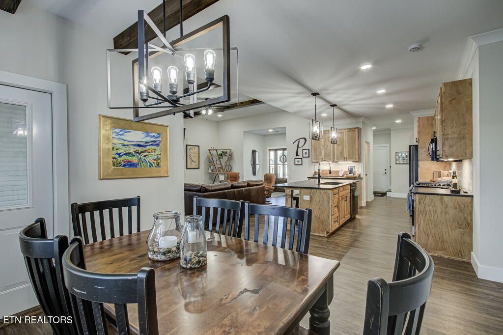 Welcome to 183 Saloli Way, a stunning custom-built 2024 luxury home in the highly desirable Tellico Village on beautiful Tellico Lake. Designed with exceptional attention to detail and elevated finishes, this 4-bedroom, 3-bath residence offers 2,437 square feet of refined open-concept living perfect for both entertaining and everyday comfort. Step inside to an inviting great room and dining area, featuring stunning stained wood beams, creating warmth and architectural character. The open layout flows seamlessly into the designer kitchen, highlighted by an expanded oversized island, upgraded appliances, gas cooking, and a beverage center complete with wine and drink refrigerator--perfect for entertaining. The home features high-end LVP flooring throughout, complimented by plantation shutters in every room, adding both style and a timeless design. Thoughtful upgrades continue throughout the home with custom closet organizers in every closet, maximizing storage and organization, while maintaining a clean, upscale aesthetic. Outdoor living is equally impressive with an oversized screened in porch, providing the perfect space to relax, entertain, and enjoy East Tennessee's beautiful seasons. The home is professionally landscaped, enhancing the home's curb appeal. Additional highlights include: Large 3-car garage with upgraded flooring and built-in storage organizers Gas tankless hot water heater LeafFilter gutter guards with lifetime warranty. Spacious bedroom and full bath over the garage functions as a guest retreat, hobby space or office. Nearly new 2024 custom construction with high end upgrades throughout and Professionally landscaped. Located in the vibrant Tellico Village community, residents enjoy access to championship golf courses, marinas, walking trails, fitness facilities, and an active social lifestyle on beautiful Tellico Lake. Luxury, lifestyle, and move-in ready perfection-183 Saloli Way offers an exceptional opportunity to enjoy the best of Tellico Village living.