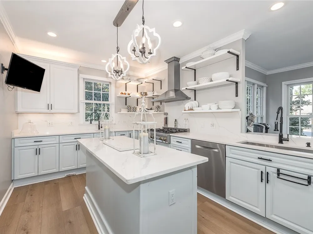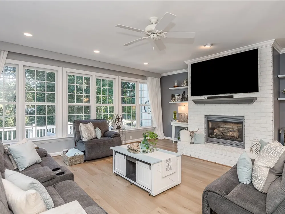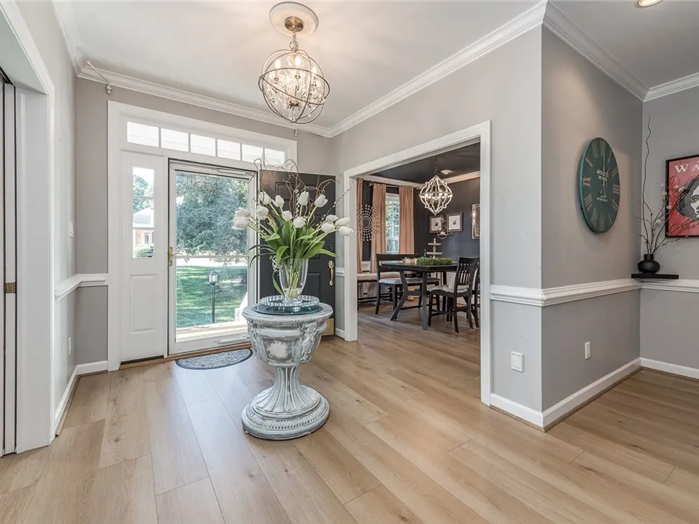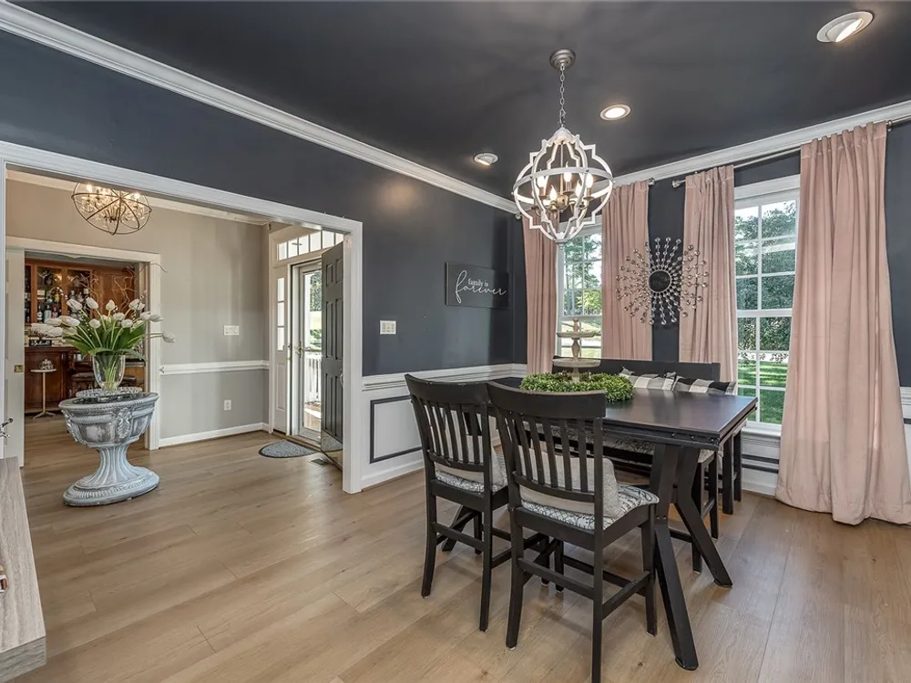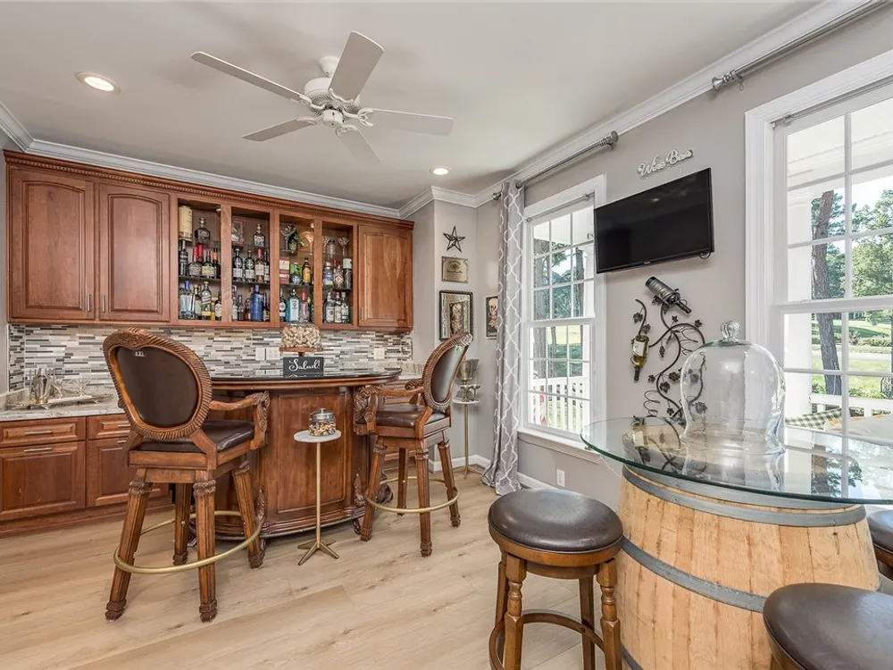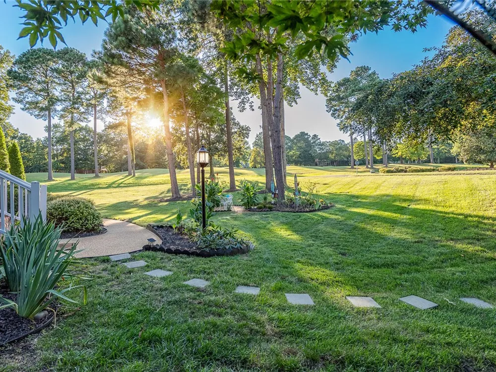 Completely transformed and perfectly positioned in the coveted McGregor Downs neighborhood, this home offers a serene, park-like setting with captivating water views. A gracious front porch with an oversized cushioned swing sets the tone—welcoming guests in true Southern style. Inside, the traditional floor plan delivers the best of one-level living, with a thoughtful balance of open gathering spaces and private retreats. Entertain with ease—whether indoors in the game room, theater room with tiered seating, music room, wine room, and multiple bars, or outdoors on the deck, patio, and fire pit overlooking the water. An oversized laundry and activity room, brightened by a solar tube, makes daily tasks a pleasure, while abundant storage—including a walk-in pantry, generous closets, a massive walk-in attic, and a large workshop with exterior access—keeps everything organized. Car enthusiasts and RV owners will be wowed by the exceptional garage space. From quiet mornings on the porch to lively evenings with friends, this home offers endless possibilities. The only question is—how will you make it yours?