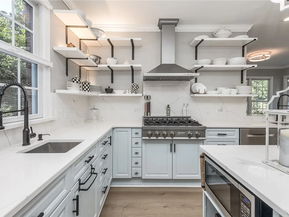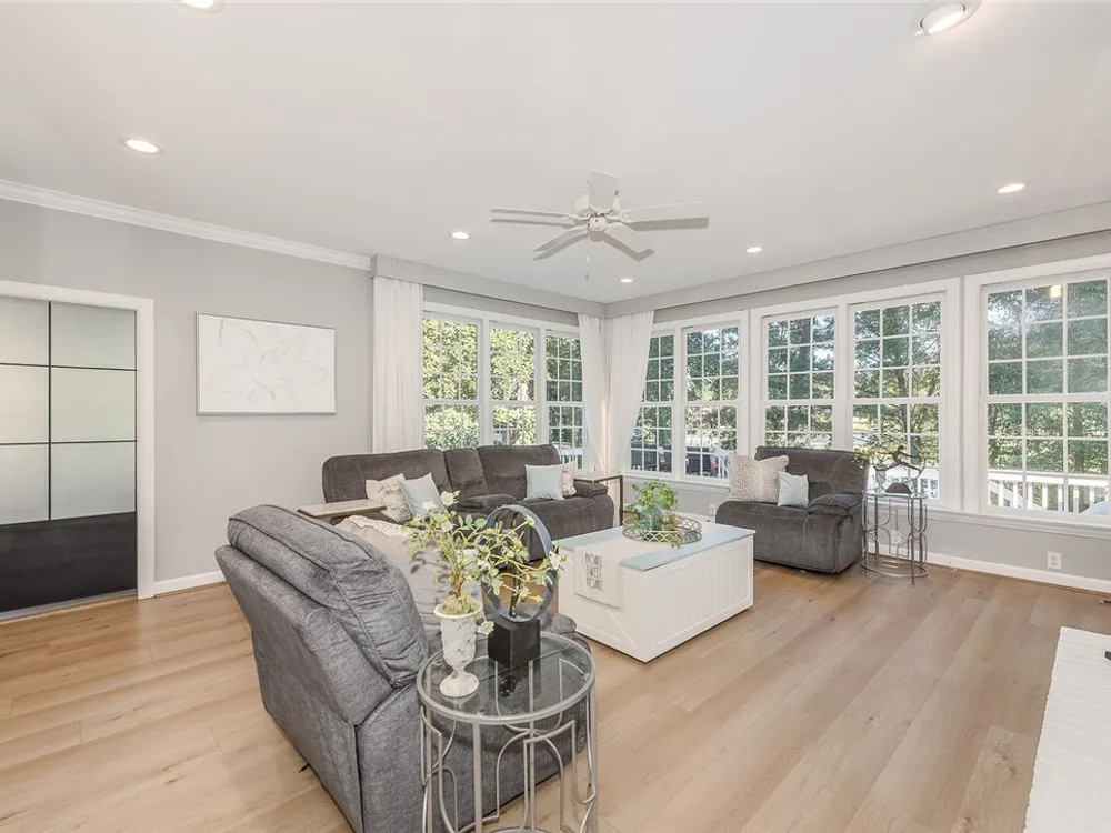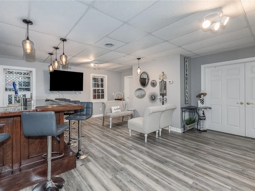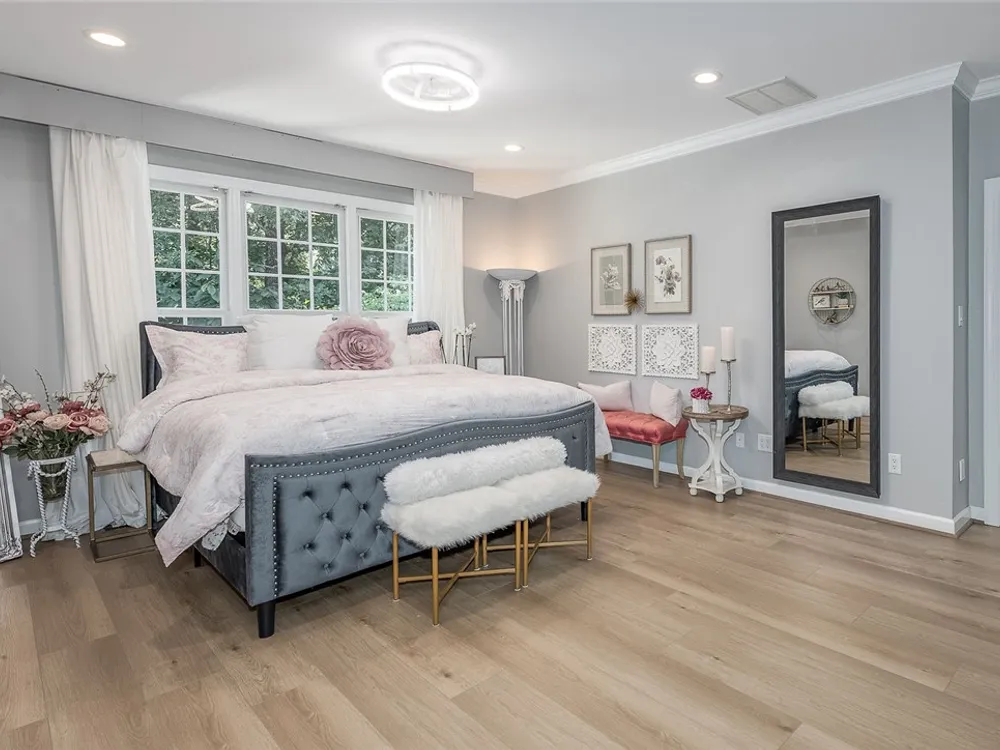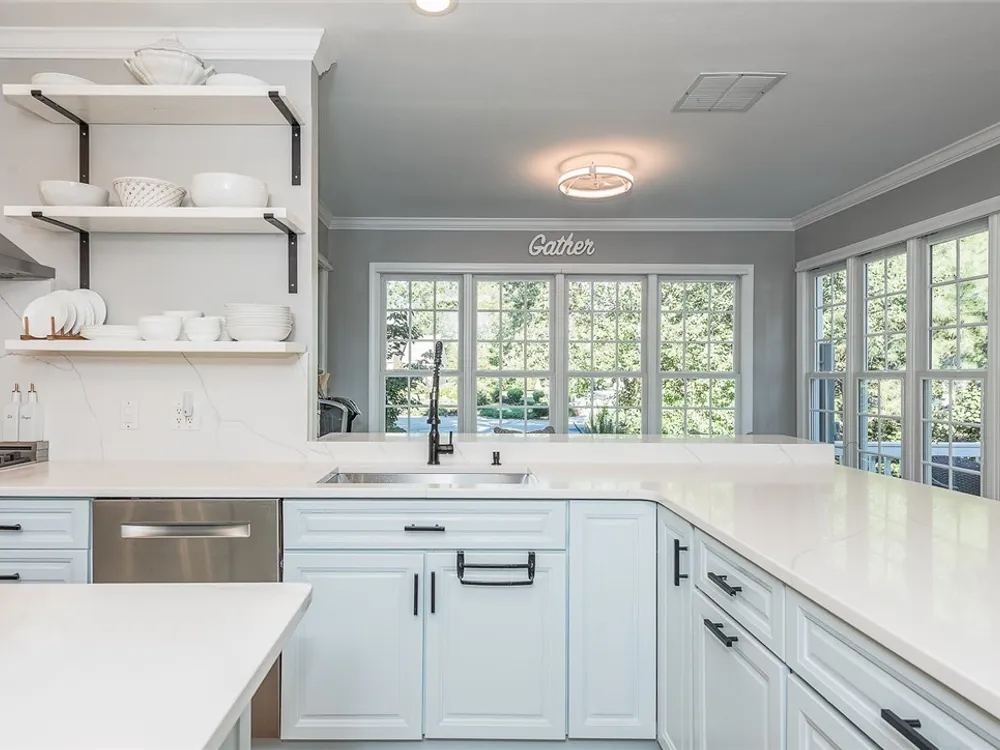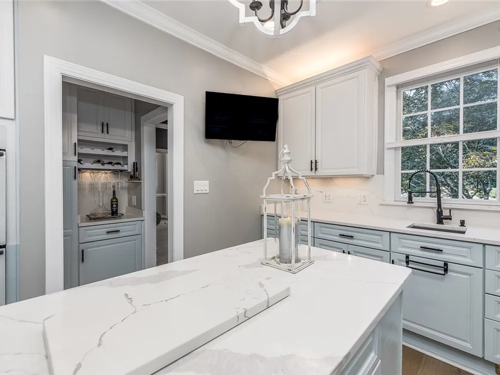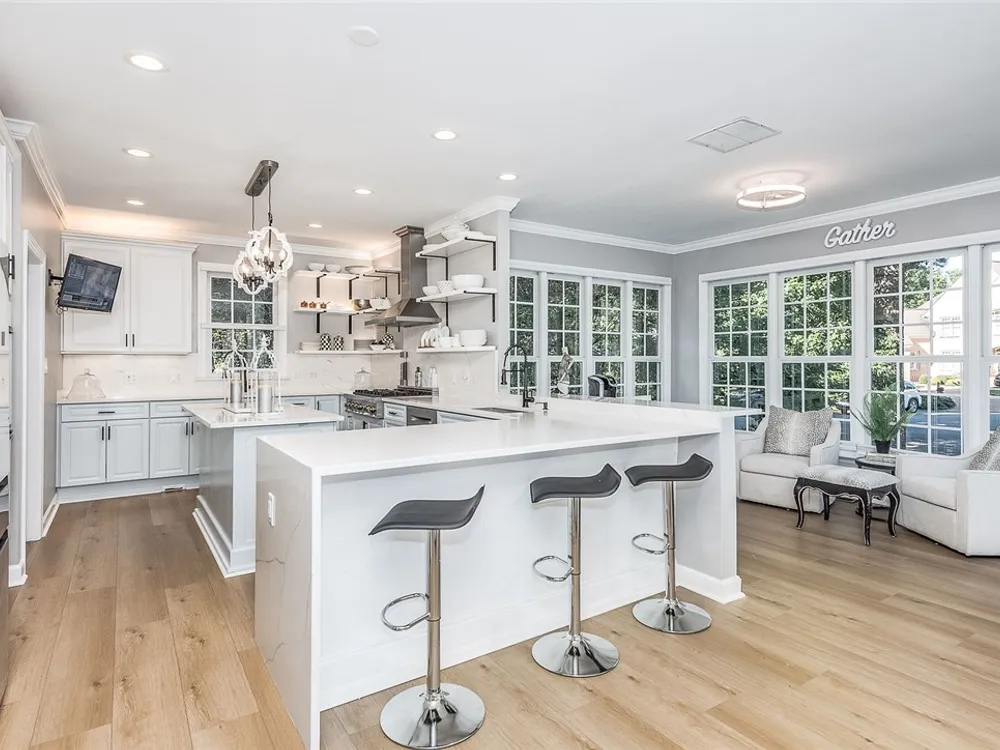 Completely transformed and perfectly positioned in the coveted McGregor Downs neighborhood, this home offers a serene, park-like setting with captivating water views. A gracious front porch with an oversized cushioned swing sets the tone—welcoming guests in true Southern style. Inside, the traditional floor plan delivers the best of one-level living, with a thoughtful balance of open gathering spaces and private retreats. Entertain with ease—whether indoors in the game room, theater room with tiered seating, music room, wine room, and multiple bars, or outdoors on the deck, patio, and fire pit overlooking the water. An oversized laundry and activity room, brightened by a solar tube, makes daily tasks a pleasure, while abundant storage—including a walk-in pantry, generous closets, a massive walk-in attic, and a large workshop with exterior access—keeps everything organized. Car enthusiasts and RV owners will be wowed by the exceptional garage space. From quiet mornings on the porch to lively evenings with friends, this home offers endless possibilities. The only question is—how will you make it yours?