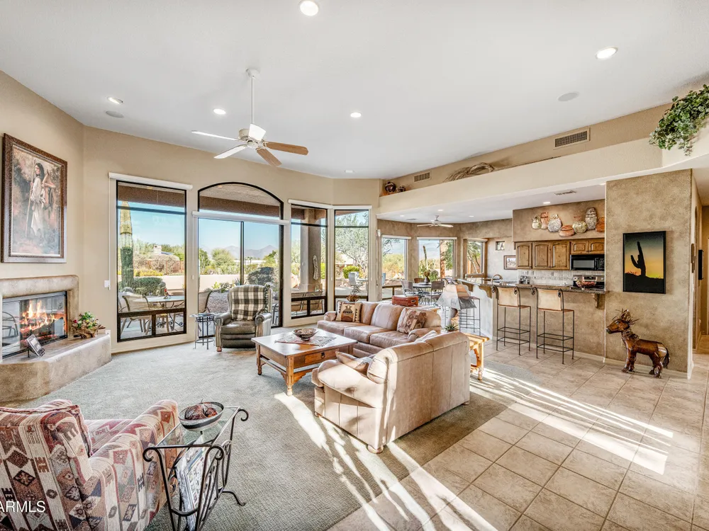 Mountain views and turn-key, move-in ready. Don't miss this beautifully updated and maintained home in the gated community of Tonto Verde. The fully furnished home features newer appliances, granite countertops, an upgraded master bath, a new roof in 2024, a new irrigation system in 2024, an epoxy garage floor, and an upper observation deck for 360-degree views. A small addition created a lovely bar and built-in desk area off the kitchen. The third bedroom can be an office or a bedroom for extra sleeping space. The home sits on a manicured corner lot with a circular drive. A gold Membership is available for purchase with this property.