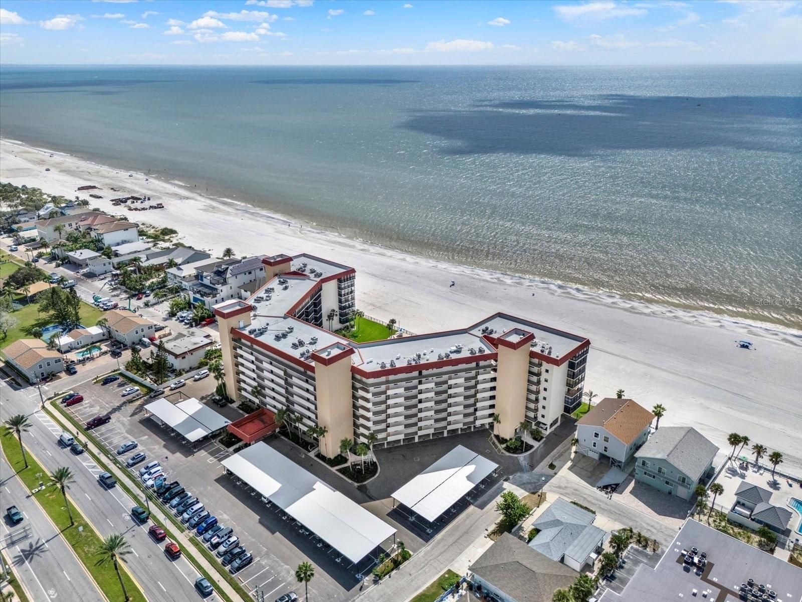 Don’t miss this 2BR/2BA CORNER UNIT BEACHFRONT CONDO inside the coveted Shore Mariner 55+ Community on Redington Shores! This beautiful unit is complete with a WRAPAROUND PORCH, TANDEM UNDER-BUILDING PARKING, AND INTERIOR LAUNDRY! In addition, the condo has been very well maintained and thoughtfully updated throughout. The kitchen offers stainless steel appliances, solid wood cabinets, a water filtration system, and plenty of counter space with barstool seating. The oversized wrap around porch offers UNPARALLELED VIEWS and comes fit with hurricane shutters. Soak up even more GULF VIEWS FROM THE MASTER BEDROOM, complete with a walk-in closet. Updates include NEW HVAC (2022) NEW WATER HEATER (2024) NEW ELECTRICAL PANEL (2018), New sliders (2021). This unit also comes with a storage locker located on the same floor. The Shore Mariner community offers amazing amenities, including an oceanfront heated pool, shuffleboard, outdoor grills, beach access and more! Don’t miss your chance to see this condo and schedule a showing today!