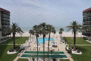 FULLY FURNISHED direct gulf/beachfront with center pool view condominium in one of Pinellas County's premier 55+ beachfront communities. Additionally, rest easy knowing that this community's Milestone Inspection has already been fully completed and funded with no required repairs! Recent building upgrades include a new roof for the building and full exterior painting in 2024 as well as all balconies having concrete restoration/reinforcement that same year. An example of strong HOA proactivity. This particular condominium unit is fully turn-key and tastefully furnished throughout. The unit is in the highly desirable center position of the building affording direct pool views with the gulf directly behind. Additional benefits of the location are the convenient proximity to the elevator, garbage chute, and direct access to the mail room and fitness room without contending with the outdoor elements unlike some other elevator locations in the building. A deeded (and covered) parking space (#97) very close to the entry door, along with a deeded storage cage near the unit and on the same floor, are also included. The current owners also recently installed a brand new central a/c system with new condenser unit and air handler ... complete with a 10 year warranty! Nothing to worry about there. The open floor plan of the condominium features a light and bright kitchen with several new appliances along with a large/social dining area. It is a split bedroom plan yielding nice privacy and a comfortable balcony with fantastic views day or night. If tennis is one's fancy, there are also well-maintained public tennis courts directly across the street from the Shore Mariner. This condominium has never been on the market since it's original sale when the building was originally built. With all of the thoughtful upgrades, the furnishings included (right down to the silverware and dishes), and a comparatively low HOA requirement for a beachfront building ... it's an opportunity that doesn't come about very often. Make it yours today!