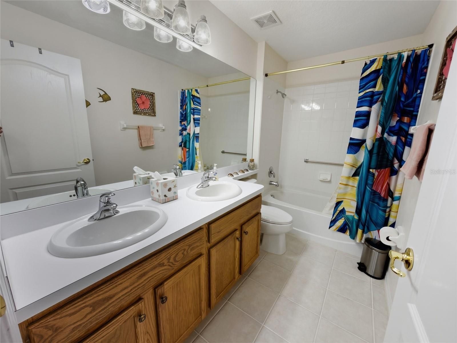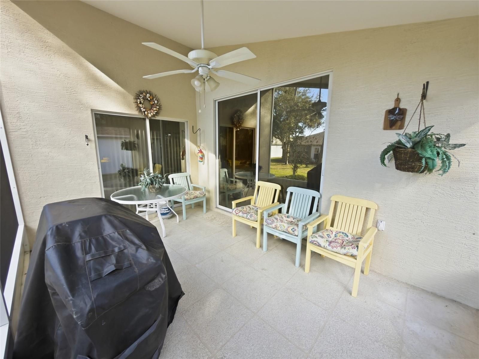 This stunning Aberdeen model on a quiet cul-de-sac offers 3 bedrooms, 2 bathrooms, and 2,057 square feet of beautifully designed living space. From the moment you enter, you’ll appreciate the thoughtful layout, plantation shutters throughout, and the seamless flow between the living, dining, and family rooms—perfect for both everyday comfort and entertaining. The centrally located kitchen is a standout, featuring solid wood cabinetry, Corian countertops, bright clean backsplash, island with bar seating, dinette area, closet pantry, and a built-in desk/dry bar. It opens directly to the family room and screened lanai, creating a light, airy space ideal for relaxing or hosting guests. The spacious primary suite is a true retreat, offering a private sitting nook with lanai access, a large walk-in closet with built-in shelving, and a luxurious en-suite bath with dual sinks, built-in vanity desk, garden tub, walk-in shower, linen closet, and private water closet. Two comfortable guest bedrooms share a dual-sink bath, providing excellent space for visitors. Additional features include a separate laundry room with cabinets and washer/dryer, plus a two-car garage with storage, cabinets, and an extra refrigerator. Select furnishings—including twin beds and dresser in one guest room, an electric fireplace, piano, and garage tools—may convey at no additional cost. Enjoy peace of mind with a newer roof (2019) and new AC (2024) with Bluetooth thermostat. Located in the gated, amenity-rich, and pet-friendly Heritage Pines community, residents enjoy an 18-hole championship golf course, clubhouse with restaurant and bar, fitness center, heated pool and spa, and courts for tennis, pickleball, and bocce, and so much more. HOA fees include cable, internet, lawn care, and irrigation for a truly low-maintenance lifestyle. Priced to sell and owner is offering to pay the $2,100 new resident buy-in. This is Florida living at its finest—schedule your private showing today.