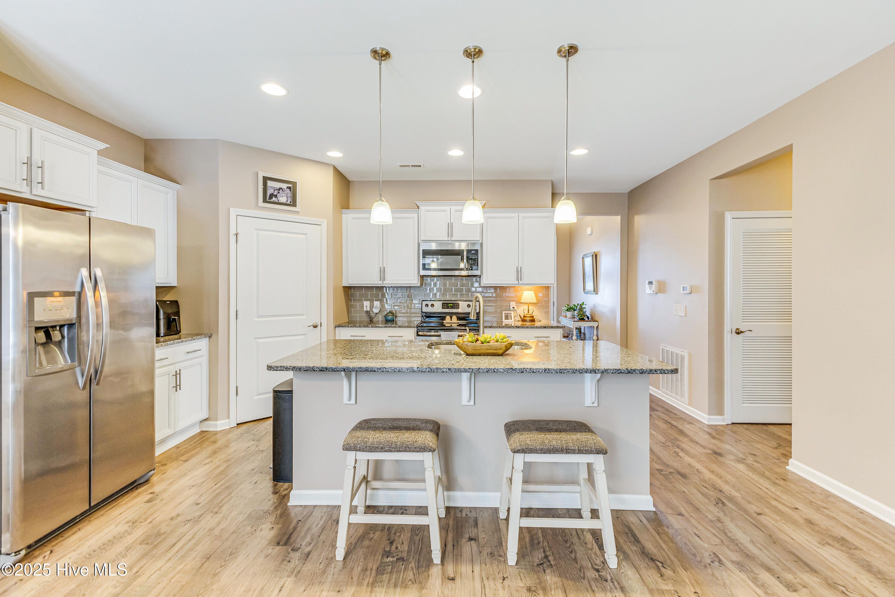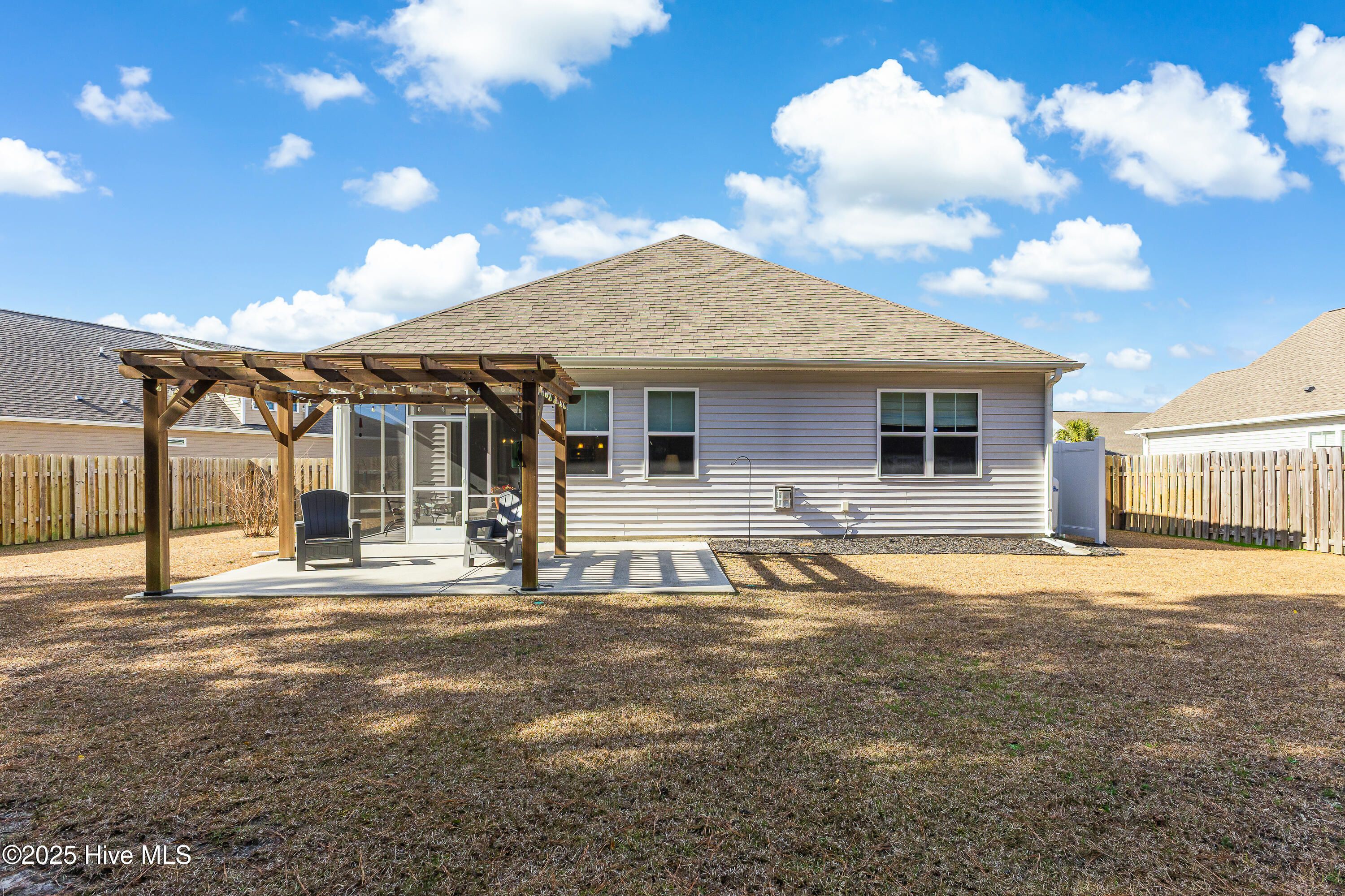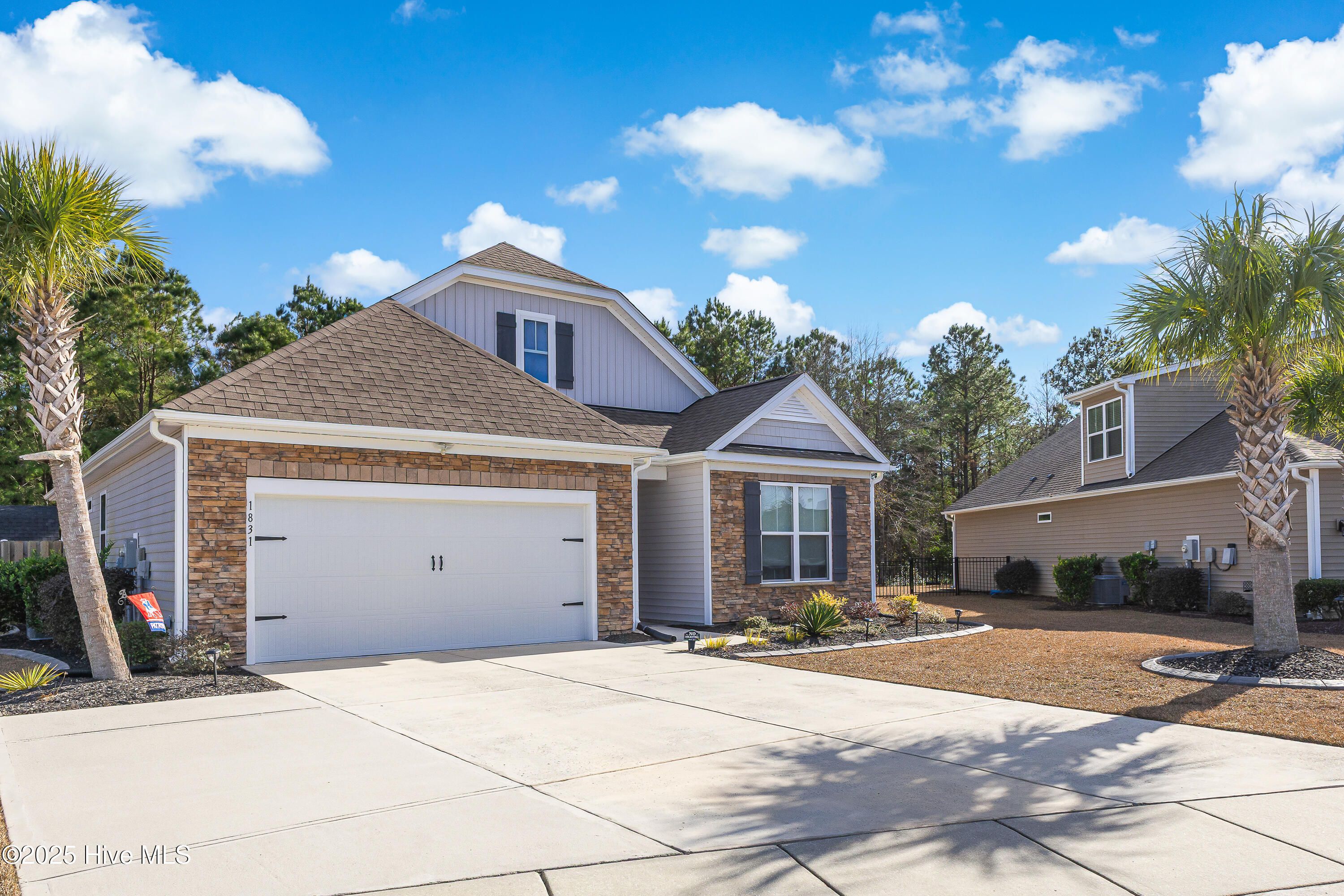 Welcome to 1831 Bards Drive, located in the desirable Freedom section of Avalon in Bolivia, Brunswick County, Southeastern North Carolina — where weekly lawn maintenance is included in your HOA dues and life feels just a little lighter. This home was purchased recently, lovingly improved, and meticulously maintained, making it one you can step into with true peace of mind. Major systems have been thoughtfully serviced, including the dryer vent, HVAC, fireplace, and irrigation system. You'll also find fresh paint throughout, new porch screening, a new garbage disposal, and a termite bond in place. Simply put — it's clean as a whistle. The exterior sets the tone with stacked stone accents, palm trees, fresh plantings and mulch, and crisp cement edging that keeps garden beds polished year-round. An oversized driveway offers generous parking. Inside, a bright entry leads to a front bedroom and full bath. High-end LVP flooring flows into the main living spaces, where the kitchen shines with an island, stainless steel appliances, granite countertops, backsplash, pantry, and an adjacent dining area bathed in natural light. The living room is cozy and tucked just beyond, featuring gas logs for easy ambiance. At the rear of the home, the spacious primary suite offers comfort and privacy, complete with a large bathroom featuring dual sinks, walk-in tiled shower, water closet, linen storage, and a walk-in closet. A third bedroom is privately situated, along with a laundry room and a garage outfitted with shelving and epoxy-coated floors. Out back is the true retreat — a screened-in porch, pergola-covered patio, and a shed with a garden bump-out, all within a fenced, tree-lined yard that feels peaceful and purposeful. This is a must-see home — and one that deserves a top spot on your 2026 priorities.