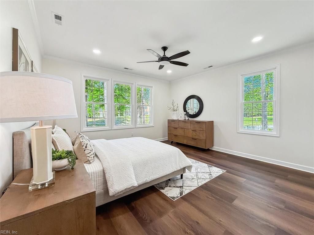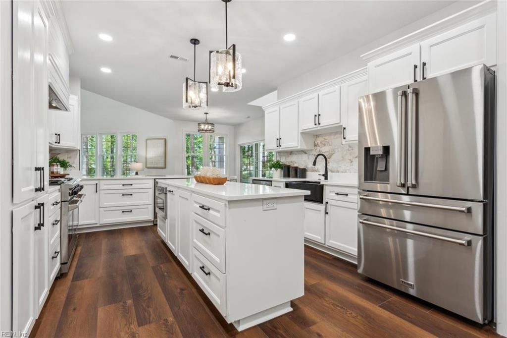 One level living on NEW CONSTRUCTION complete! Rare opportunity and great location & price on the Golf Course in Governors Land - Wythe Hamlet subdivision. Golf Course views of 2nd Hole/3rd Tee. This all-brick home has 3 Bedroom ensuites, an office/study, 2 gathering rooms (Den/Family Room) with 2 gas FP, cathedral ceilings, dining room, eat-in kitchen/morning room, pantry, and laundry room all on the main living floor. The primary suite has its own hallway, additional closets, expansive walk in closet and private bathroom. Gourmet open concept kitchen with professional THOR appliances will be the center of all gatherings. An additional room over the oversized garage(FROG) is perfect as a game room for your guests or 4th bedroom. Encapsulated crawl space and professionally landscaped with an irrigation system too! All you have to do is relax and enjoy your quiet morning coffee on the covered brick porch overlooking the golf course in Williamsburg’s premier golf & waterfront community.