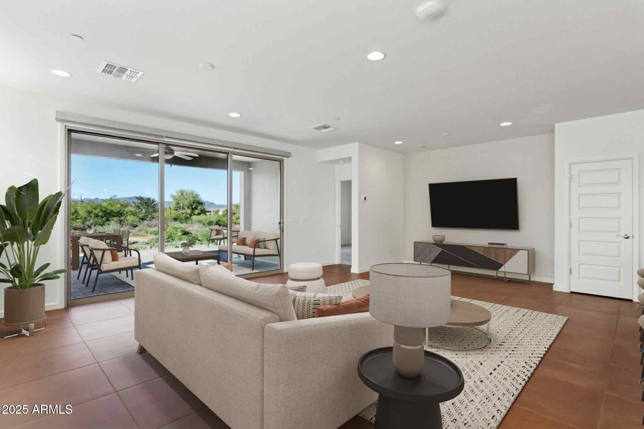 BREATHTAKING VIEW LOT + DESIGNER DETAILS + RESORT LIVING & LIFESTYLE - Resort Collection Home situated on a captivating lot with unobstructed sweeping views of the Tonto National Forest, 14th hole and majestic Four Peaks! Loaded with over $100,000+ in Design Upgrades, this 2023 Evia Plan offering 2/bedrooms + flex office, 2/baths is essentially new offering a neutral color palette combing sophisticated style and current design trends. Stunning upon entry, the great room sliding wall of glass sets the tone for seamless AZ indoor/outdoor living. Enjoy a morning sunrise or evening sunset with nature as your backdrop on your extended paver patio creating an effortless connection with the stunning outdoors and indoor elegance. Sophistication meets innovation in the chef's kitchen..... featuring waterfall-edge Quartz countertops, a dramatic center island, custom tile cooktop backsplash, white shaker cabinetry, premium GE Monogram appliances, thoughtfully equipped WiFi-enabled technology for effortless hosting and everyday ease. The primary suite offers a private sanctuary, complete with a custom sliding barn door, spa-inspired bath with a beautifully tiled shower, and a tailored walk-in closet. **Climate controlled 2-Car garage with epoxy flooring and dedicated EV and golf cart charging** Explore the documents tab for a complete list of upgrades and features, and see how every detail contributes to an extraordinary everyday living experience! Living at Trilogy at Verde River offers resort-style amenities just steps from home. Tee off on the Tom Lehman-designed 18-hole golf course, take a refreshing swim in the heated resort or lap pools, or enjoy a match on the tennis, pickleball, or bocce courts. The state-of-the-art Afterburn Fitness Center and Alvea Spa provide opportunities for wellness, while miles of hiking and biking trails wind through the adjacent Tonto National Forest, inviting adventure and connection with nature. For dining and social gatherings, residents can savor casual poolside meals at Eddy's or indulge in gourmet cuisine at the award-winning Needle Rock Kitchen & Tap.