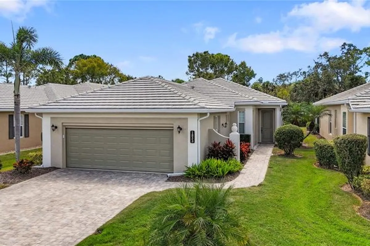 Discover easy, maintenance-free living where everything is handled for you, allowing more time to enjoy the Florida lifestyle. With condominium ownership, exterior insurance, wind coverage, roof reserves, exterior painting, lawn care, pest and termite protection, and even discounted high-speed internet are all included. The community features two pools, a resident-run clubhouse, and full community management, creating a warm and relaxed atmosphere. There are no CDD fees, and optional membership at Plantation Golf & Country Club opens the door to championship golf, tennis, pickleball, fitness, dining, and a vibrant social scene. Inside, this impeccably cared-for villa offers two bedrooms, two-and-a-half baths, a den, and a spacious great room. The kitchen is designed for both everyday living and entertaining, showcasing custom cabinetry with glass inserts, granite countertops, under-cabinet lighting, a center island, updated appliances, custom pantry shelving, and a charming breakfast nook with built-ins and a wine cooler. The primary suite is a true retreat with bay windows overlooking the preserve, dual walk-in closets with custom organizers, and a spa-like bathroom with dual sinks and a walk-in shower featuring bench seating. Guests will appreciate their own private en-suite complete with a custom closet and walk-in shower. The large den provides flexible space for work or hobbies and includes an impressive built-in desk with abundant storage. The extended screened lanai invites you to unwind with tranquil preserve views, where a stretch of green space leads to classic Old Florida scenery. This outdoor oasis offers a generous covered area with a ceiling fan, TV outlet, and comfortable furnishings—all included—making it perfect for morning coffee, quiet evenings, or hosting friends. Additional features elevate comfort and peace of mind. The extended garage includes a motorized screen door and a climate-controlled storage room with built-in shelving. The home is fully outfitted for storm protection with impact windows, mechanical roll-down shutters on the lanai and front entry, and a whole-house surge protector. A Kinetico water treatment system adds efficiency, while the laundry room offers a utility sink and Speed Queen washer and dryer. Plantation shutters, a Verdiglide shade on the sliders, crown molding, and thoughtful architectural details enhance the home’s style and function. With extensive upgrades, full storm protection, and maintenance-free living, this villa is ideally located just minutes from Gulf beaches, shopping, dining, Wellen Park Downtown, the Atlanta Braves Spring Training Stadium, and I-75. This beautifully finished home truly captures the best of Florida living.