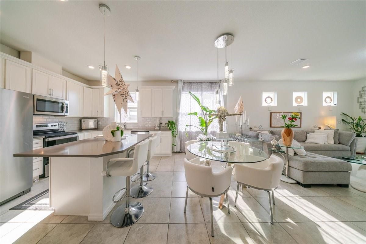 Welcome home to this beautifully maintained villa in Tohoqua Reserve, one of Kissimmee's most sought-after, amenity-rich 55+ gated communities. Situated on an oversized lot with a fenced yard, this home offers the perfect blend of comfort, privacy, and low-maintenance living-ideal for full-time residents or seasonal enjoyment. Step inside to a bright, open-concept design filled with natural light. The modern kitchen seamlessly flows into the dining and living areas and features quartz countertops, stainless steel appliances, and sleek contemporary cabinetry -perfect for entertaining or everyday living. The spit-bedroom layout provides added privacy, with a spacious primary suite featuring a large walk-in closet and a spa-inspired en-suite bath complete with dual sinks and a walk-in shower. Thoughtful upgrades throughout include 10-foot ceilings, 8-foot doors, upgraded lighting, designer paint, and epoxy-coated garage floors. Unwind in the evenings on your covered lanai, ideal for enjoying Florida's beautiful weather year-round. Residents benefit from gated entry for added peace of mind, and the HOA covers roofing and exterior painting for truly worry-free living Tohoqua Reserve offers resort-style amenities including a stunning clubhouse, community pool, state-of-the-art fitness center, tennis courts, park, playground, and beautifully maintained common areas. Conveniently located near Located on an oversized, fenced lot, this home offers low-maintenance living ideal for full-time or sea lifestyle you've been looking for.
