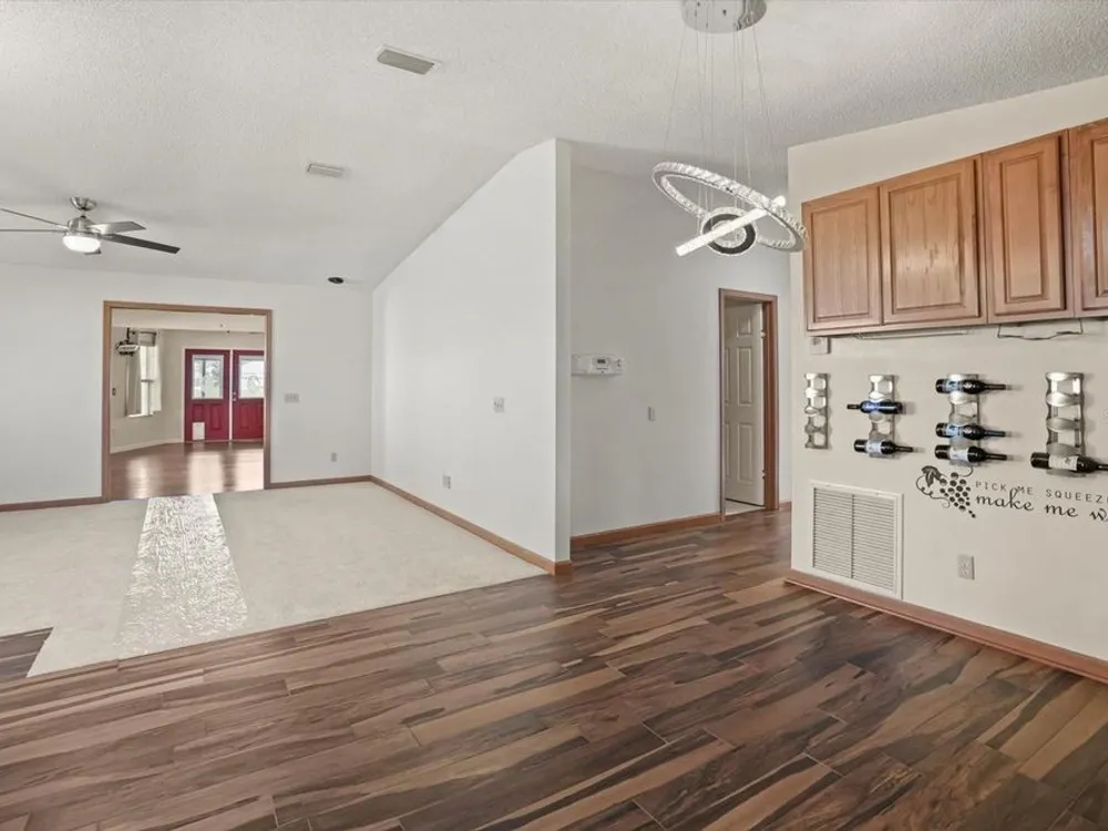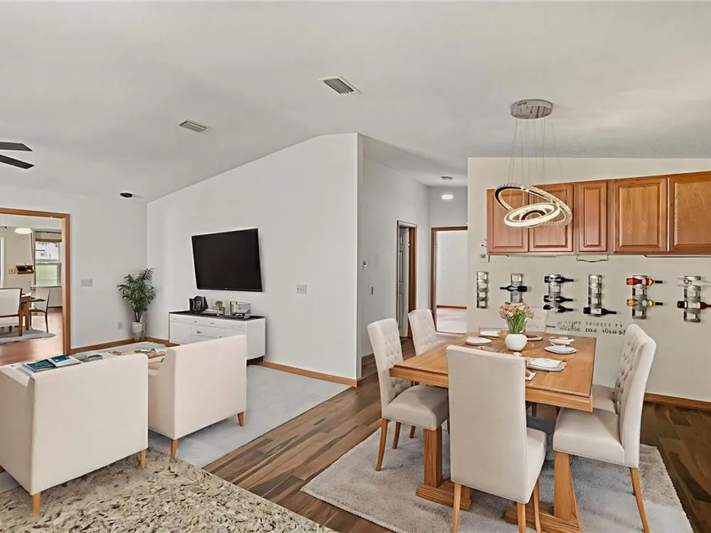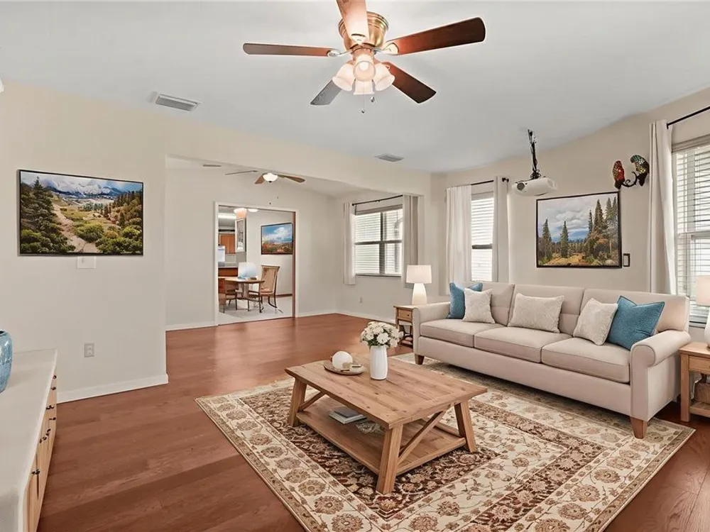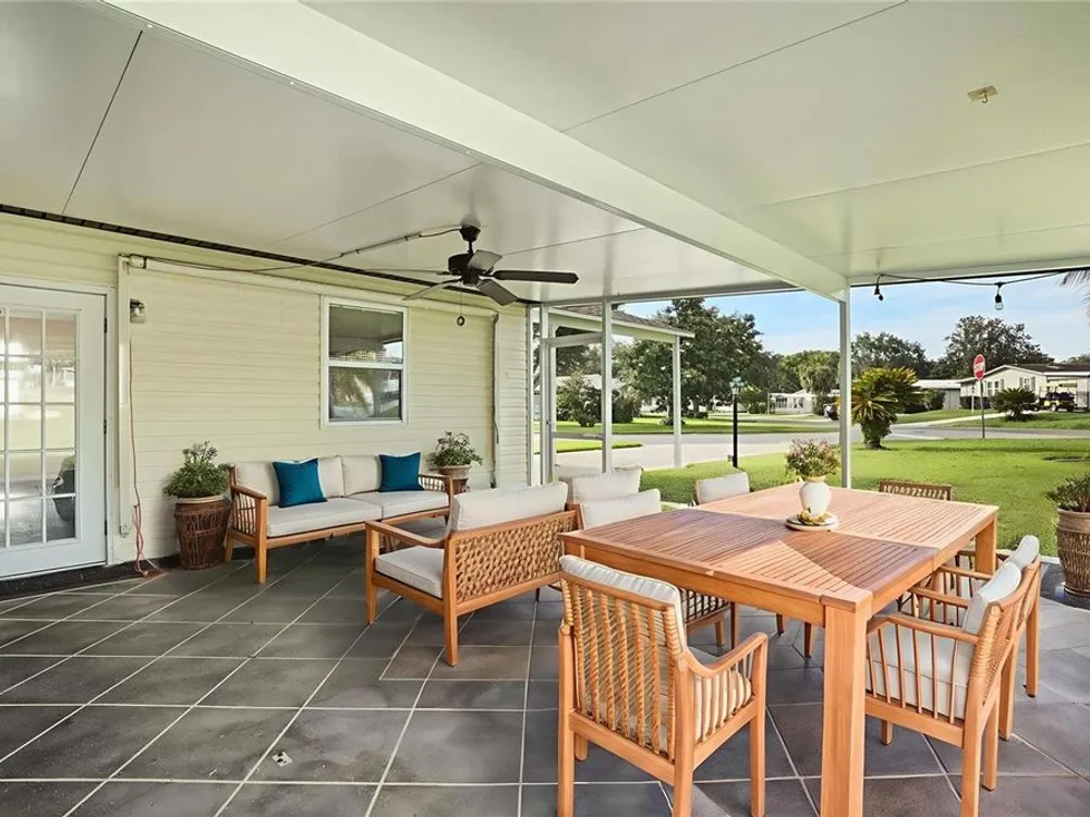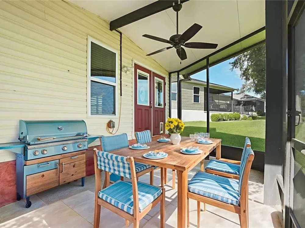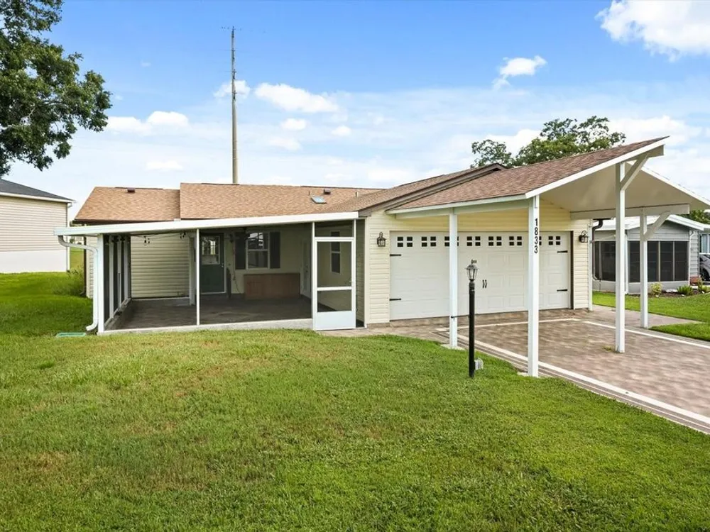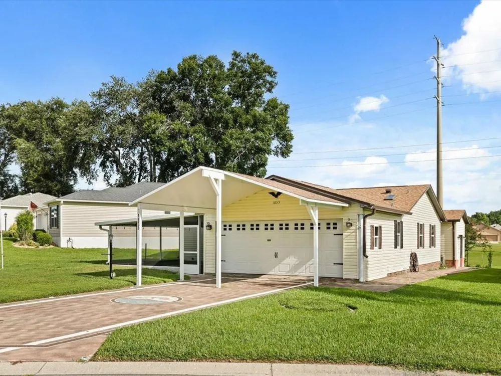 One or more photo(s) has been virtually staged. NO BOND!!! This one-of-a-kind, site-built home in the heart of The Villages offers a rare combination of space, updates, and value, priced lower than any other three-bedroom, three-full-bath home in the community. Enjoy parking for up to six vehicles, including four under cover and two uncovered, plus a side-entry golf cart garage. Relax in two screened lanais – a welcoming front lanai and a rear lanai with a seasonal water view. Inside, you’ll find quartz countertops, stainless steel appliances, wood-look porcelain tile, wood laminate flooring, and new carpet in select areas. The guest bedroom features a Murphy Bed conveniently located next to the guest bathroom, while the main master suite boasts a newly remodeled shower. The second master suite offers its own sitting room and full bath, making it ideal for an in-law suite or private retreat. The spacious living room flows into a great room complete with a 75” TV, projector, and screen for the ultimate home movie experience. Updates include a new roof in September 2024, a new hot water heater in 2022, and a renovation in 2017–2018 with newer A/C, siding, and energy-efficient windows. Located just a three-minute golf cart ride from the Orange Blossom Country Club with its resort-style pool and golf courses, and near the Paradise Recreation Center – currently being rebuilt with exciting amenities including a resort-style pool, expanded Mark Twain Library, fire pit, and shuffleboard courts – this home also puts you just minutes from Spanish Springs Town Square. Enjoy nightly entertainment, dining, and events, as well as some of the very best shopping in all of The Villages, with grocery stores, national retailers, and specialty shops just a short golf cart ride away. This prime location truly combines the best of convenience, lifestyle, and value.