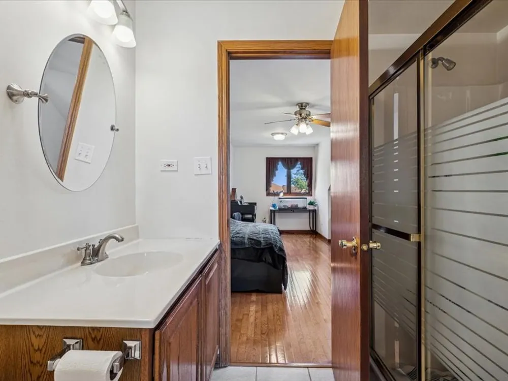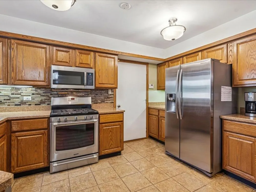This townhome in THE PINES, 55 and older community is just waiting for you. A very spacious townhome boasts 4 bedrooms, and 3 baths, one on each level for your convenience. Beautiful hardwood flooring in l.r., d.r. and 2nd b.r on first floor, and the vaulted ceiling adds to the spaciousness of this fine home. In the kitchen you will find all stainless appliances and a breakfast bar for your meals. The living room with corner gas fireplace and dining room combo offers that continuous flow, great for entertaining. Enjoy your morning coffee or your evening beverage in the screened 3 seasons room right off the living room. Stairs will not be a problem, the primary bedroom suite with full bath is located on the main level ad joining the 2nd bedroom there as well. Upstairs you will find the 3rd bedroom with full bath, skylight and loft for extra space and light. Need more, the full finished basement offers the 4th bedroom, full bath, family room, possible kitchen/game area, laundry and plenty of additional storage, related living maybe? Right off the kitchen is the 2 car attached garage making it convenient with the snow and rain. This home is located near the Metra, express way, shopping, dining and Harmony Square in downtown Tinley Park. Low HOA too. A real pleasure to show and a great opportunity. Make this one yours.