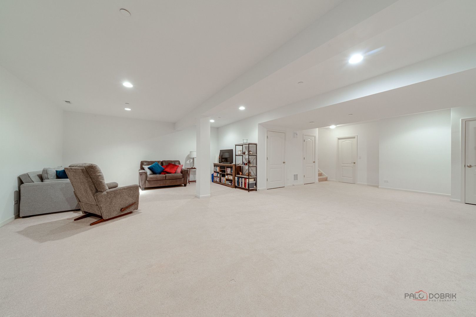 Remarkable and spacious maintenance free living in Victoria Park, a premier 55+ townhome community located in NW Libertyville. Inside the front door you will be greeted by an inviting foyer highlighted by beautiful hardwood flooring that leads the way to the grand two-story living/dining room combo illuminated with natural light. The updated kitchen with breakfast area has open views to the family room and fireplace. The cozy family room basks in natural light and warmth, courtesy of large windows and a charming gas fireplace, perfect for relaxing evenings at home. The adjacent kitchen is a chef's delight, featuring ample cabinets topped with crown molding, undercabinet lighting, quality stainless steel appliances, including a new refrigerator and dishwasher, and a generous walk-in pantry, providing all the storage you will need for your kitchen essentials. New homeowners can enjoy casual meals in the sunlit breakfast area, which offers sliding door access to your private patio. This spot is perfect for enjoying the fresh air or for entertaining guests at your next summer BBQ. A large powder room completes the main level. Upstairs you will find all new carpet and plenty of space for everyone to call their own. The primary suite offers a high vaulted ceiling, two large walk-in closets, and a private bath with a dual sink vanity, a large whirlpool tub, and a separate shower. The conveniently located laundry room includes a utility sink and new washer and dryer. A full hall bathroom, and two additional bedrooms with large closets complete the second level. The hall bathroom has a recently completed walk-in shower! In the finished and carpeted basement, you'll find plenty of additional living area with storage and rough-in plumbing for the addition of a full bathroom. This is a large versatile space that can adapt to your lifestyle; be it as a home theater, fitness area, second family room or hobby room. A new water heater with on-demand hot water pump has been installed. There is a large attached two car garage with remote opener. New garage door spring has recently been installed. This wonderful neighborhood is conveniently located minutes from Independence Grove recreational area and bike path, local shopping, restaurants and conveniences. The neighborhood community center includes many scheduled activities and has a gym available to all residents. There is also dedicated walking path around the community. 55 years of age or older Community-occupancy by persons under age 21 is prohibited.