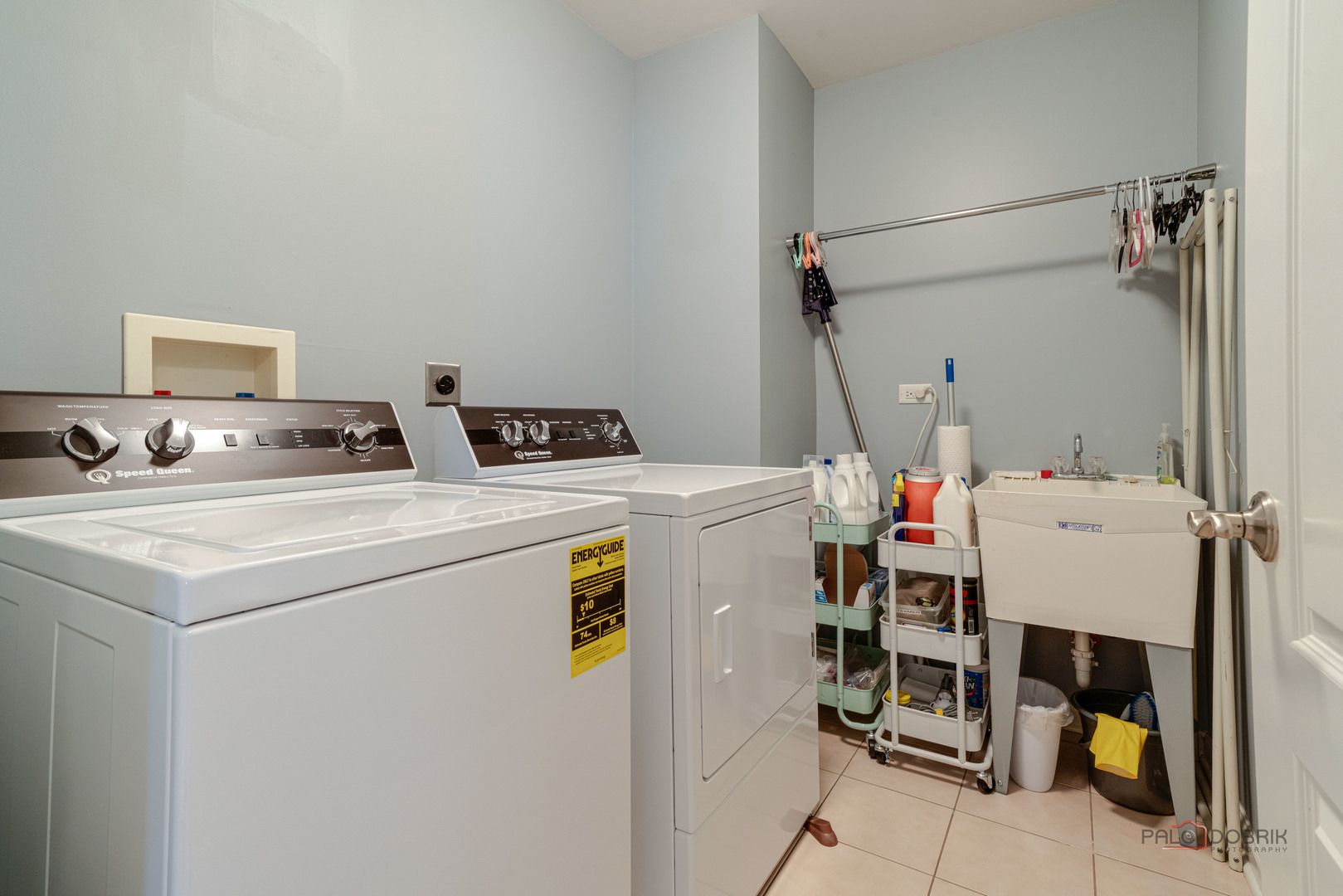 - Double Oven, Range, Microwave, Dishwasher, Refrigerator, Washer, Dryer, Disposal, Stainless Steel Appliance(s)