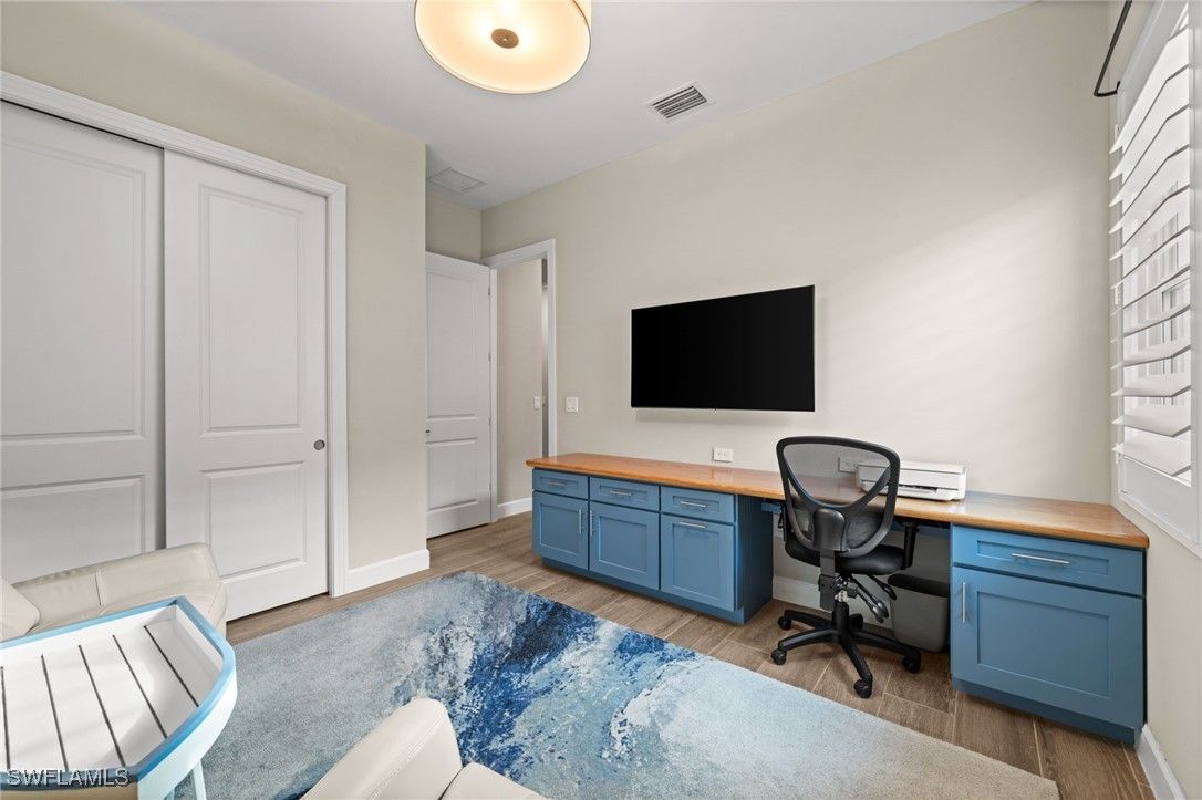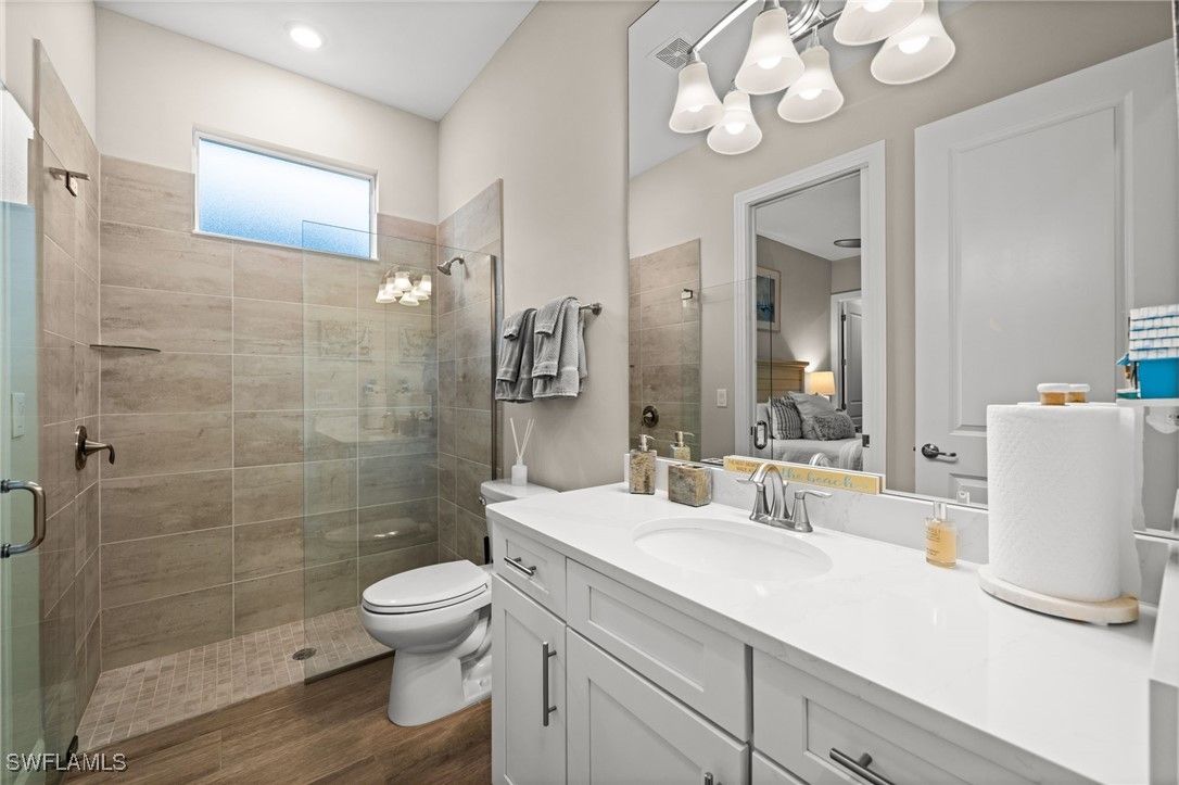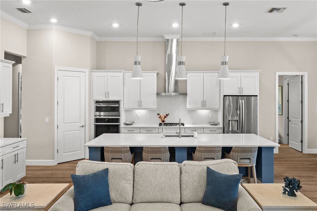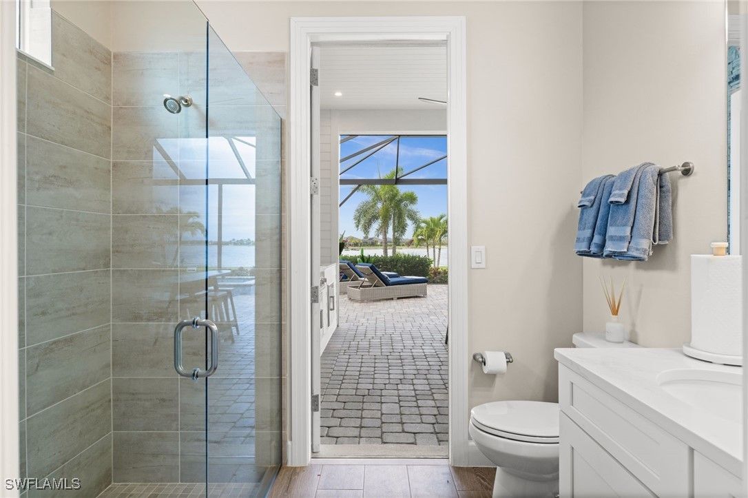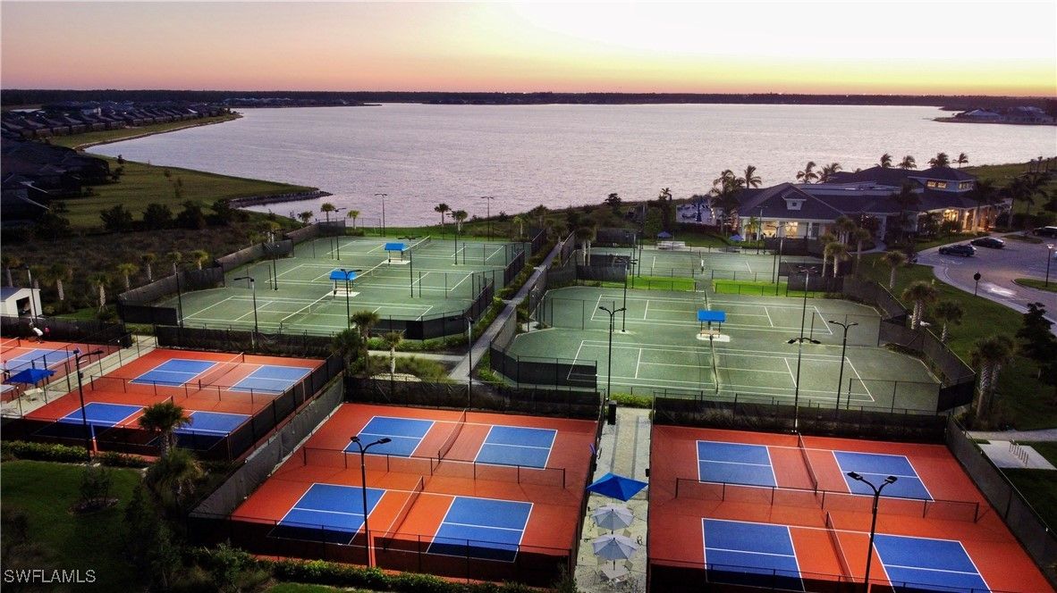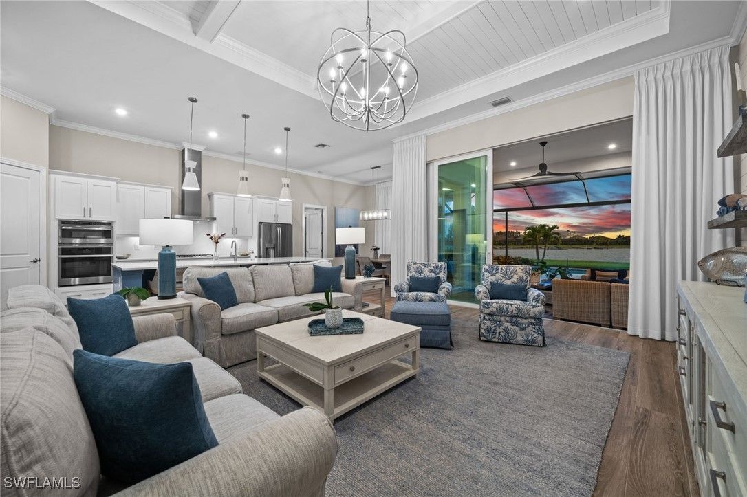 Located in the Luxury Waterfront community of WildBlue, this home has a perfect blend of coastal living, luxury comfort, and impressive energy efficiency! Designed to embrace its stunning lakefront setting, it captures the relaxed, boatable lifestyle that draws so many to SW Florida. Offering over 2,900 sqft, 4 bedrooms, 3 full bathrooms with thoughtfully curated décor makes this home move-in ready! Custom detailed woodwork, soaring 12-ft ceilings, and expansive 10-ft impact-rated windows and door walls create a light-filled interior that beautifully frames the water. The open-concept design is complemented by plank tile flooring throughout and a Gourmet Kitchen featuring an oversized island, quartz countertops, stainless steel appliances, natural gas, crown molding, elegant window treatments, and upgraded fixtures. Solar electricity enhances energy efficiency with an estimated $3,000 in annual savings! The outdoor living area is an entertainer’s dream, featuring a sparkling pool and spa, picture-frame lanai screen, oversized pool deck, built-in outdoor kitchenette, and custom tongue-and-groove ceiling, upgraded fans and lighting, also equipped with Storm Smart hurricane protection for added peace of mind. A truly unique highlight is the custom mural by DeMott Design, an artistic tribute to Andy Rossi Lane on Captiva Island and the iconic Mucky Duck, adding a distinctive island-inspired ambiance to the billiards room! Additional highlights include a well-appointed garage with epoxy flooring, custom cabinetry, overhead storage racks, and a 22KW whole-house Generac generator. Enjoy world-class resort amenities including boating, tennis, pickleball, fitness, indoor/outdoor dining and spa within the prestigious, gated WildBlue Community. Short drives to shopping, dining, RSW airport, beaches and I-75 make this location ideal for full and part-time homeowners!