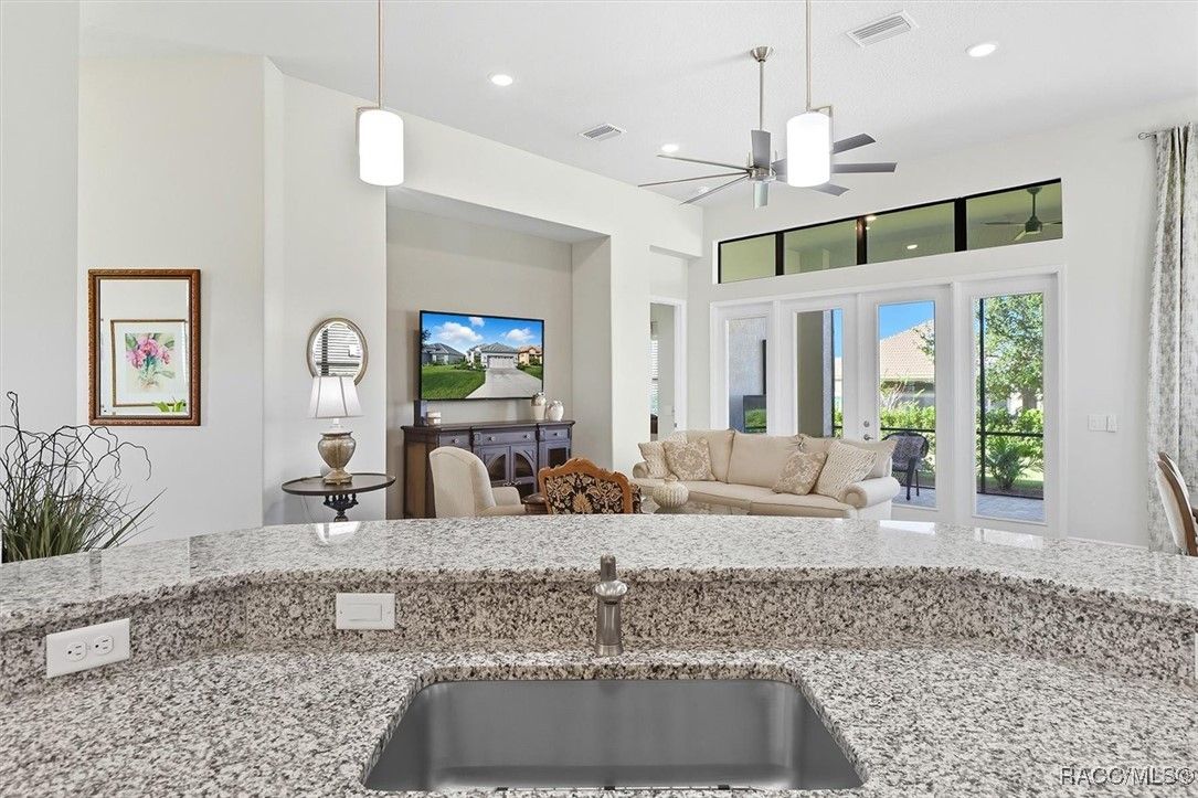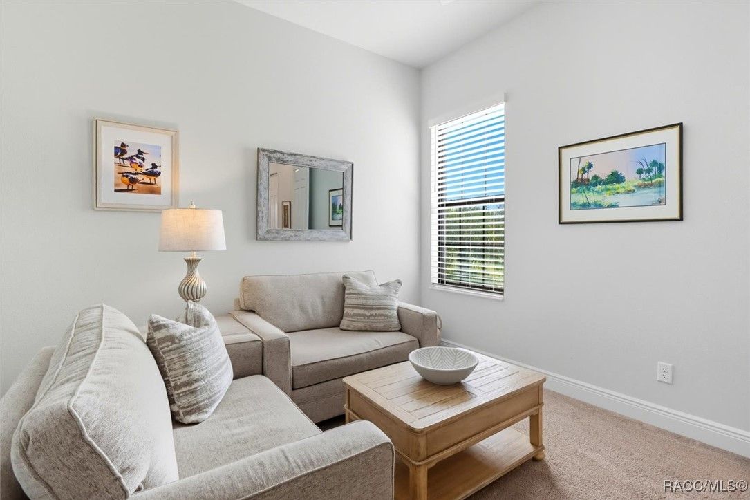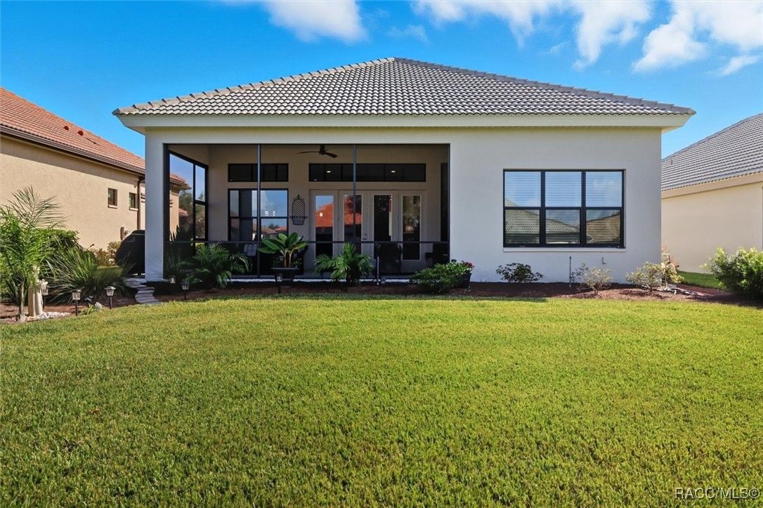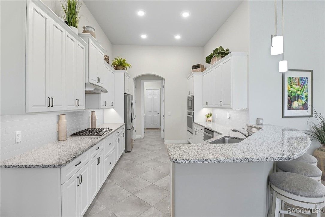Welcome to this exquisite custom-built villa in Terra Vista’s sought-after Westford Villas, built in 2023 and set on a meticulously landscaped lot. This home is impeccably maintained. Offering 1,764 square feet of refined living space, the residence blends warmth with modern elegance through its thoughtfully upgraded finishes. Step into a light-filled interior with soaring ceilings and a spacious great room enhanced by recessed lighting, transom windows and French doors that open to a tranquil screened-in lanai. The gourmet kitchen is a showpiece, featuring a breakfast bar, pendant lighting, gas cooktop, upgraded granite countertops, custom cabinetry and backsplash with under-mount lighting, and premium stainless appliances. Entertaining family and friends over the holidays will be effortless in these spaces. The primary suite exudes relaxation and comfort with dual walk-in closets, water closet, dual sinks and oversized walk-in shower. The split floor plan ensures privacy and comfort for guests with a nicely sized guest bedroom, while the versatile office or den can easily serve as a third bedroom or bonus space for hobbies. Inside laundry room with custom cabinetry and sink for your convenience. Outside, enjoy the Florida lifestyle on your lanai surrounded by lush greenery and in-ground irrigation that keeps you landscaping vibrant and thriving. This Home is "Carefree" allowing time to enjoy Recreational Amenities & the Social Membership of the Citrus Hills Golf & Country Club, featuring World Class fitness/spa and pools, Restaurants/Tiki Bar, Active Social Entertainment, Golf, Tennis, Pickle Ball, Volleyball, Dog Park & Bocce Ball. Best of all, you’ll be less than 4 miles from the Shoppes at Black Diamond, including Target, Texas Roadhouse, Aldi & Hobby Lobby. Explore downtown Inverness, just a stone’s throw away or you can venture to downtown Crystal River for waterfront dining. Enjoy world class fishing, boating, diving, kayaking, scalloping and swim with our world-famous manatees! And if you’re jet-setting, Tampa International Airport is about an hour away. Don’t let this opportunity slip away! Call today and make this Florida home your own! (ALSO ON STELLAR: OM710899)