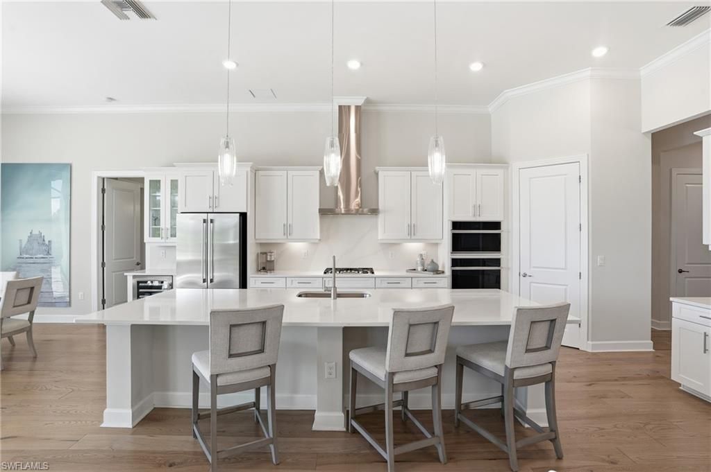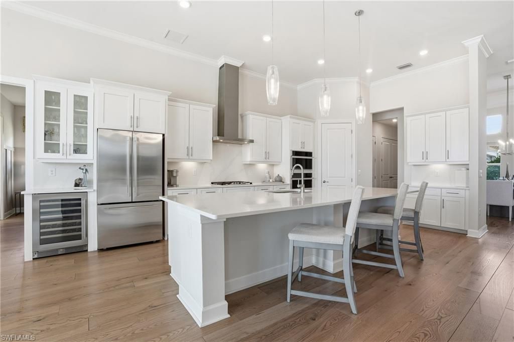 Welcome to 18396 Wild Blue Blvd - the ultimate in luxury living. This stunning Iris floor plan, built by WCI, is one of the most sought-after layouts in the incredible boating community of Wild Blue. Every detail of this residence was meticulously designed in collaboration with Diana Hall Design, showcasing elevated finishes, thoughtful customization, and timeless sophistication throughout. Positioned on an oversized lot with southern exposure, the home captures beautiful canal views backed by natural preserve, offering privacy and an exceptional indoor–outdoor living experience. The open-concept layout is bright, inviting, and filled with designer enhancements. This home is loaded with premium upgrades, including, Whole House Water Filtration System Home Generator, Whole House Impact Windows and Doors, Built-in Wine Refrigerator, Sonos Indoor/Outdoor Sound System, Calcutta Gold Quartz Countertops, Custom Trim Carpentry Throughout and much more! Every finish was selected to provide beauty, comfort, and peace of mind. Furnishings are negotiable, allowing for an effortless transition for the new owner. Located within Wild Blue, residents enjoy world-class amenities including a marina, resort pools, lakefront dining, fitness and spa facilities, tennis, pickleball, boating, and a vibrant social lifestyle. Luxury, design, and location this Iris floor plan truly has it all.