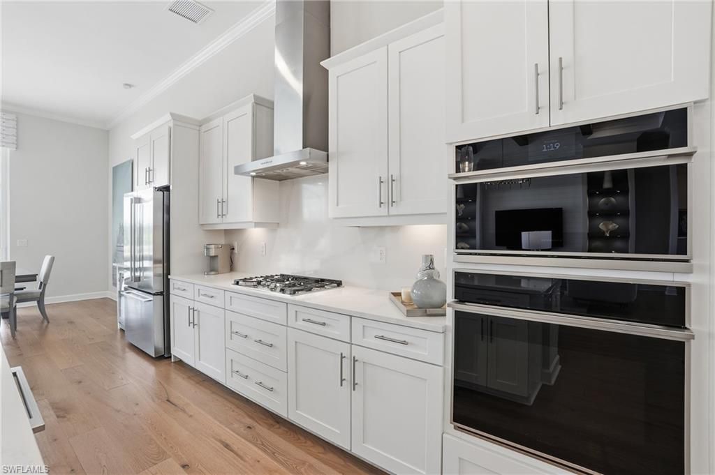 - Electric Garage Door, Gas Cooktop, Dishwasher, Dryer, Microwave, Refrigerator, Smoke Detector, Built-In Oven, Washer, Wine Cooler