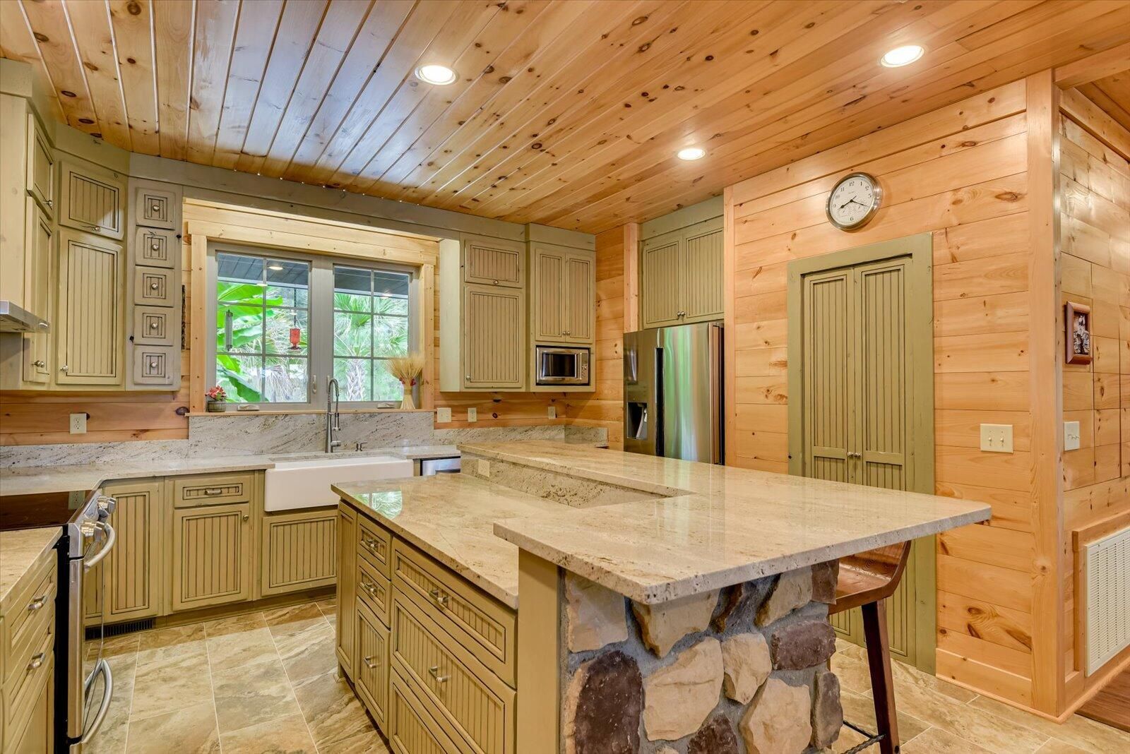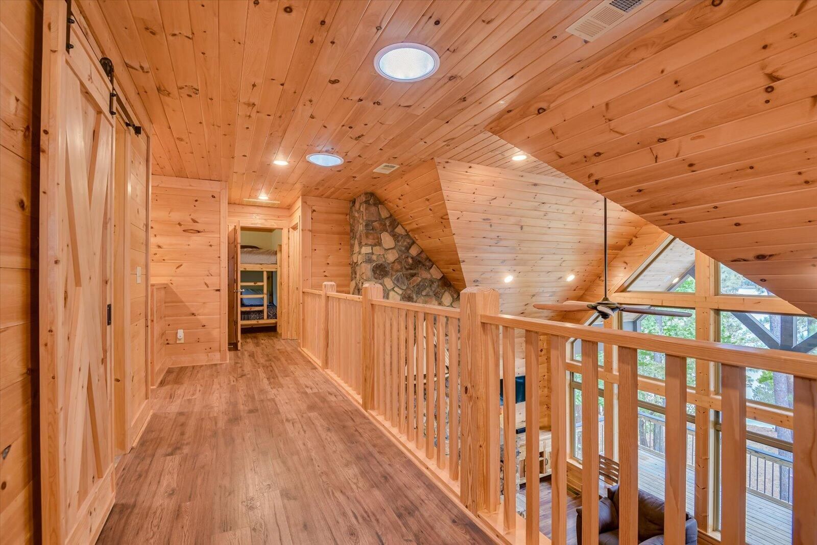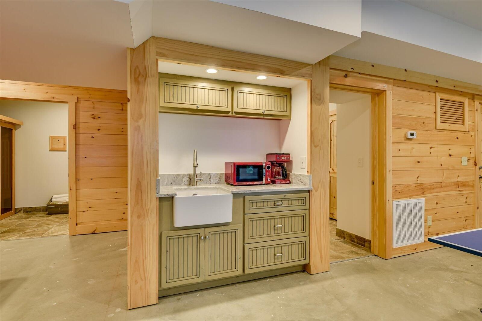 This LAKEFRONT RETREAT, w/ a SPECTACULAR VIEW and BEACH AREA comes FULLY FURNISHED, JUST BRING YOUR TOOTHBRUSH AND CLOTHES, 5 bedrooms, 4 baths, and a study (or 6 bedrooms), 3 car garage with one bay sized for an RV or Pontoon Boat, Sauna Room, Pool Table, Ping Pong Table, pull down Projection Screen, wet bar, front and back porches, plus a main level deck. Each room is unique, some with built-in features such as dresser drawers inset into the walls, kid's play closet, built-in loft and bunk style beds, and custom made furniture. Even the roof lines add interest to each room, with sunlight reflecting off of every angle and lighting fixtures spreading light to every corner. Beautiful tile and wood floors are found throughout this home. Other features include: •Primary suite comes with a custom built family size bed (or two queen beds together), custom dresser and chest of drawers and walk in closet. • Primary bathroom has heated floor & accessible Roman shower with rain style and wand shower heads, combination toilet/bidet, an extra long double vanity and a tub. • Family Room has floor-to-ceiling, wood burning, stone fireplace and loft area, allowing heat to help warm the upstairs, as well as into the Primary Suite. The design allows for continuous overnight operation. • A built-in bar is discreetly hidden in the living room wall. • All electric kitchen has granite counter tops, an L-shaped center island that matches the look of the stone fireplace, w/ counter height wood stools along one side, a walk-in pantry, lots of storage, discreet nook under the island for trash, externally exhausted range hood and outlets in the island as well as in the pantry. • All stainless appliances, microwave on elevated shelf and a farm style sink handle all of your food prep needs. • Induction top electric range in kitchen includes a set of pots for proper use of stove. • Dining room has custom, built in benches on two sides of a huge, expandable dining table, with wood chairs lining the other two sides. • Mudroom off of Kitchen has lots of storage for outdoor wear and sports accessories. • Laundry room has custom cabinetry with washer, dryer, sink and 2nd refrigerator. There is also an exit to the rear deck which has keyless entry pad. • Three of the 5 bedrooms include walk-in closets. • Lower level was finished in February 2024. A large recreation room. One end has a stone, wood burning fireplace, a projector with a roll down screen and pre-wired speakers. The other end houses a pool table and ping pong table (both convey) and the center includes a built-in wet-bar. • Lower level bedroom has built in loft bed and custom armoire. • Lower level bathroom includes a large tiled Roman shower, a sauna and sauna room and built in linen closet. • The garage includes a wall mounted vacuum system. • Front porch can be accessed from circular drive or from parking area in front of garage. There is also an installed bench swing. • Lower level concrete patio is covered by deck above with stair access and access from lower level. Off to the side, is an outdoor shower for use when returning from the lakeside beach. • Main level deck is under cover, with beautiful wood ceilings and boasts beautiful views of the lake and beach area • A large storage room for kayaks and water toy storage is accessible from the lower patio. Kayaks Convey. • There is a large unfinished room over the garage, with electric wiring, light and HVAC hook-up. Room is accessed from the upper level hallway. • Home has three independent HVAC units (one unit for each floor) • Outdoor security cameras also Convey that can be linked to your phone. • A dock permit is in place. NOTE: ''With an Accepted Offer, Seller will place an order to have a Boat Slip built at no cost to the Buyer, after Closing.'' All appliances are original (2017). HVAC on Main Level replaced in 2022 All appliances, furnishings, kayaks, everything in the home CONVEY!