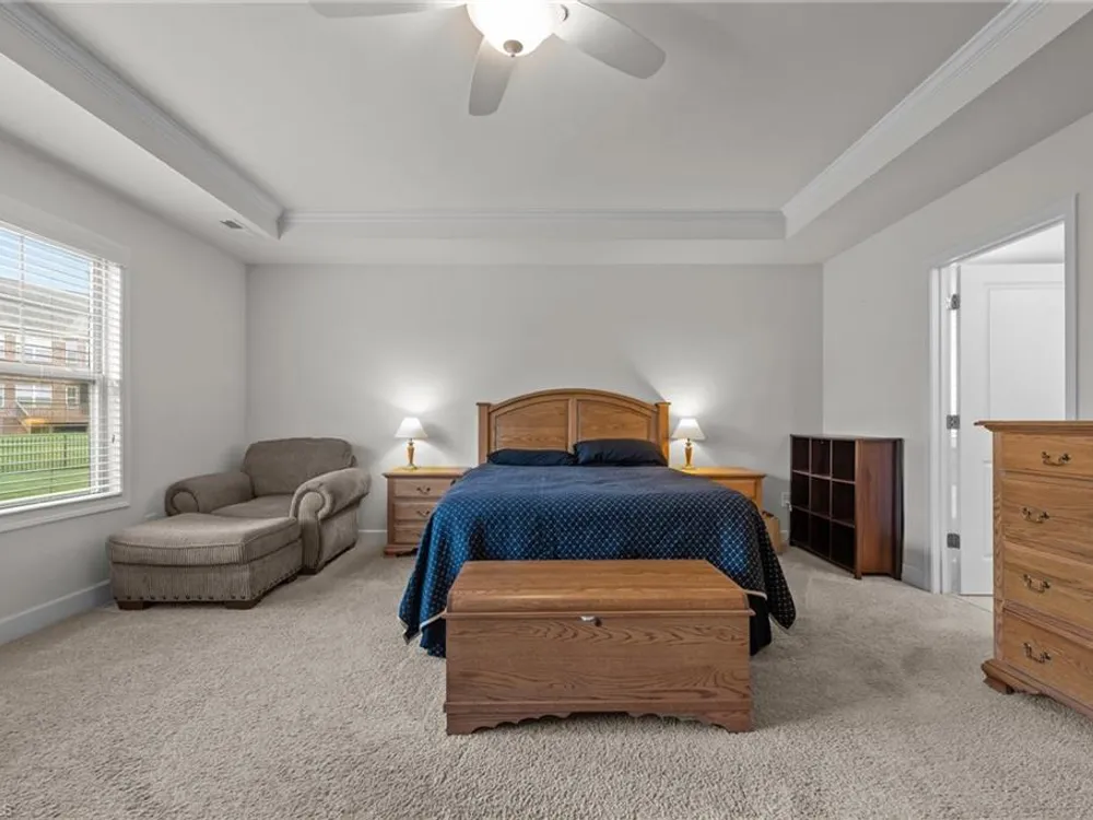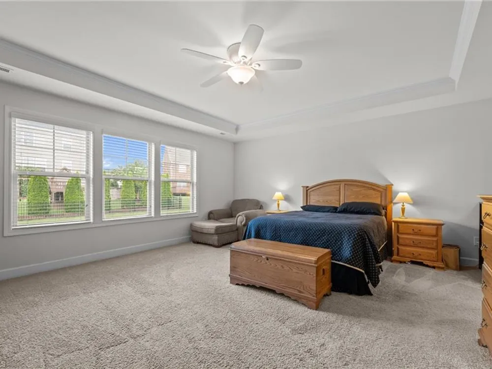- Ceiling Fan(s), Soaking Tub, Kitchen Island, Pantry, Separate Shower