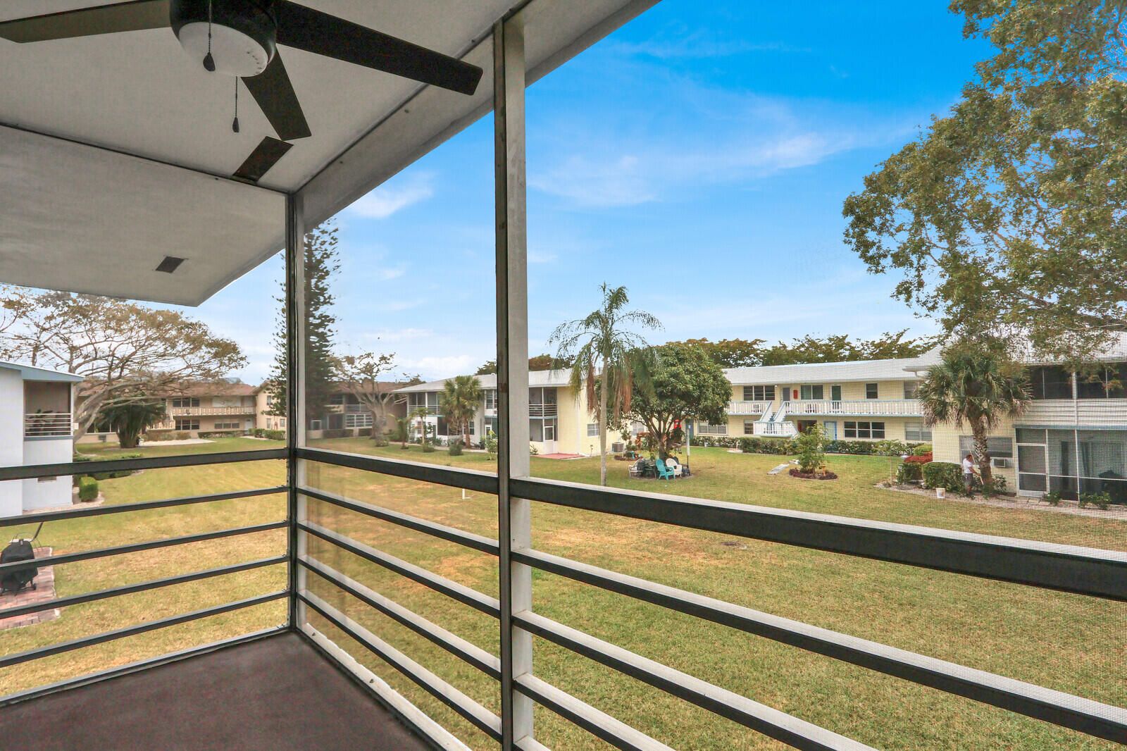 Welcome to easy Florida living in this sun-filled 2-bedroom corner condo in Norwich H at Century Village. You'll love the granite countertops, new ceiling fans, and the added savings and security of impact windows, front door and sliders installed in 2025. The home is clean, updated, and truly move-in ready, with a screened patio off the bedrooms for enjoying the breeze. The building shines with updated cement work, fresh paint, and a beautiful courtyard setting. Plus, there's a working laundry room close by for convenience. A/C maintained every six months for peace of mind. Pet friendly (up to 25 lbs.). Rentals permitted after 3 years of ownership. COA is $464.32 & POA is $185.29. *Some photos may be Virtual staged.