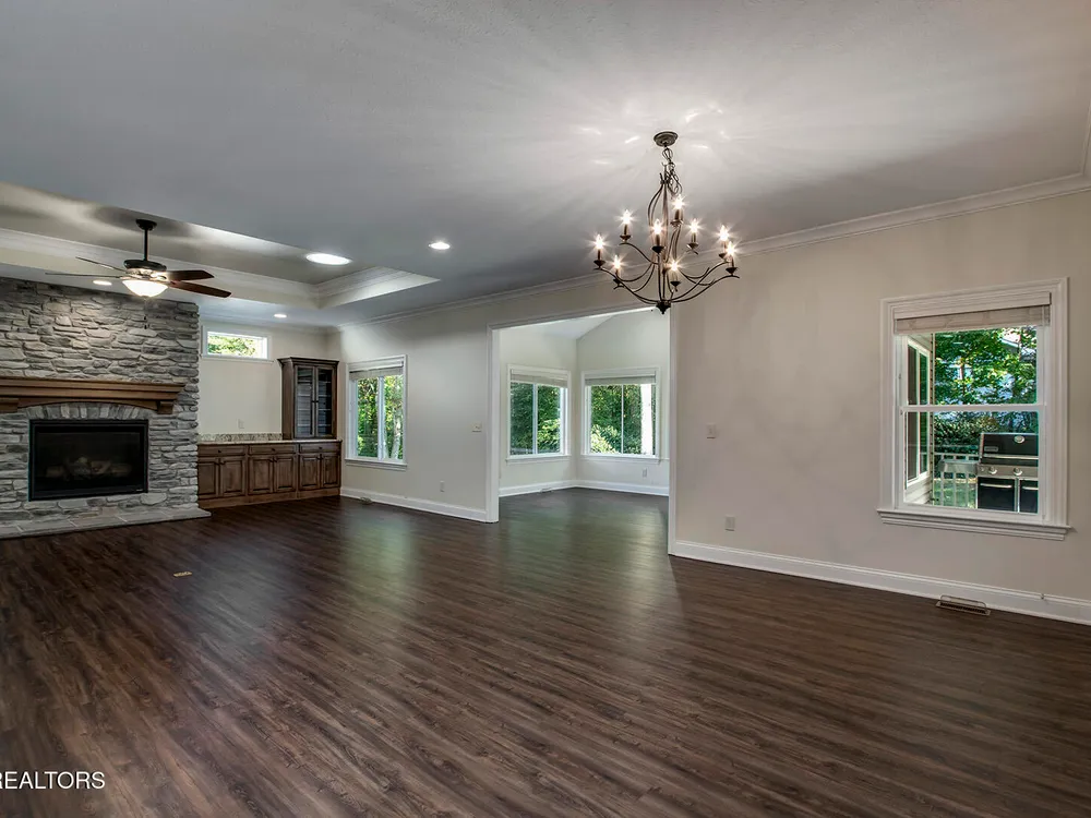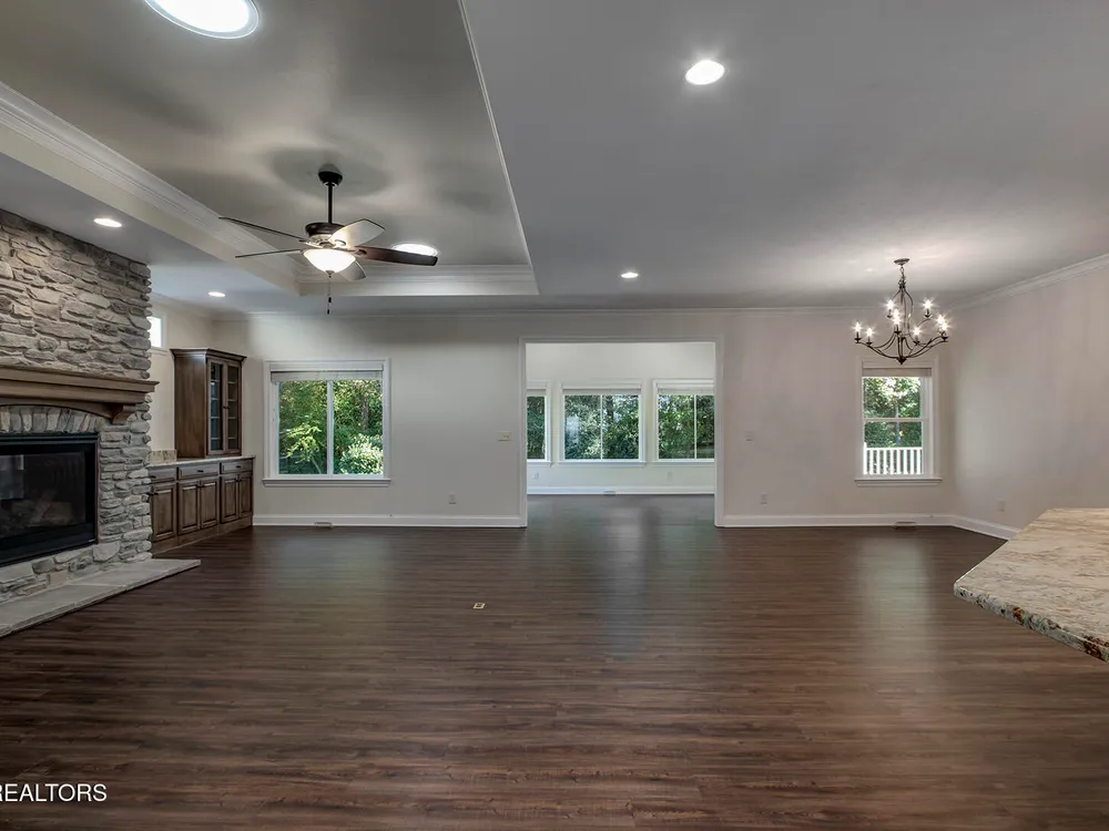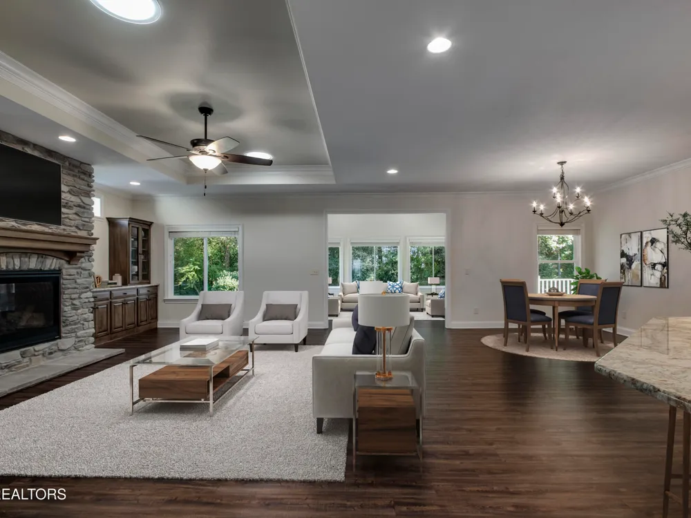 This traditional single-story home offers an open-concept, split floor plan designed for comfort and style. Enjoy the bumped-out four-seasons room, a covered back patio perfect for relaxing or entertaining, and a stunning stone fireplace as the centerpiece of the living space. The upgraded kitchen is a chef's dream, while generous storage throughout the home keeps everything organized. Added peace of mind comes with a fully encapsulated crawl space featuring a dehumidifier. The professionally landscaped yard completes this move-in-ready gem.