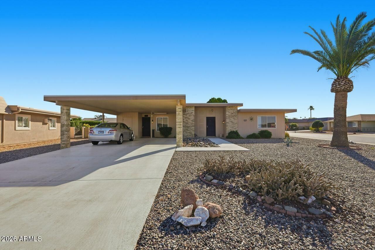 Located in Phase 3 of Sun City, this home sits on a premium oversized corner lot offering extra space and privacy. Inside, you'll find upgraded flooring, new baseboards, and fresh interior paint throughout. The large living area is perfect for relaxing or entertaining, and the home offers nicely sized bedrooms. Step outside to an enclosed backyard, ideal for enjoying outdoor space year-round. Major updates are already done, including a recently replaced roof, HVAC, and water heater. Located just minutes from two recreation centers, this home offers both comfort and convenience.This one won't last—come see today.