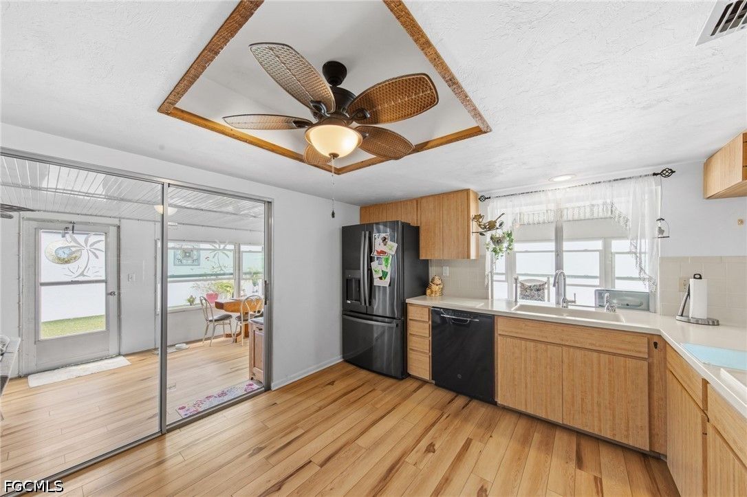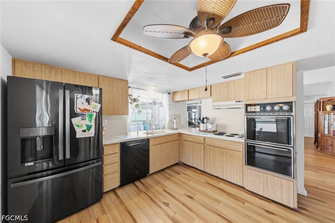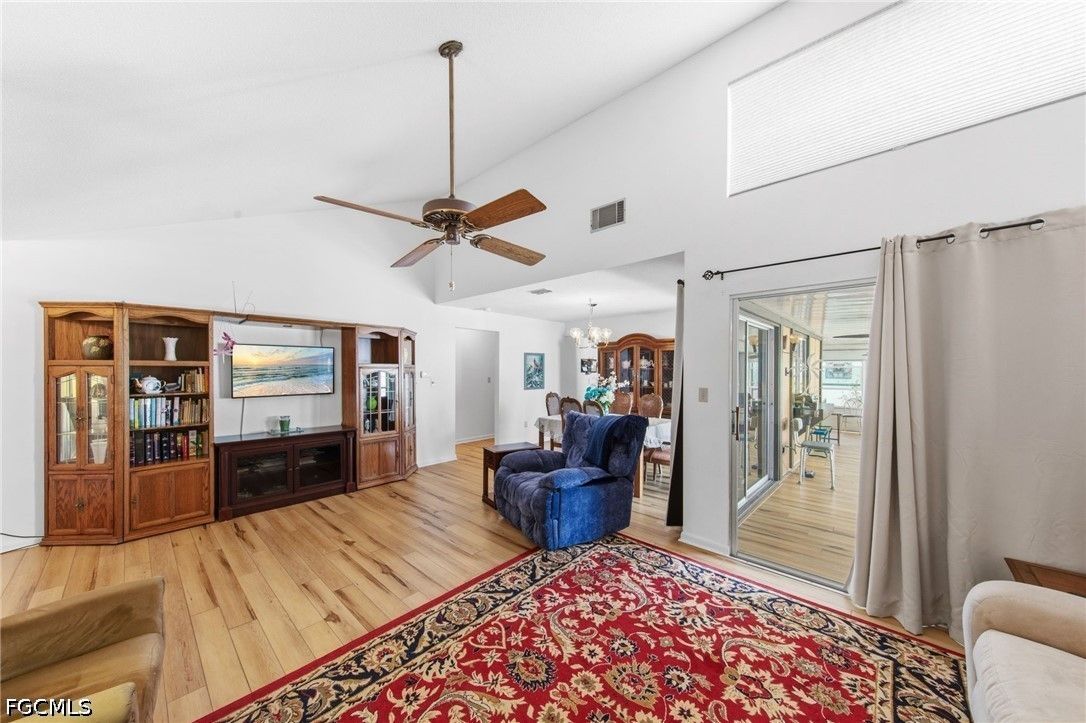 Welcome to Woodcrest Village, a highly desirable 55+ community offering comfort, convenience, and Florida living at its finest, all without the HOA breaking the bank! This beautifully maintained 2-bedroom, 2-bath, 1-car garage home features a bright, open, and inviting floor plan enhanced by vaulted ceilings and dual-entry front doors that create an immediate sense of space and elegance. Step inside to find newly installed vinyl flooring throughout the entire home, including the expansive Florida room, providing a clean, modern, and cohesive look. The home has been thoughtfully updated with a brand-new A/C system and ductwork (2025), along with new vents, ceiling fans, lighting, and mirrors throughout for added comfort and style. The roof was replaced in 2018, offering peace of mind for years to come. The kitchen is well-appointed with Corian solid surface countertops, tile backsplash, instant hot water dispenser, dishwasher, cooktop, built-in wall oven, and microwave, making it both functional and efficient for everyday living and entertaining. The spacious primary suite includes a custom walk-in shower (2021), and both bathrooms have been tastefully updated over time, including new toilets and a refreshed guest bath vanity and faucet (2026). Additional improvements include new flooring (2021), garage door opener (2021), washer, dryer, garbage disposal, and kitchen upgrades completed in 2022. Enjoy true Florida living with an exceptional amount of outdoor space. The home features four sets of sliding glass doors leading to a large enclosed wraparound Florida room with impact windows, creating a seamless indoor-outdoor flow filled with natural light. Step further outside to a huge 35’ x 15’ screened lanai, complete with newly installed astroturf for low-maintenance enjoyment, a bonus storage cove, and plenty of room to relax or entertain. The private backyard is fully enclosed with a courtyard-style privacy wall and features southern rear exposure for ideal sunlight throughout the day. The lanai and entry screening were fully redone in 2023 with new metal framing and screening, along with updated outdoor drainage. With major system updates, extensive improvements, and multiple indoor and outdoor living spaces, this home offers exceptional value in a sought-after active adult community. Move-in ready and meticulously maintained—this is Florida living made easy.